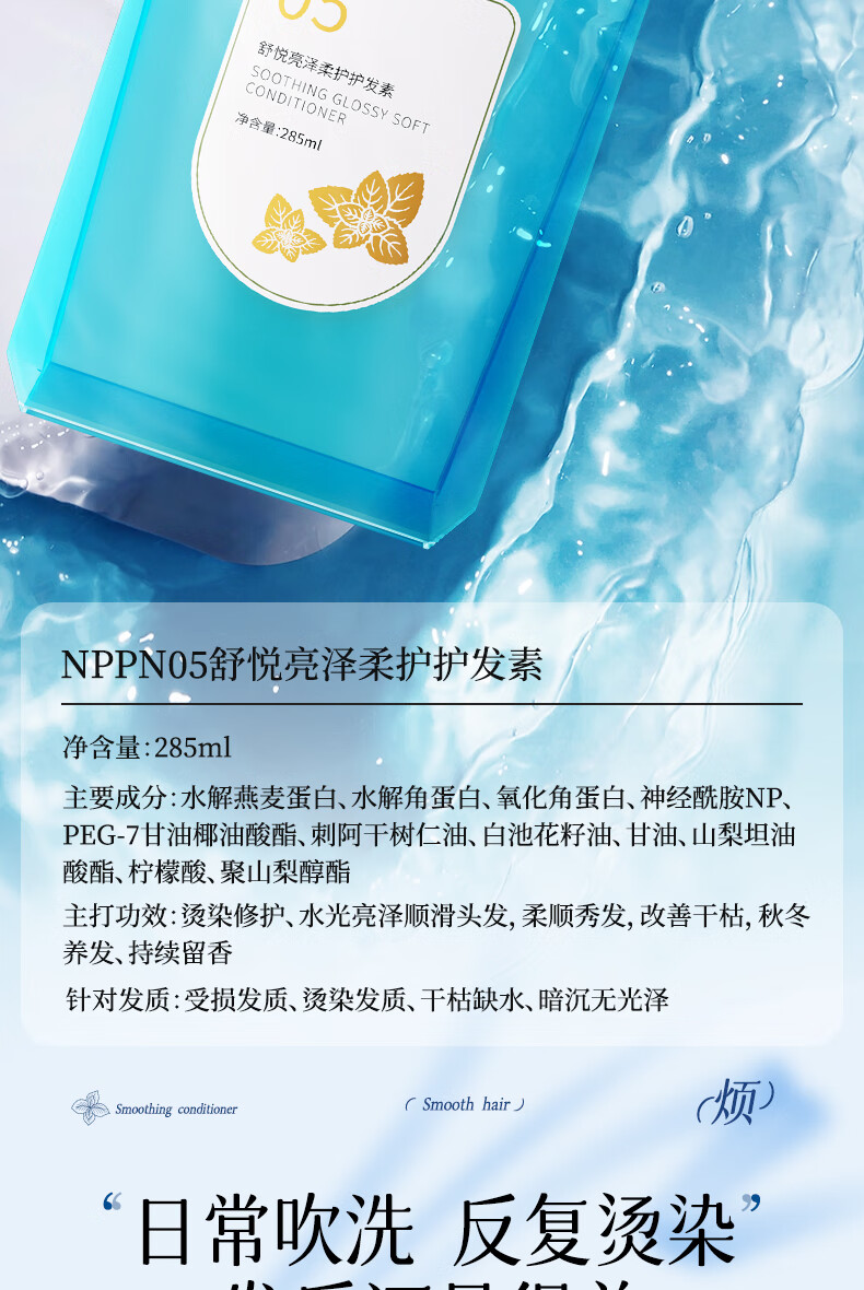 NPPN05 conditioner for women, comfortable, smooth, moist and shiny npno5 perm and dye care for dry and frizzy hair ppn conditioner*1 bottle