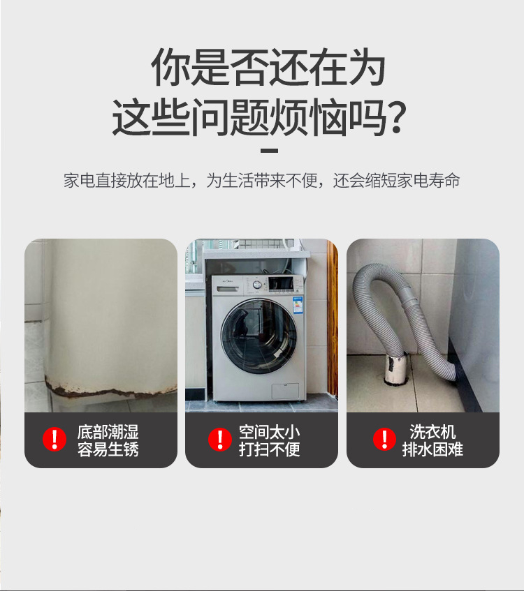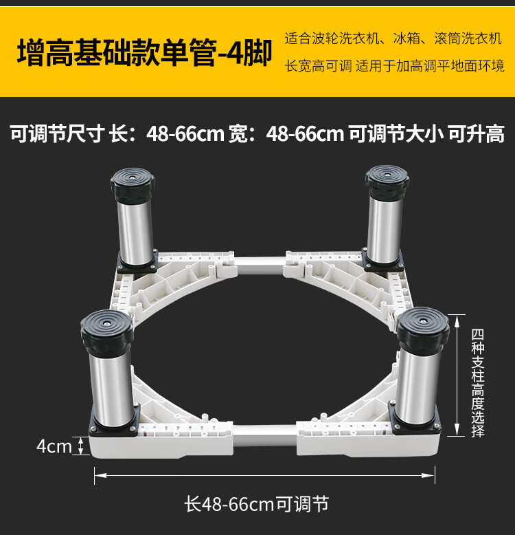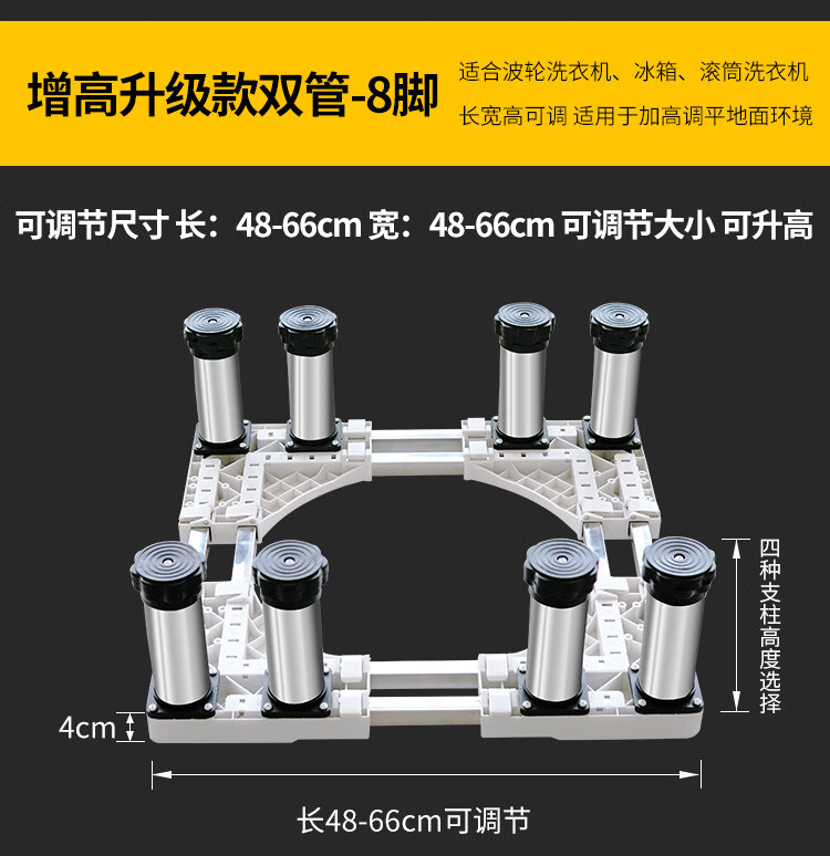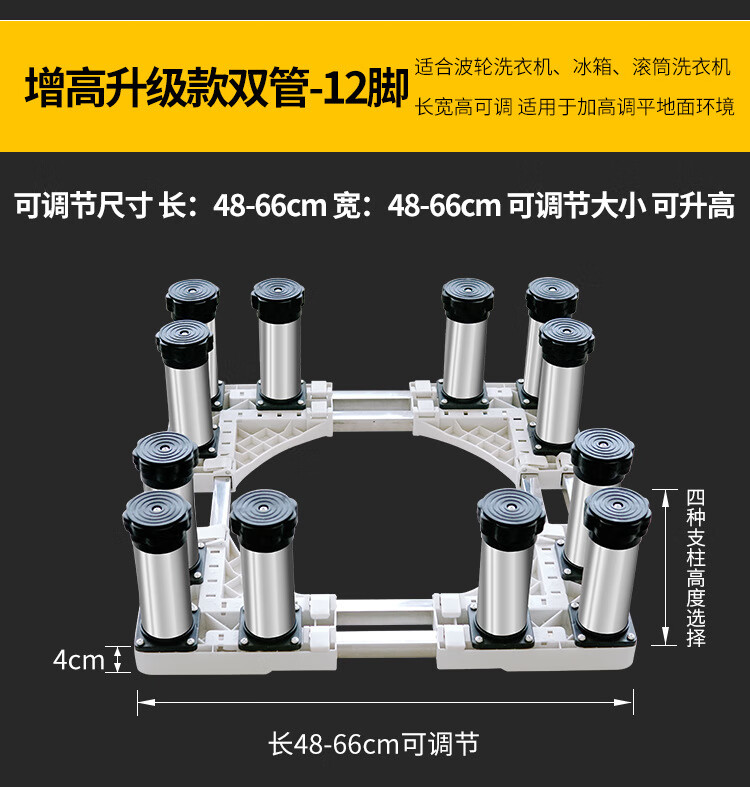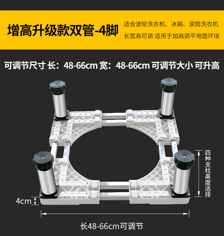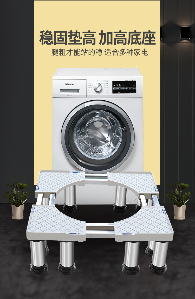Suitable for washing machine base drum washing machine bracket fully automatic washing machine stainless steel elevated shelf refrigerator bracket white double tube 4 feet 15cm