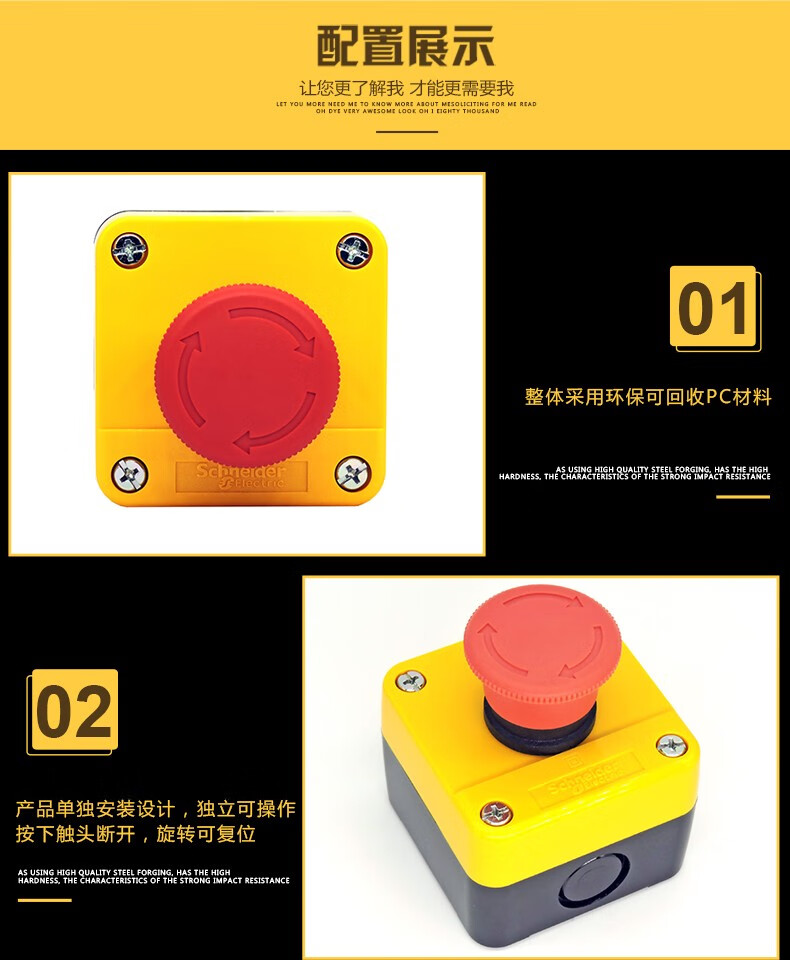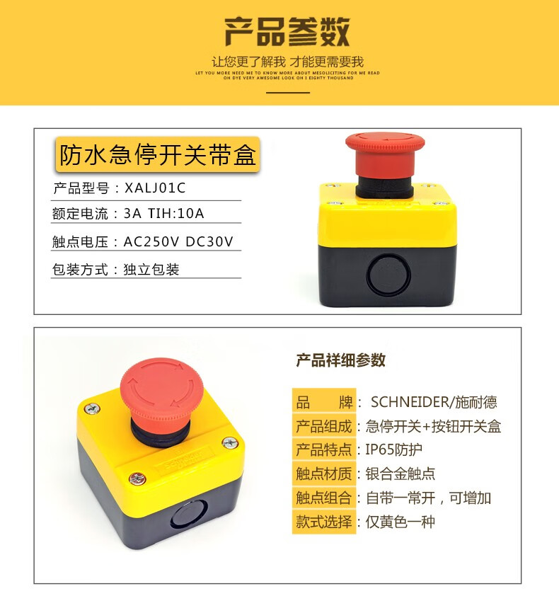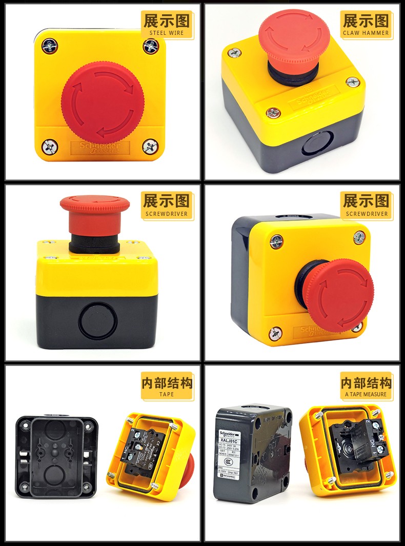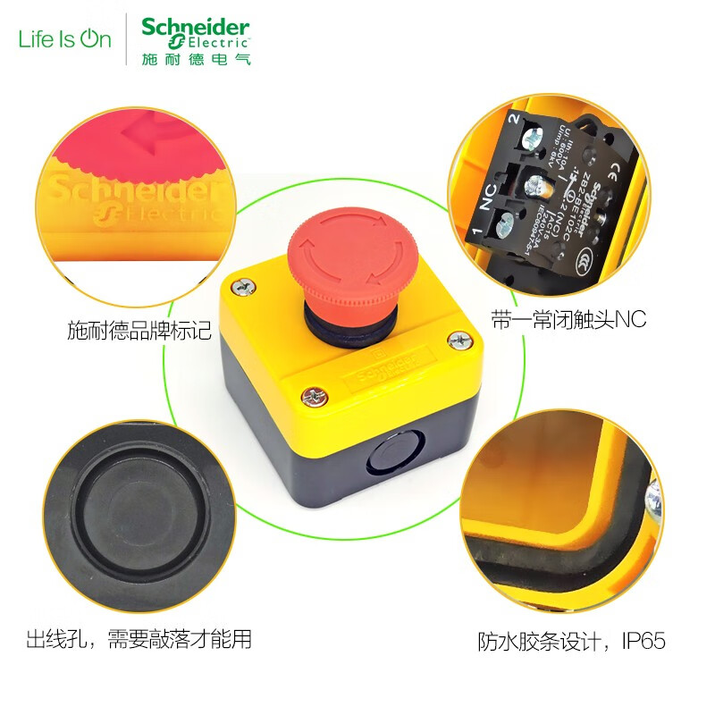 Original Schneider Electric XAL-J01C waterproof emergency stop button switch rotation reset 22m diameter normally closed XB2BS542C 442 protective box ZB2BE101C normally open 1NO contact