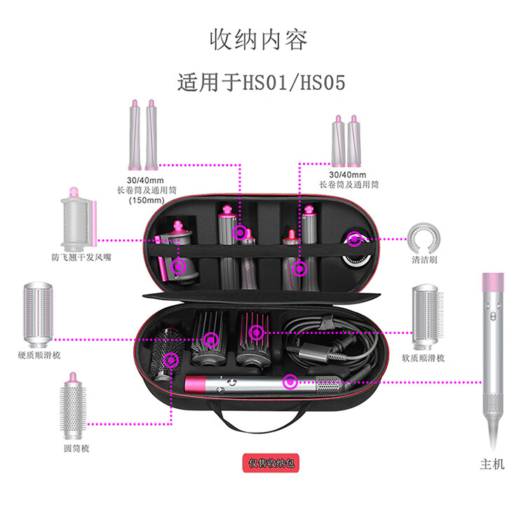 RLSOCO Dyson HS05 Curling Wand Storage Bag Portable Air DYSON Styling Hair Wand HS01 Set Storage Box Suitable for Dyson HS05/HS01 Storage Bag-Rose Red