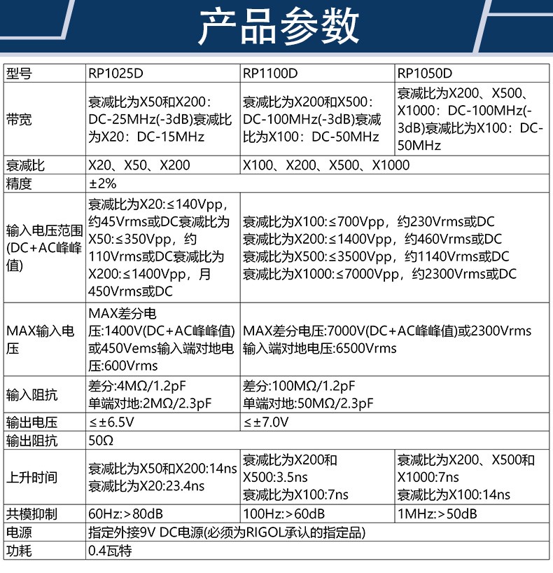RIGOL Puyuan RP1025D oscilloscope probe 25MHz, 1.3KV bandwidth 25MHz high voltage differential probe RP1025D