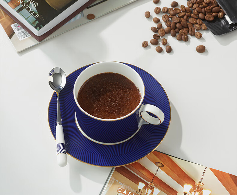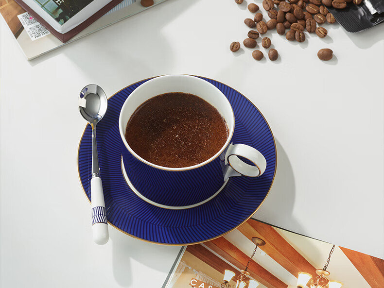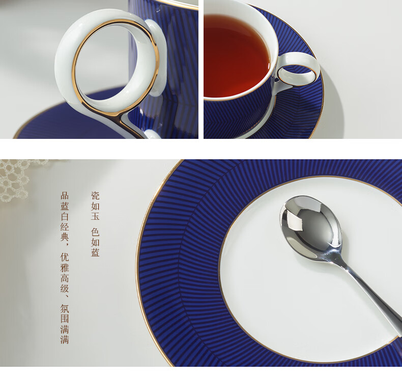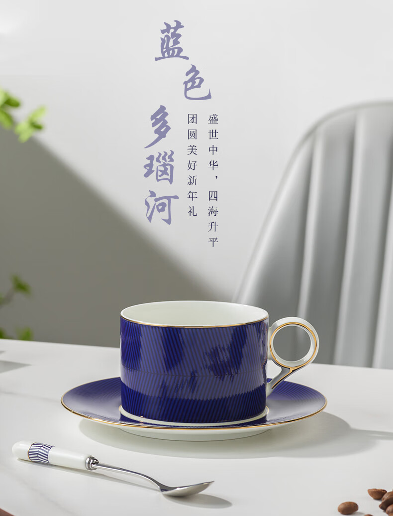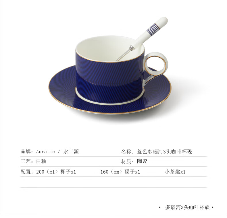 Yongfengyuan (auratic) Blue Danube three-piece set, ceramic coffee cup, one cup, one saucer, one spoon, gift box, afternoon tea cup and saucer, one cup, one saucer, one spoon