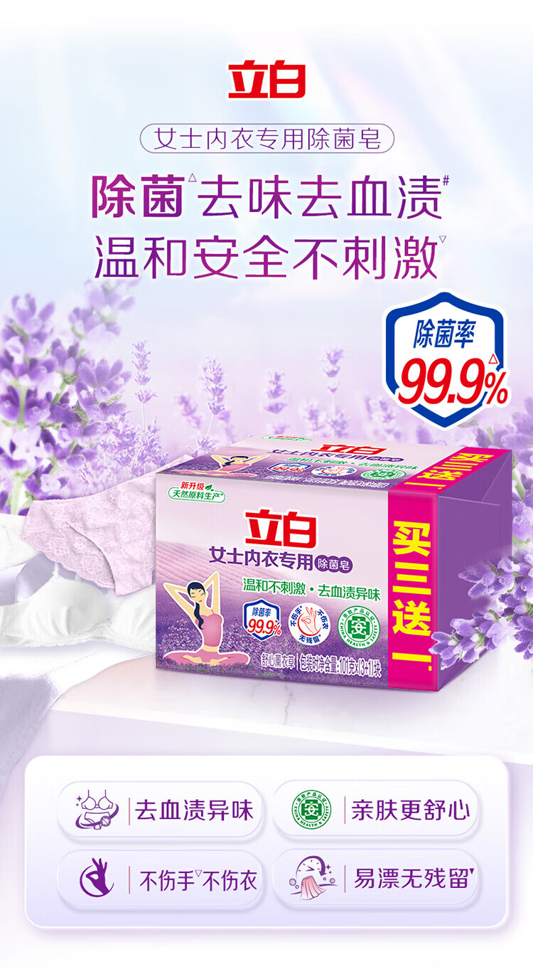 Liby Underwear Soap Women's Underwear Special Antibacterial Laundry Soap Value Pack Cleaning Soap Unisex Antibacterial Soap Underwear Soap 101g*4 pieces
