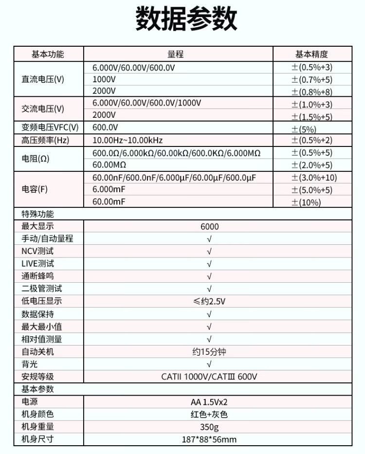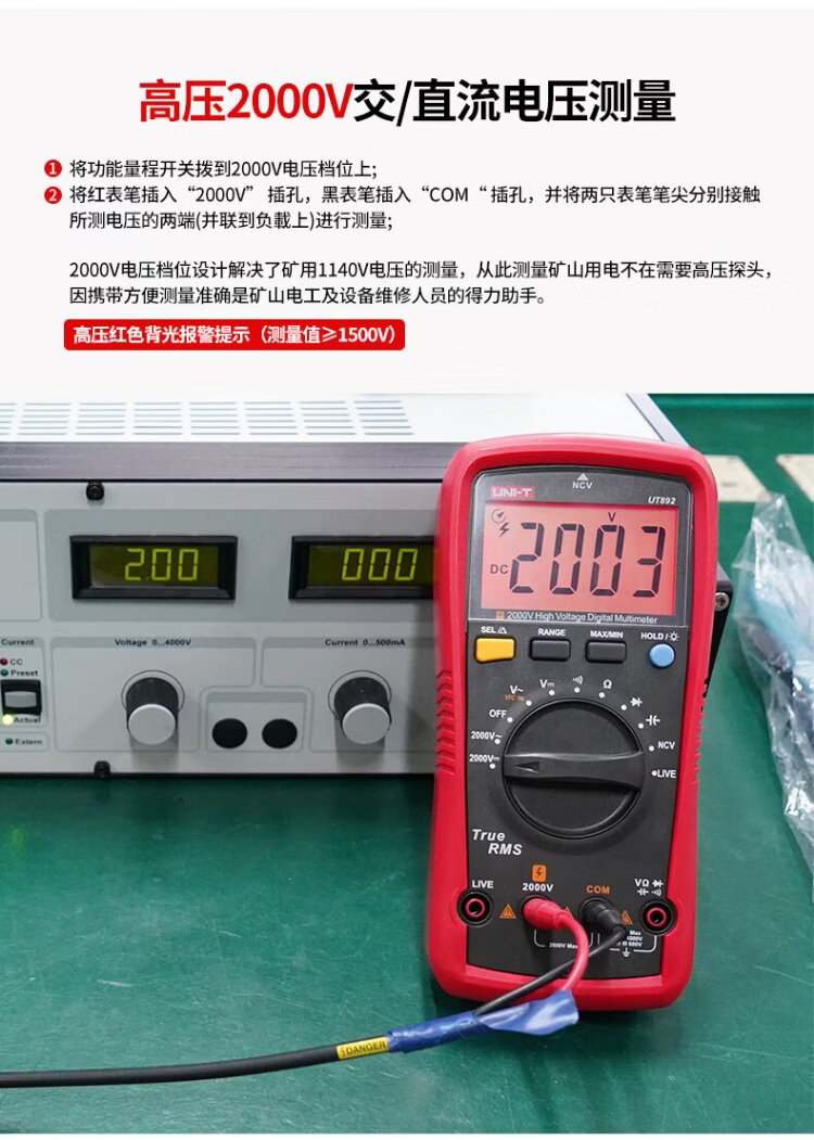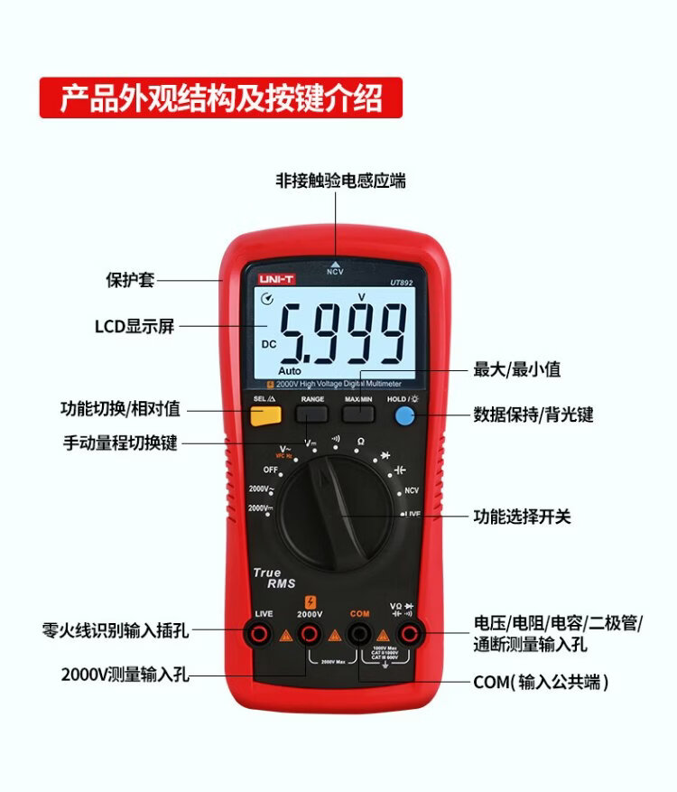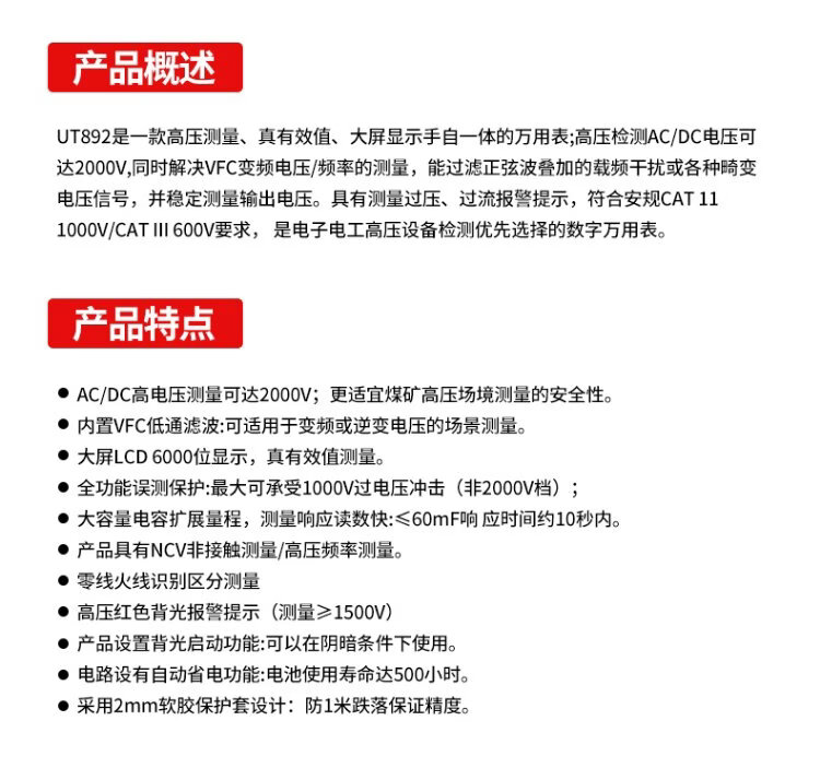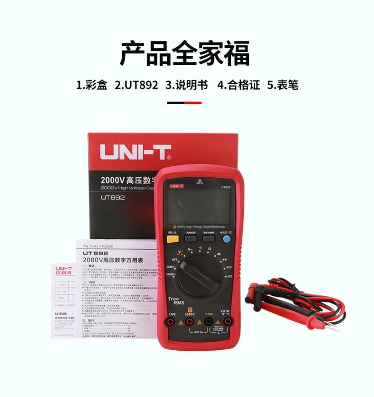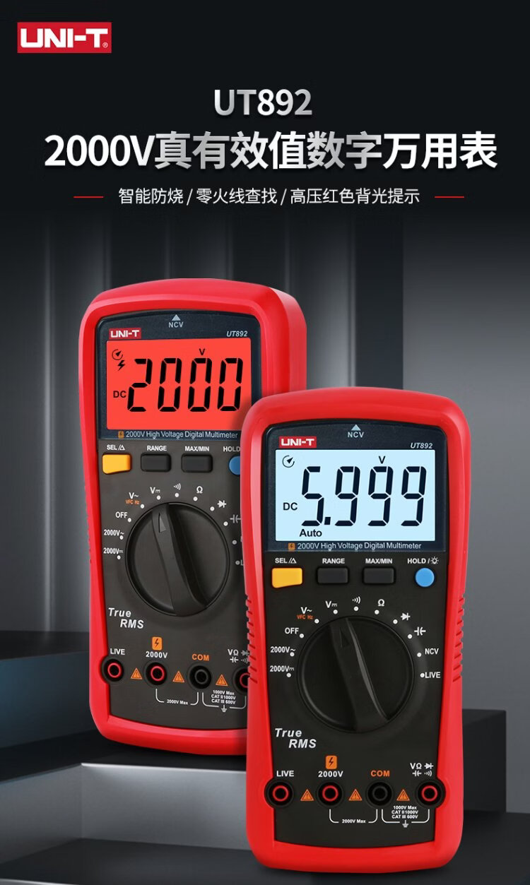 Uni-T UT892 mining multimeter 2000V high-voltage burn-proof digital multimeter high-precision electrician special voltmeter true effective value large capacitance NCV measurement