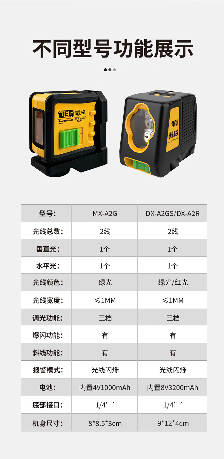 Daige mini green light level laser 2-line infrared strong light line projector high-precision wall-mounted cross laser Daige MX mini 2-line green light level (rechargeable model without bracket)