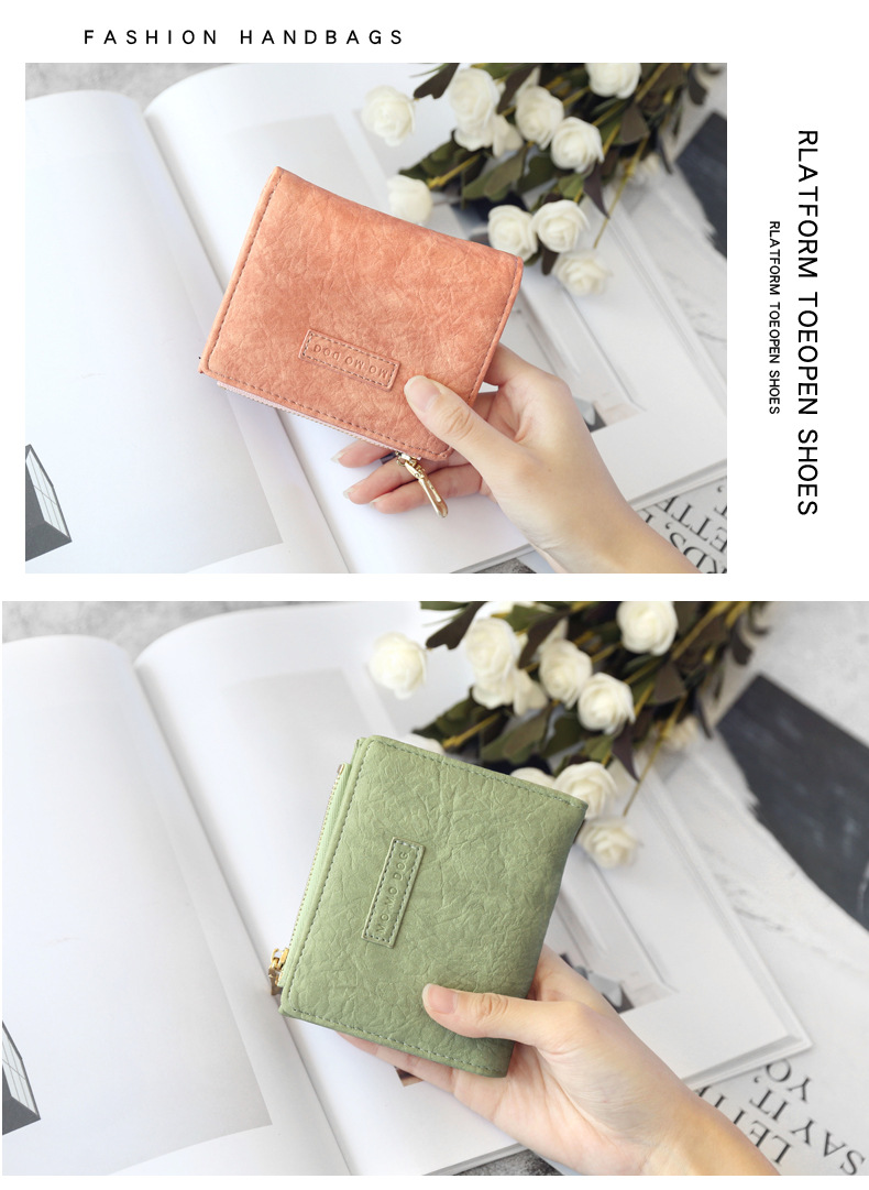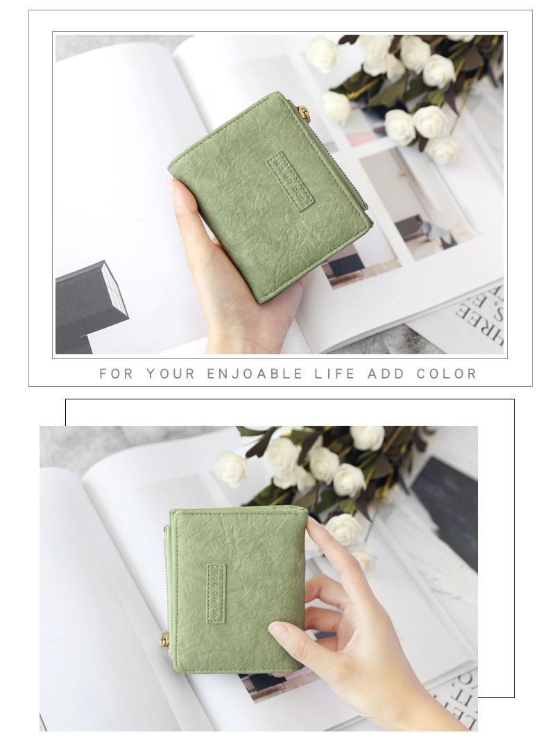 Bags for women 2022 wallet women's short student Korean version cute fresh folding simple literary forest buckle women's bag painted green