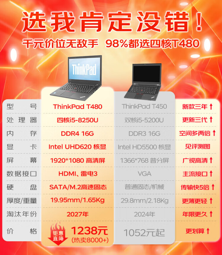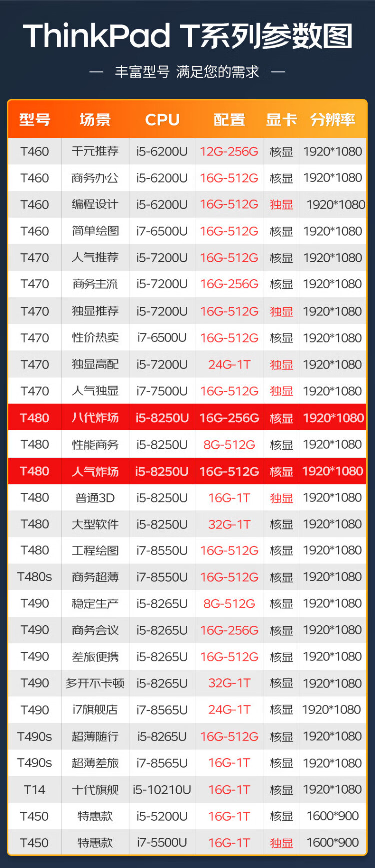 Lenovo ThinkPad (98% business choice) second-hand laptop T480/T490/T14 thin and light office drawing editing programming book 95 new popular T480 i5 16G 512G