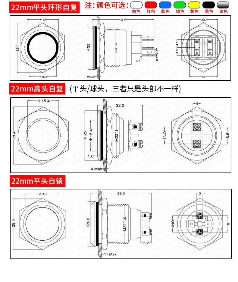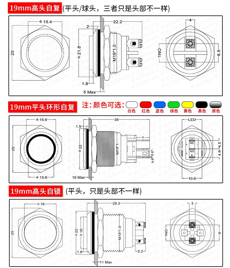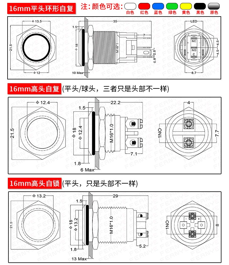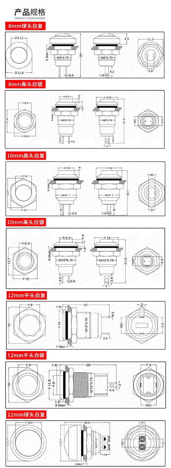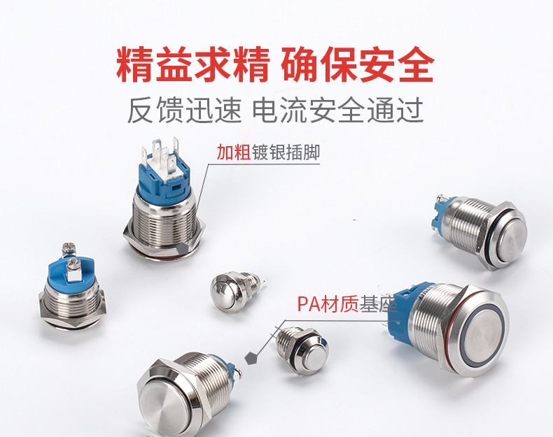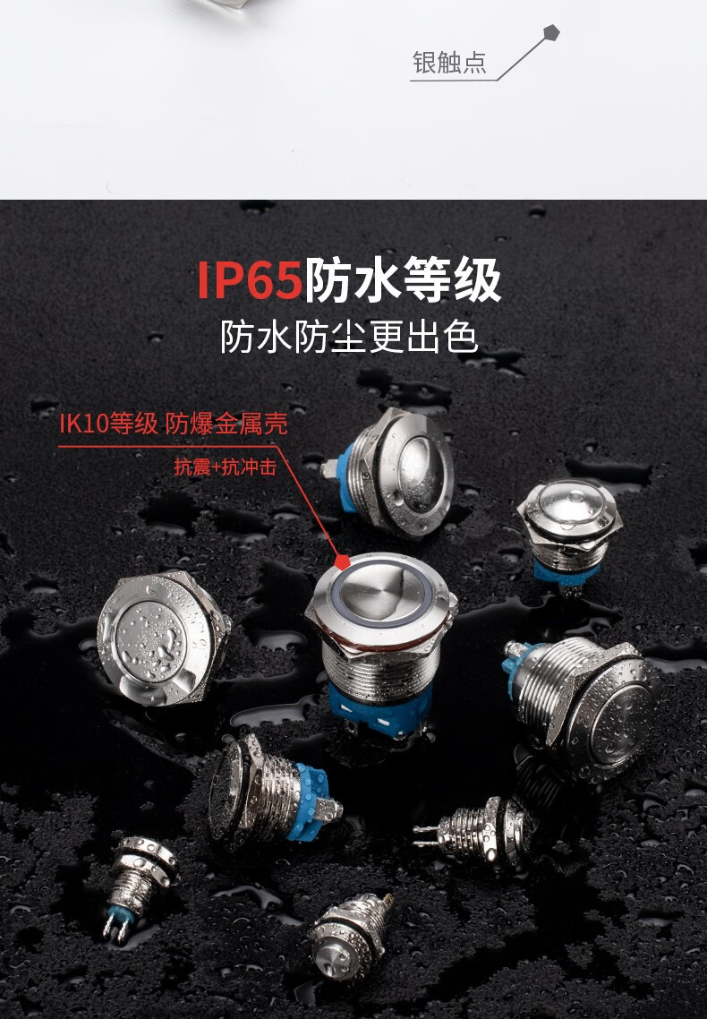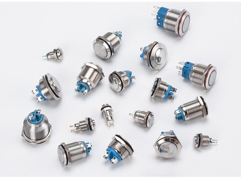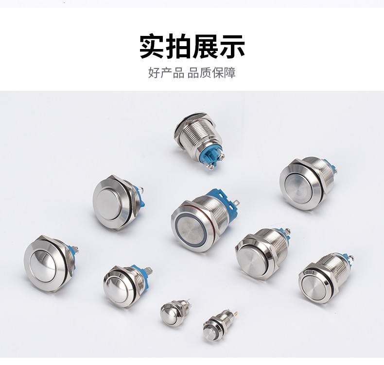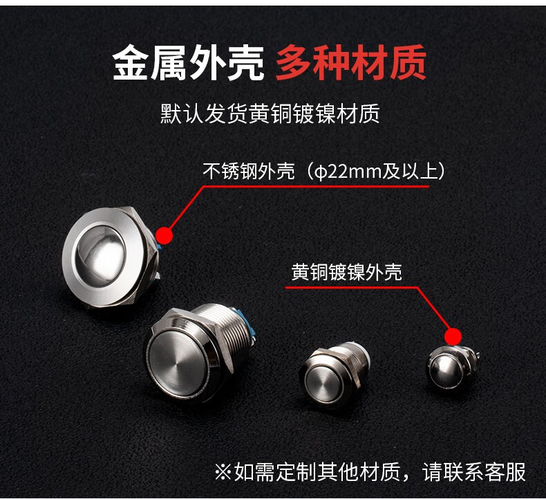 Metal button switch 8/10/12/16/19/22MM self-resetting self-locking waterproof small contact mini button start button toy car modification anti-16mm metal high head screw foot-self-resetting