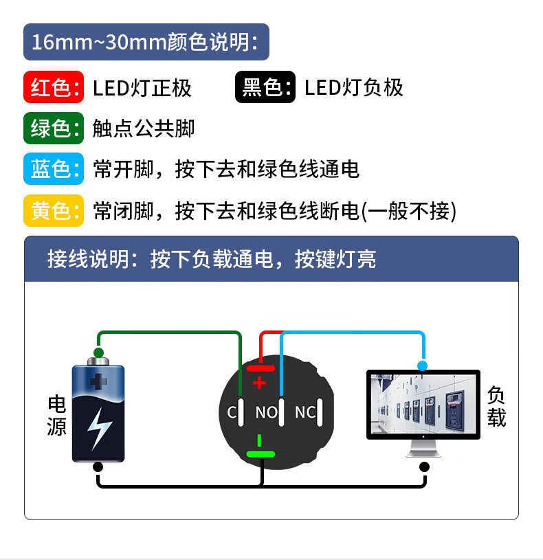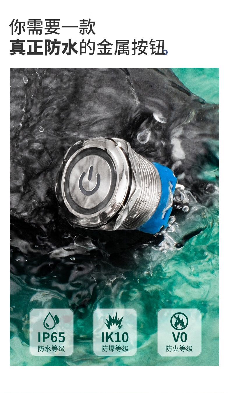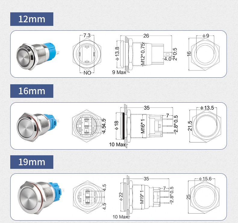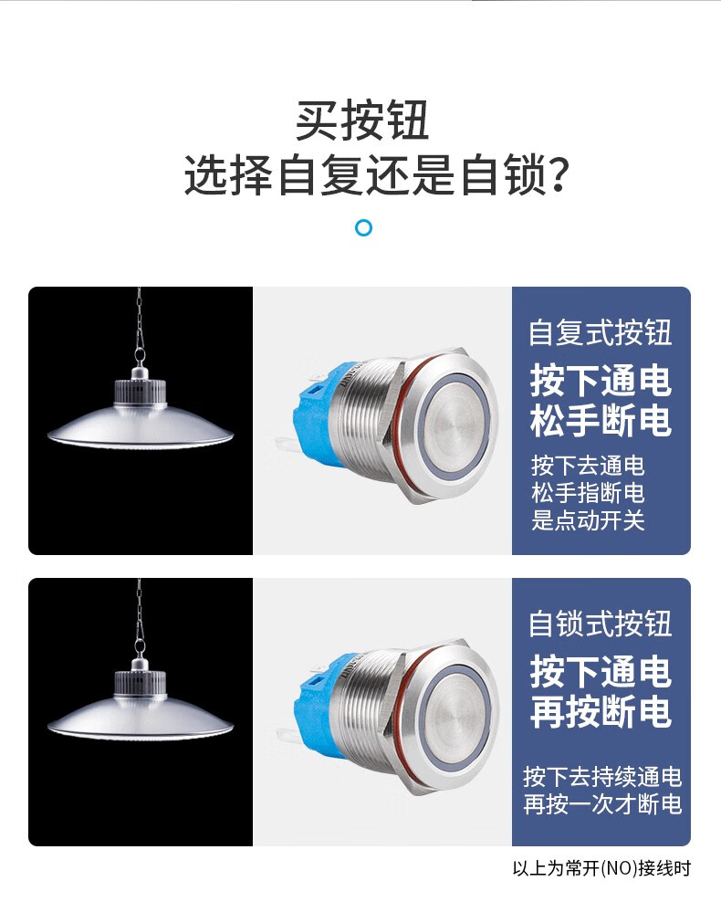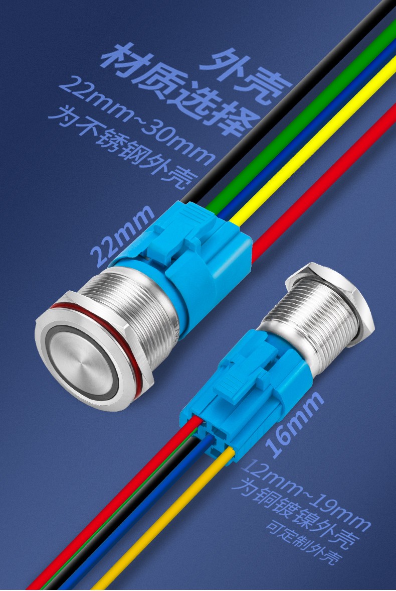 Metal button switch 12/16/19/22mm small with light reset self-locking power supply start stop waterproof button start key modification DIY red car modification blue ring power light self-locking 220V 19MM with cable