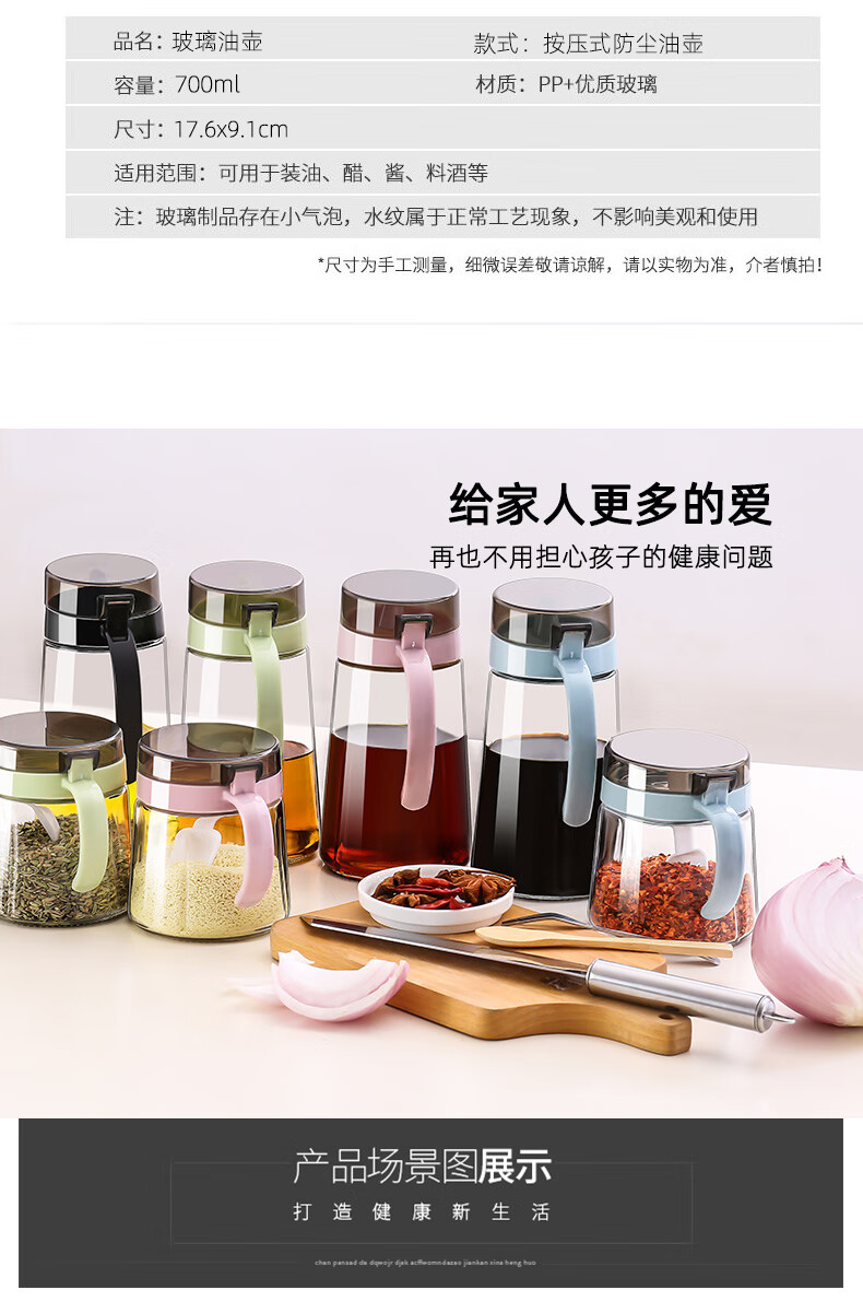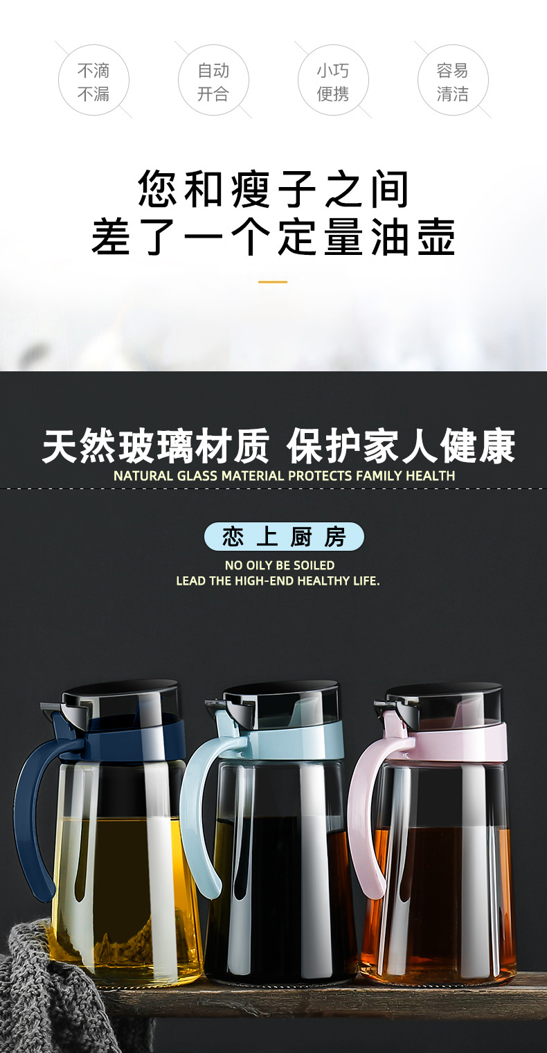 Xinmeiya oil pot glass oil tank kitchen household oil bottle oil container soy sauce vinegar seasoning bottle vinegar pot oil tank deep space black 600ml