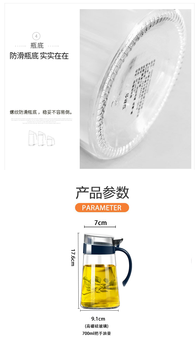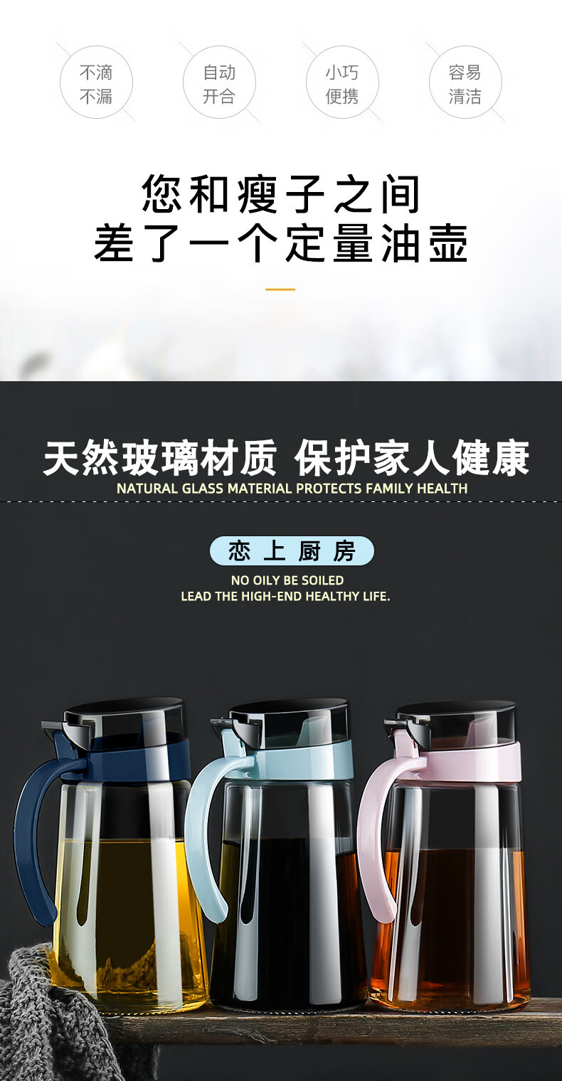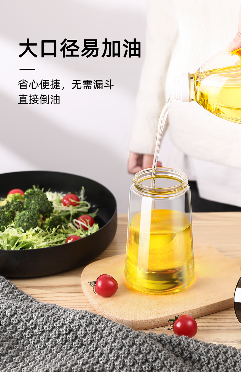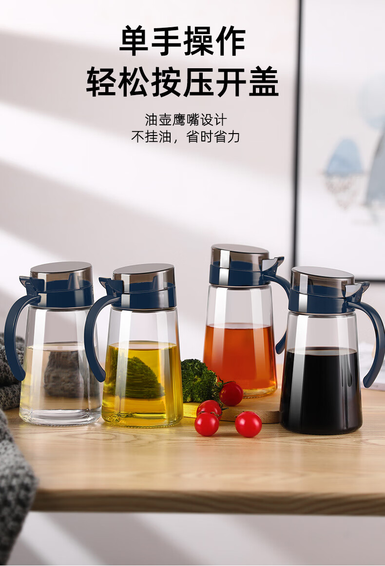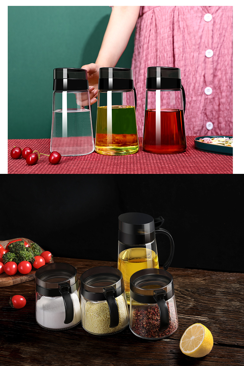 Xinmeiya glass oil pot without oil oil bottle household kitchen oil pot soy sauce bottle vinegar pot restaurant oil container main picture black 600 ml * 2 + label