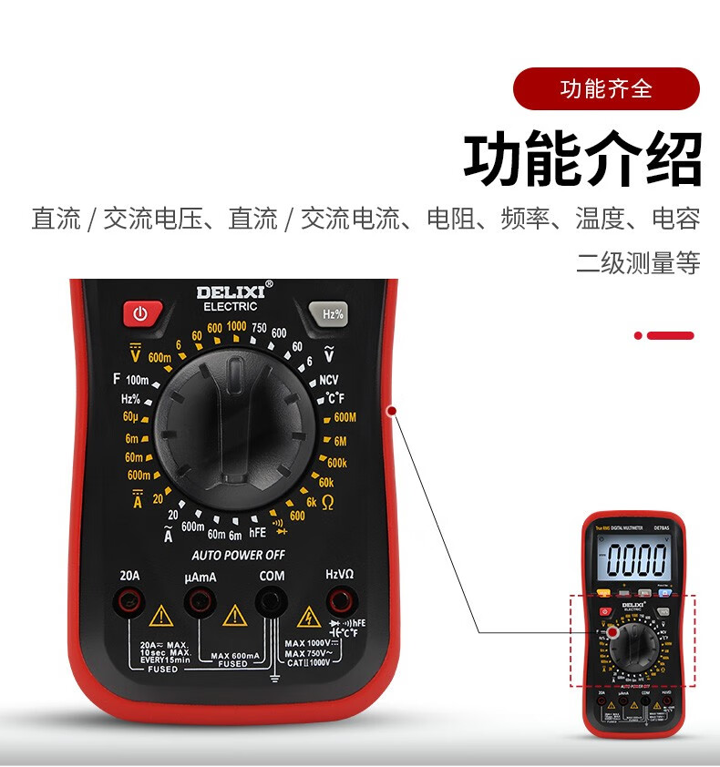 DELIXI digital multimeter household intelligent burn-proof backlight digital display high-precision multimeter ammeter intelligent burn-proof multi-function multimeter