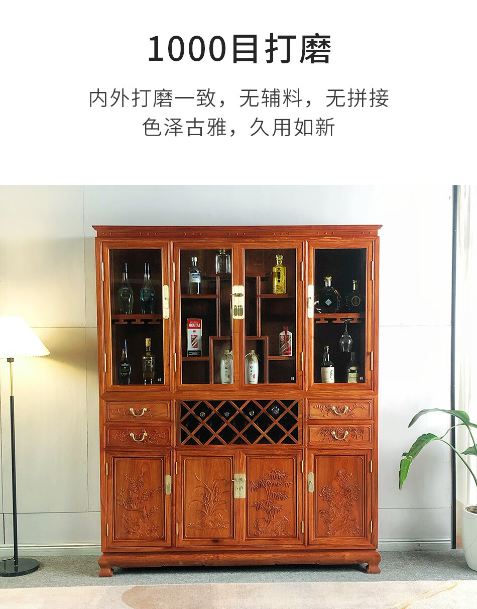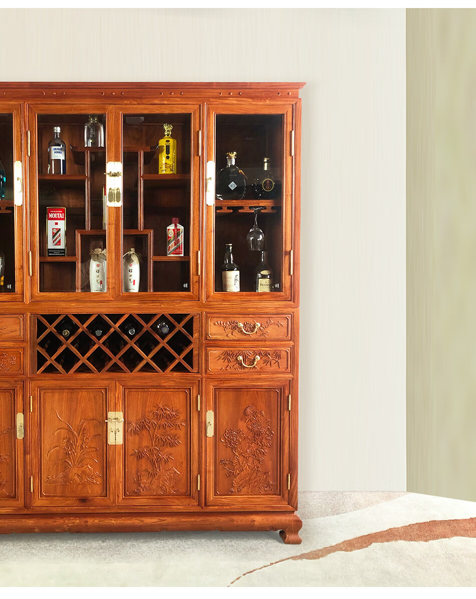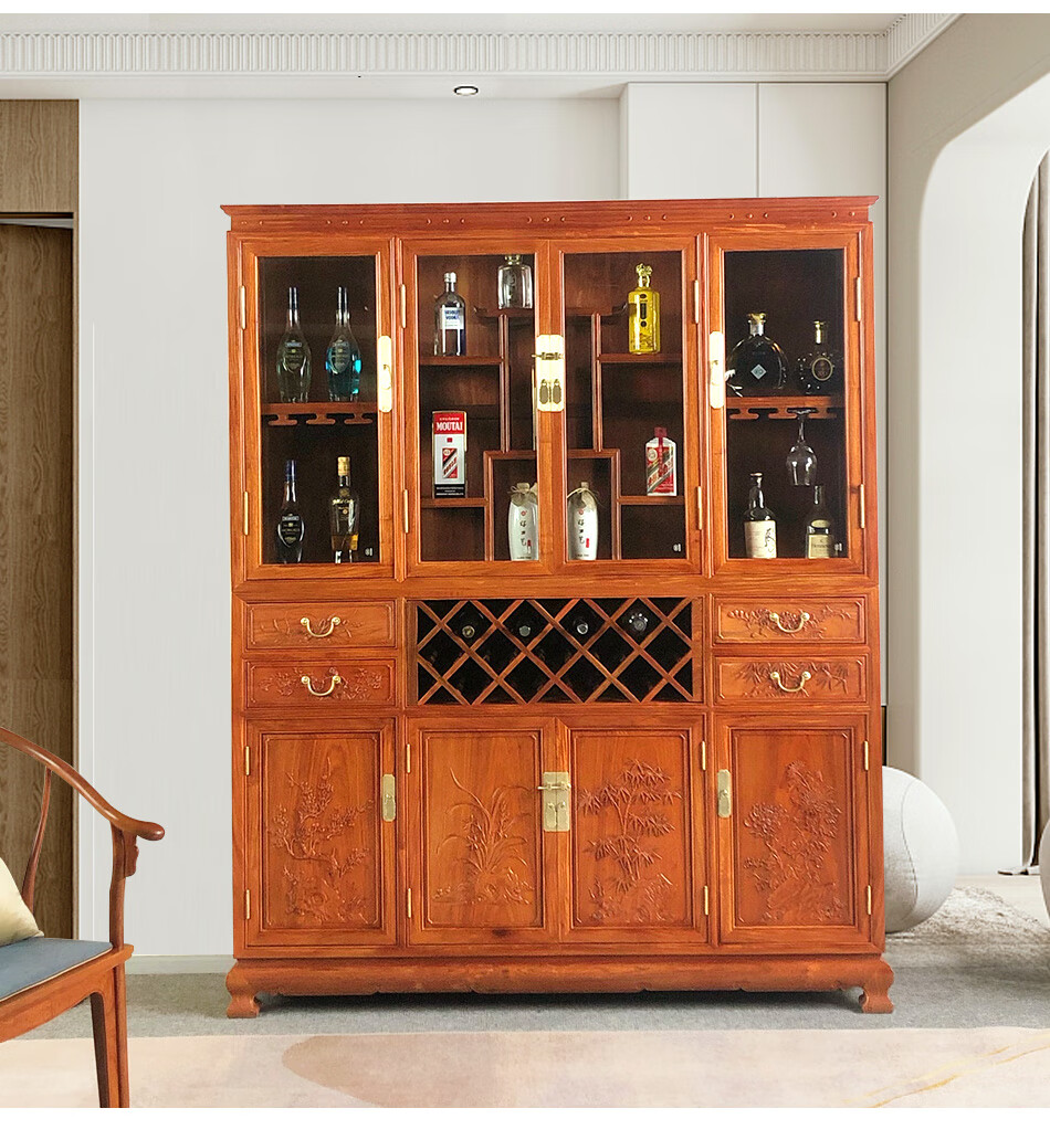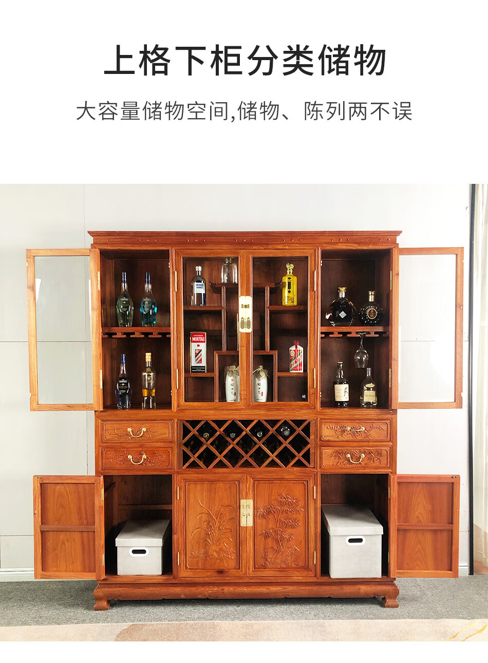 Good wood masterpieces, mahogany furniture, Burmese rosewood (scientific name: Rosewood macrocarpa) solid wood wine cabinet, Chinese tea antique cabinet, storage cabinet, living room storage cabinet, restaurant furniture, multi-functional wine cabinet