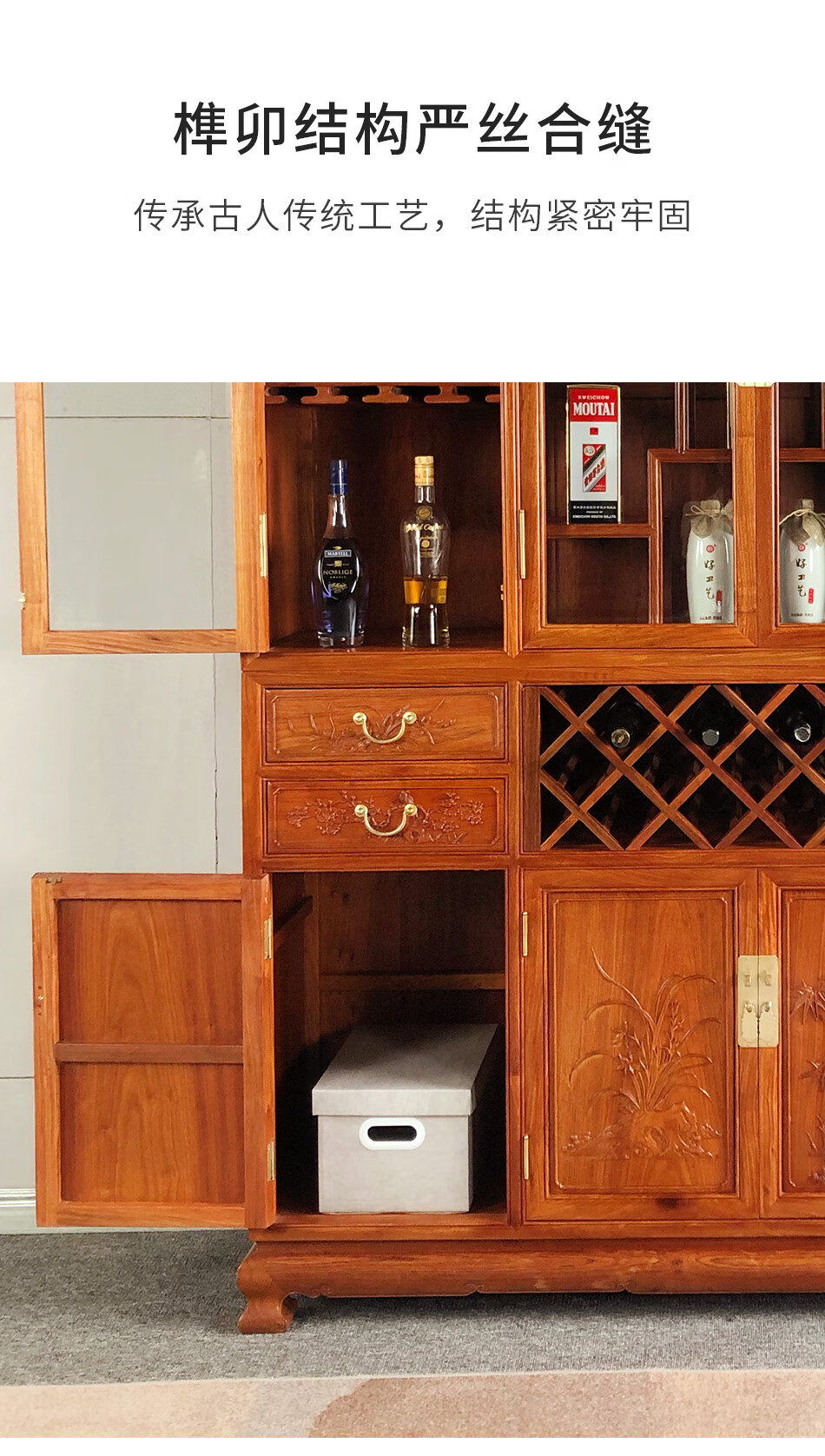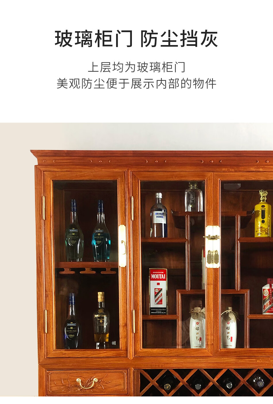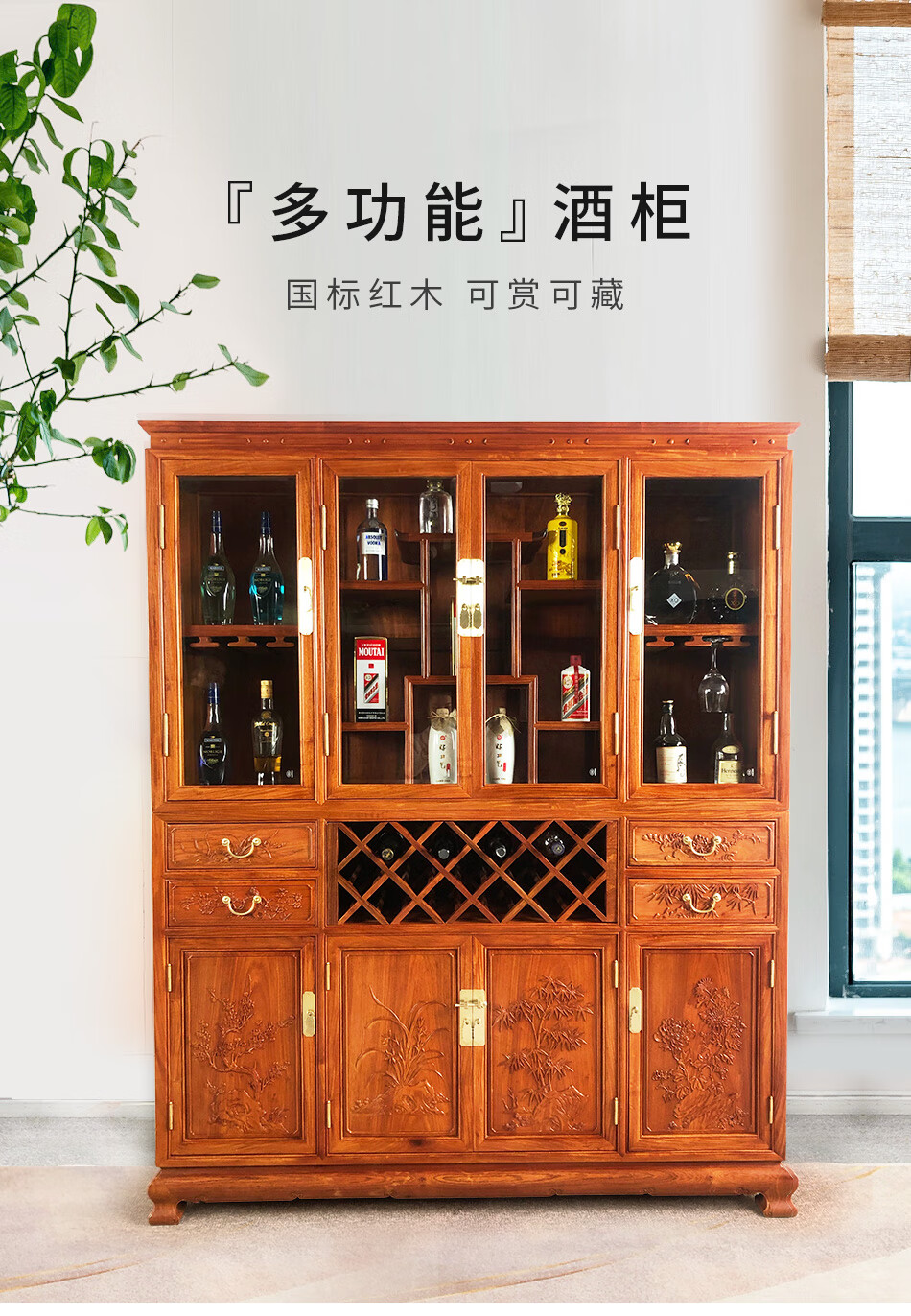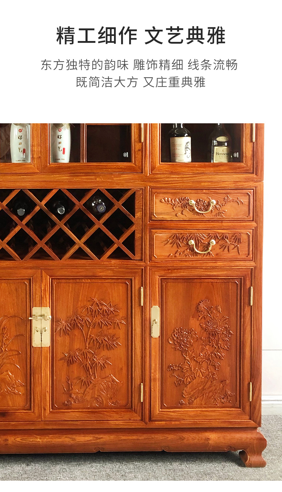 Good wood masterpieces, mahogany furniture, Burmese rosewood (scientific name: Rosewood macrocarpa) solid wood wine cabinet, Chinese tea antique cabinet, storage cabinet, living room storage cabinet, restaurant furniture, multi-functional wine cabinet
