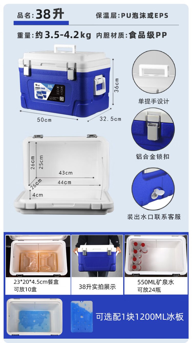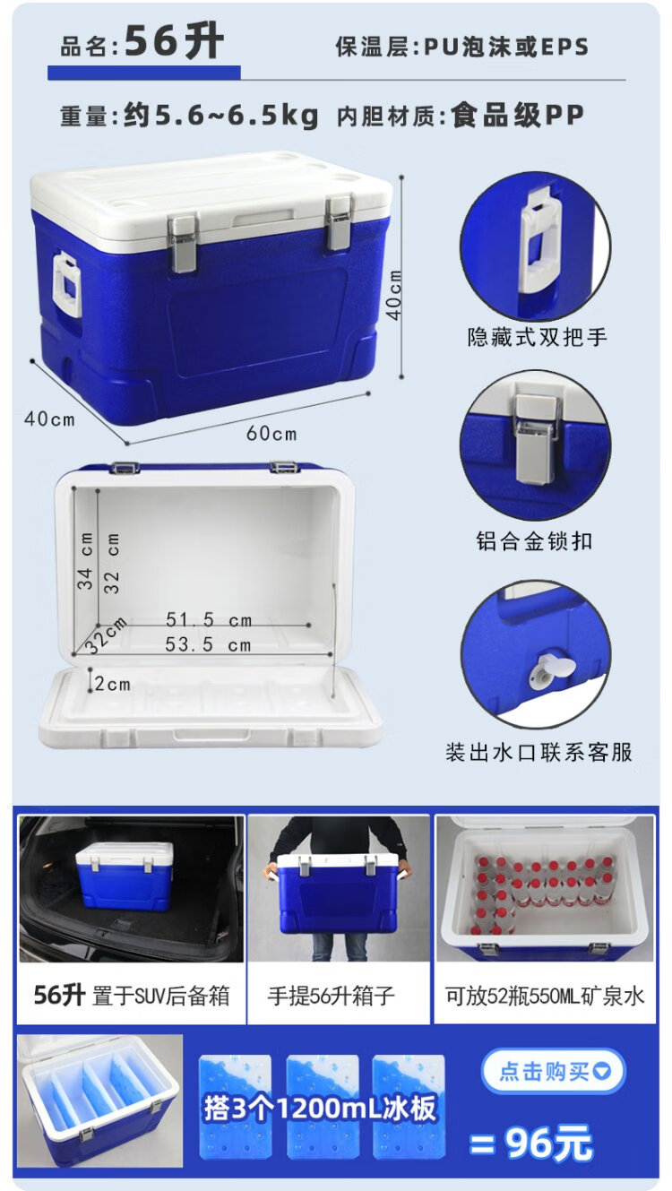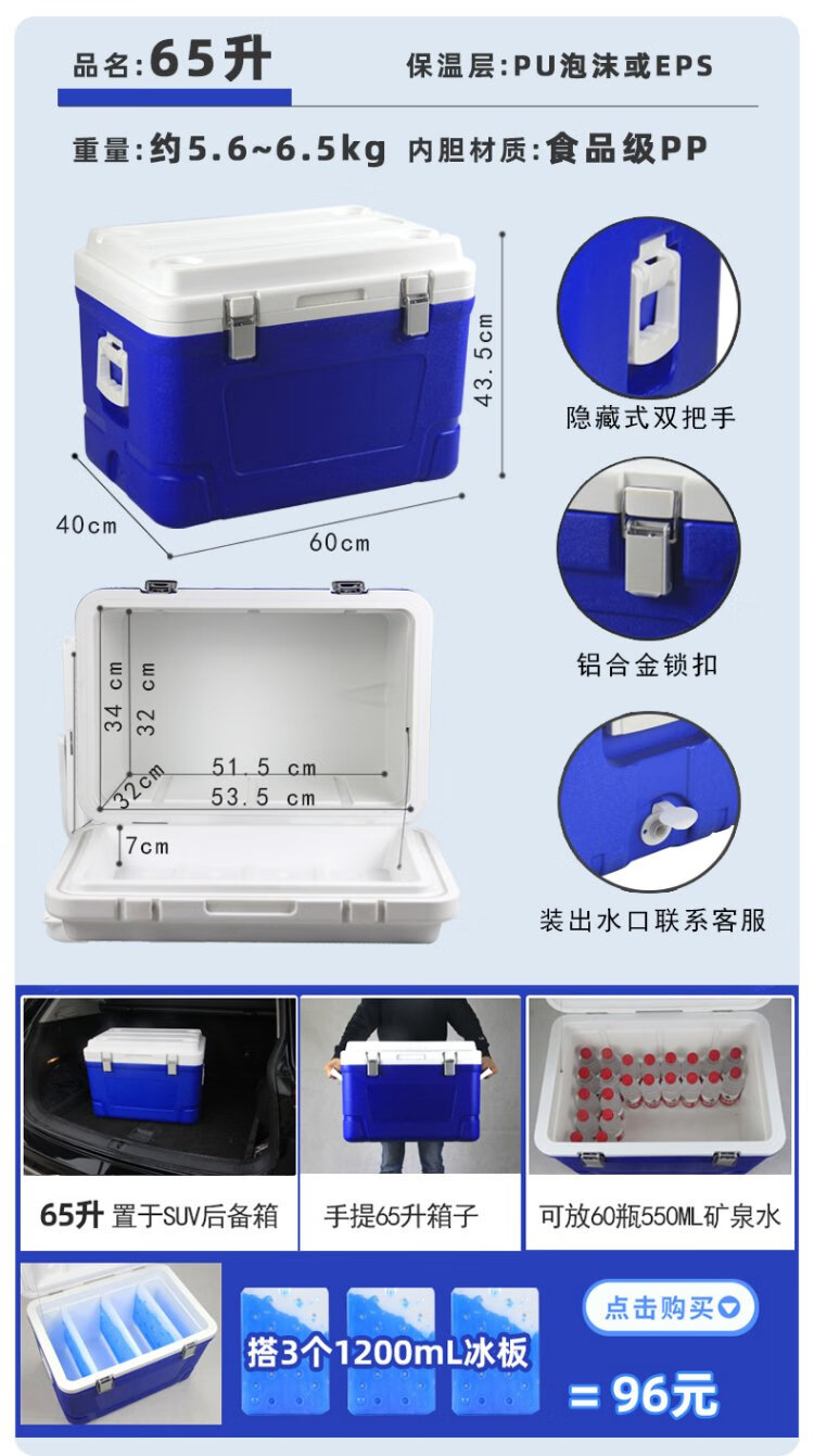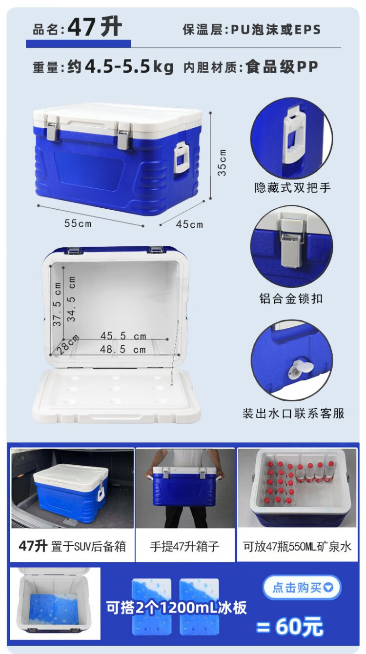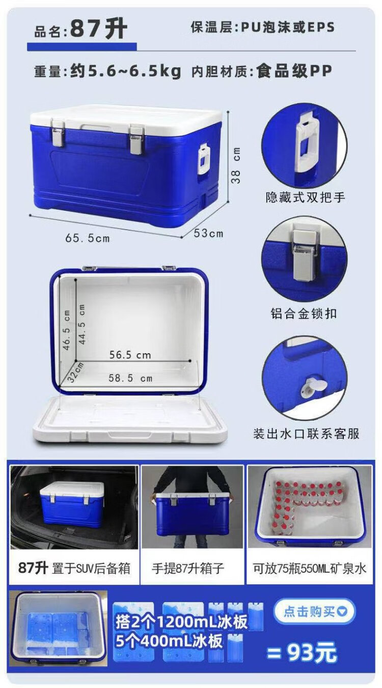 Sentai insulated box, hot food delivery take-out box, fresh food refrigerated box, school community central kitchen delivery incubator box for stall setting, 65 liters - cold storage for 3 days