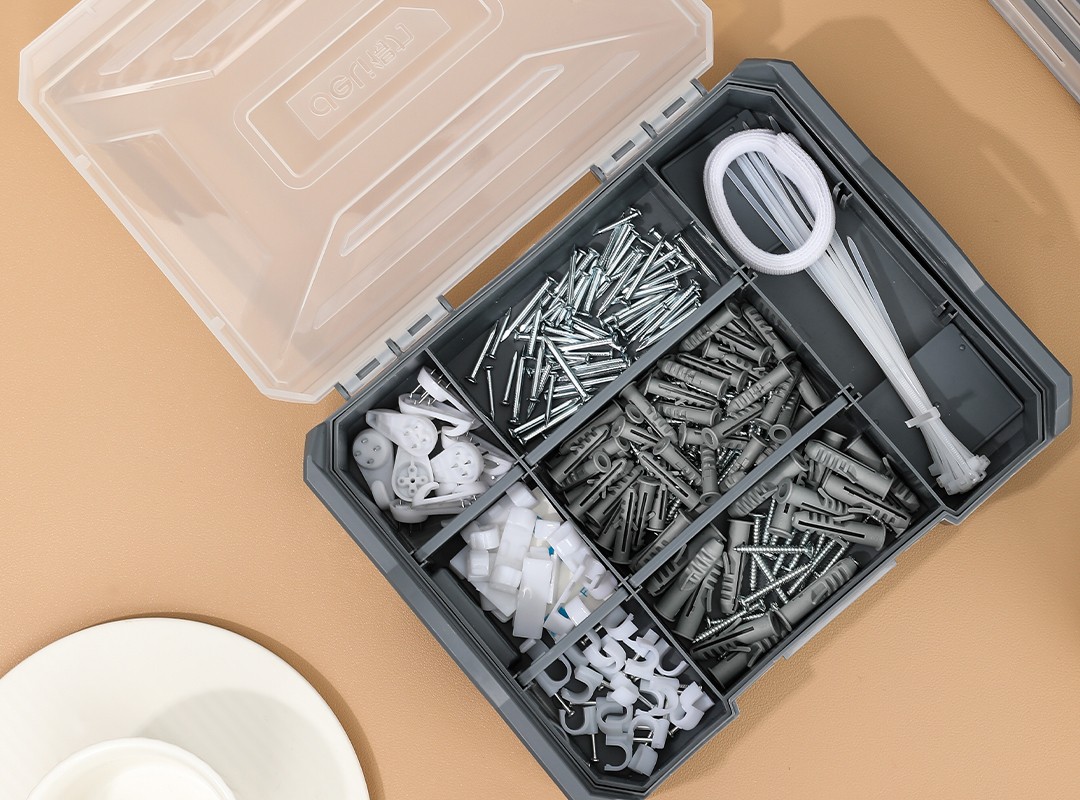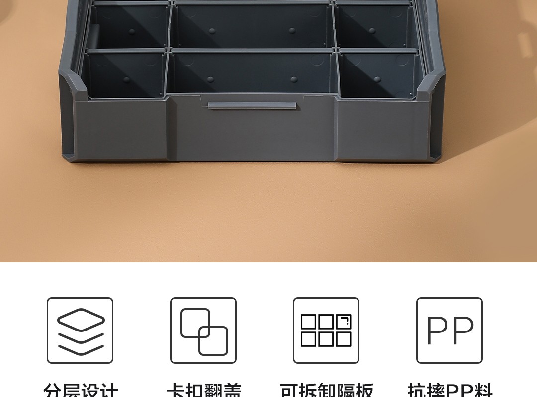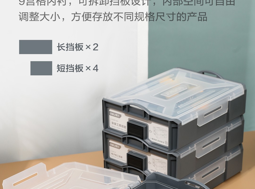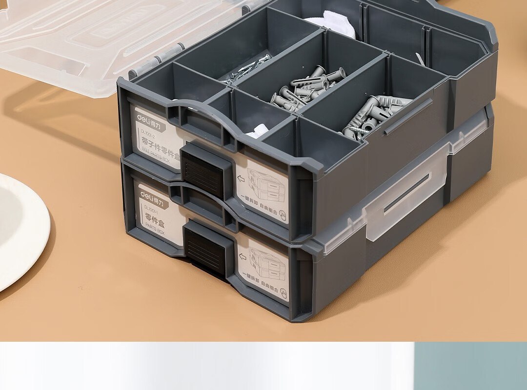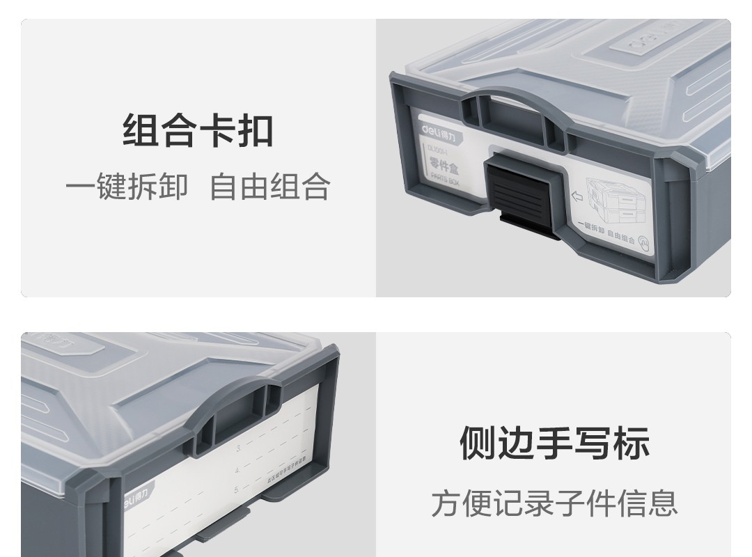 Deli parts box plastic box Lego parts classification box removable tool box storage box electronic component box combined screw box 9-grid parts box DL1001-1