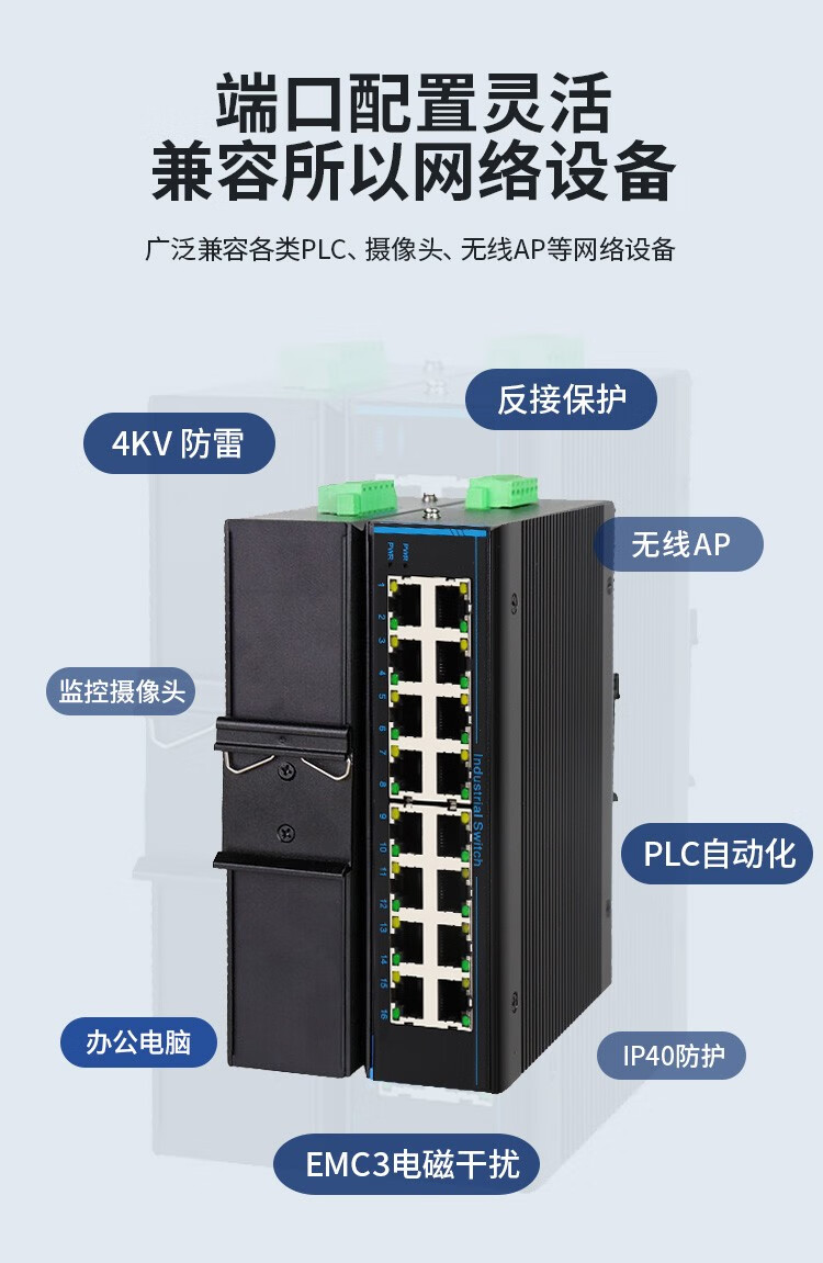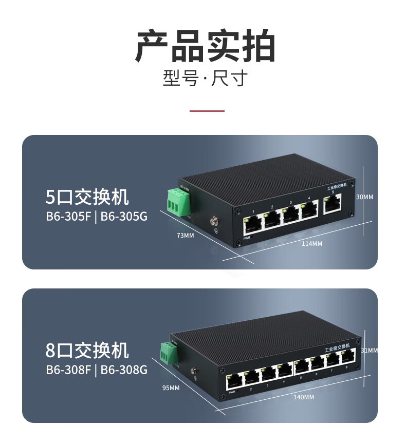 Chaoke industrial-grade 5-port 8-port 16-port 24-port 100M Gigabit switch monitoring network splitter branch hub switch unmanaged lightning protection DIN rail type industrial grade Gigabit 8-port switch B6-308G with 24V / with POE and 52V power supply