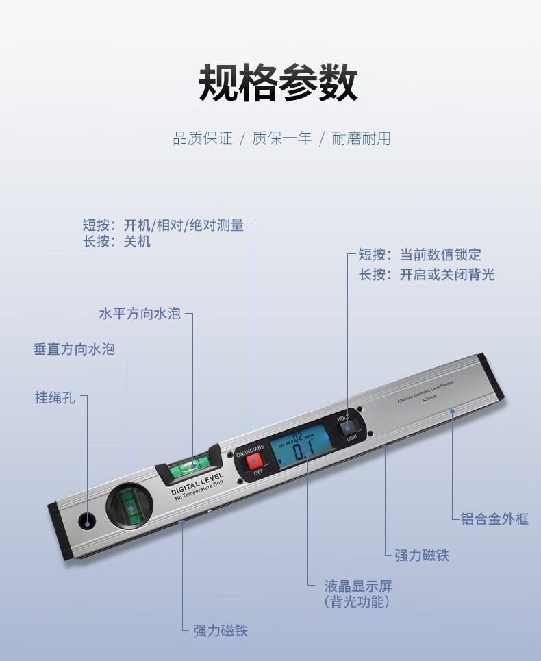 Northwest mountain survey electronic digital display level multifunctional magnetic digital slope meter aluminum alloy level 400mm non-magnetic