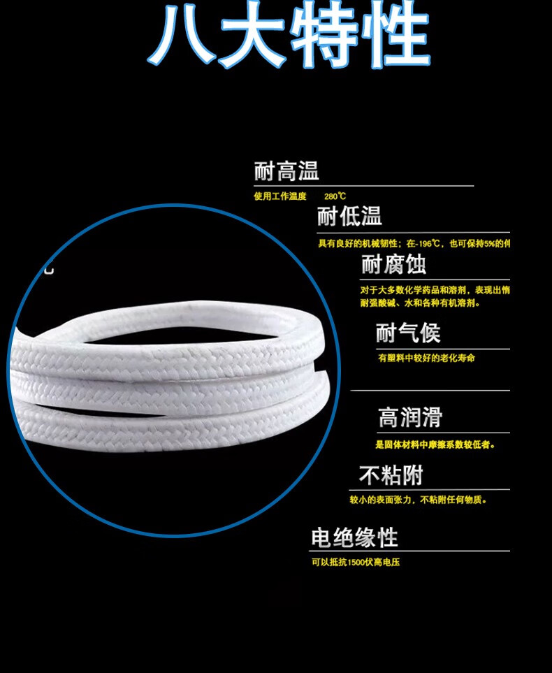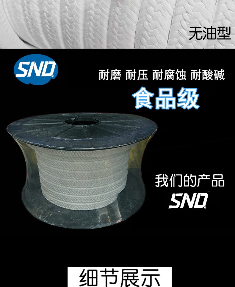 PTFE packing oil-free oil-containing PTFE packing wear-resistant acid and alkali resistance high temperature oil-containing white PTFE packing new material PTFE packing 10*10*1 meters (with oil) new material