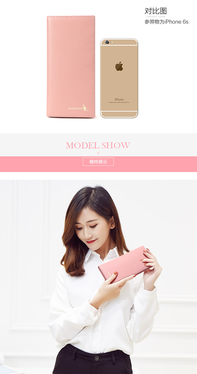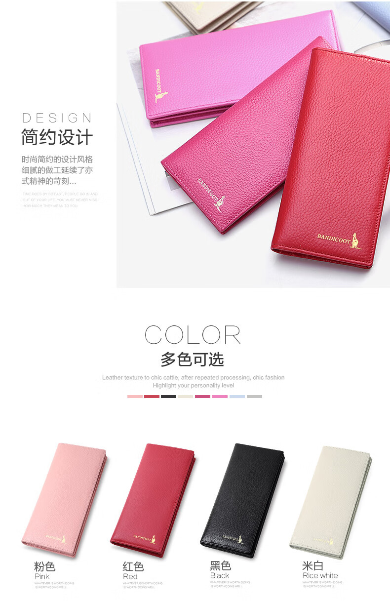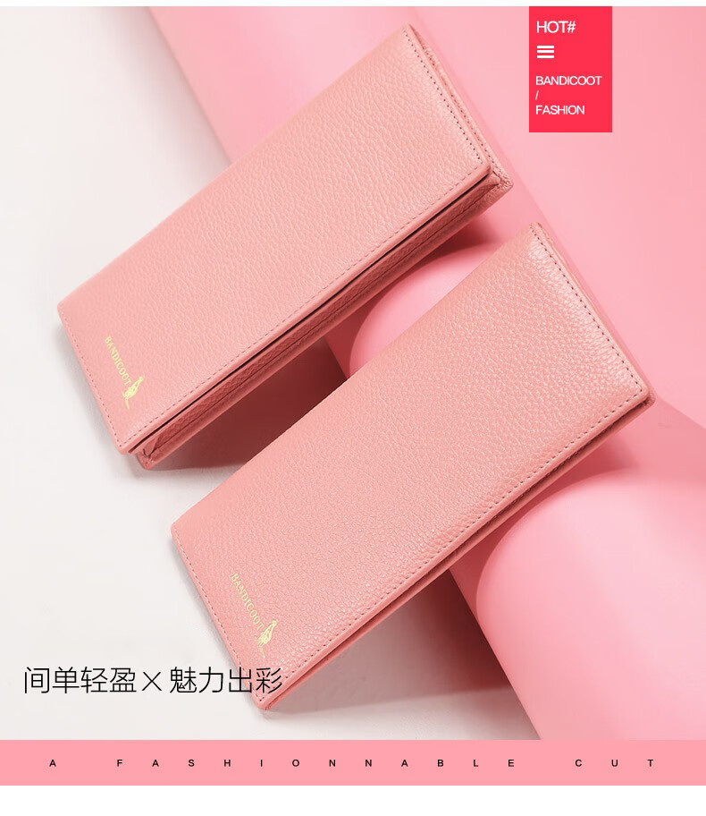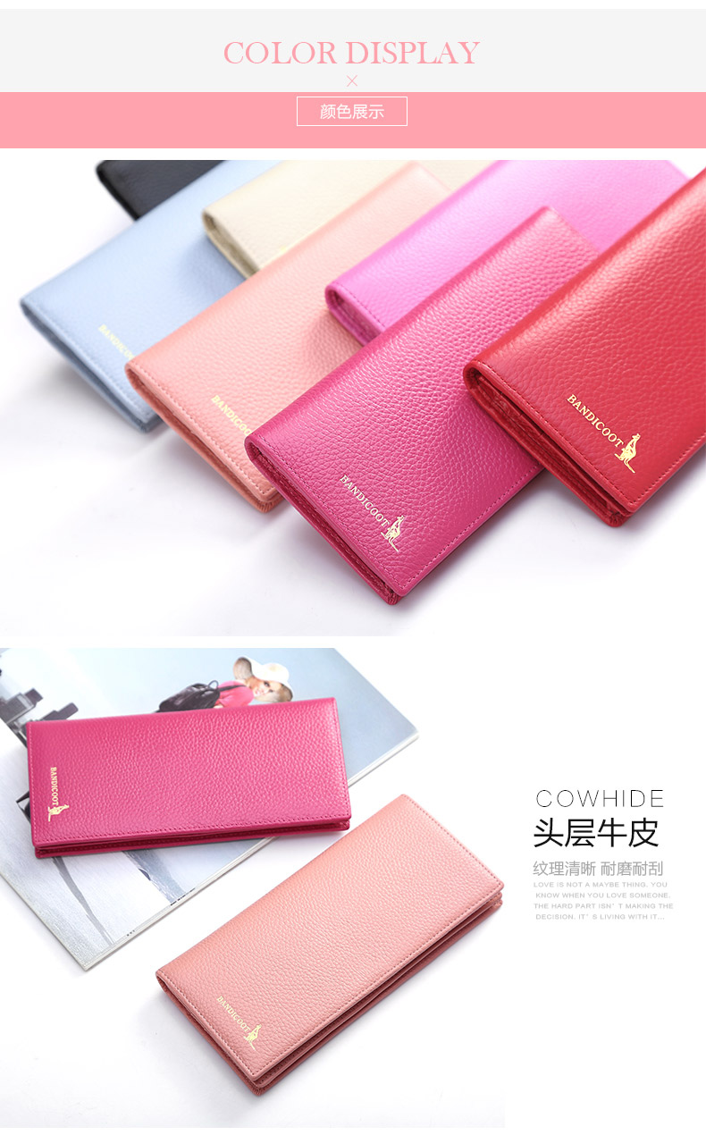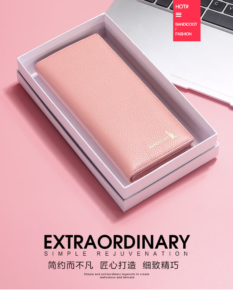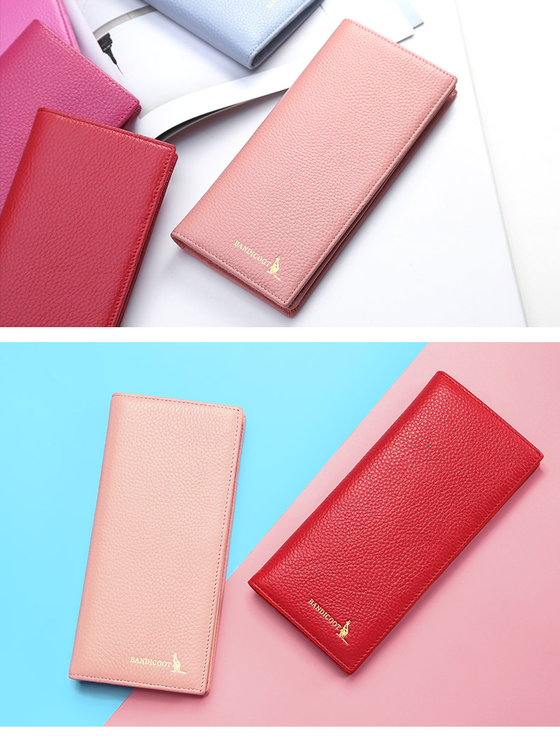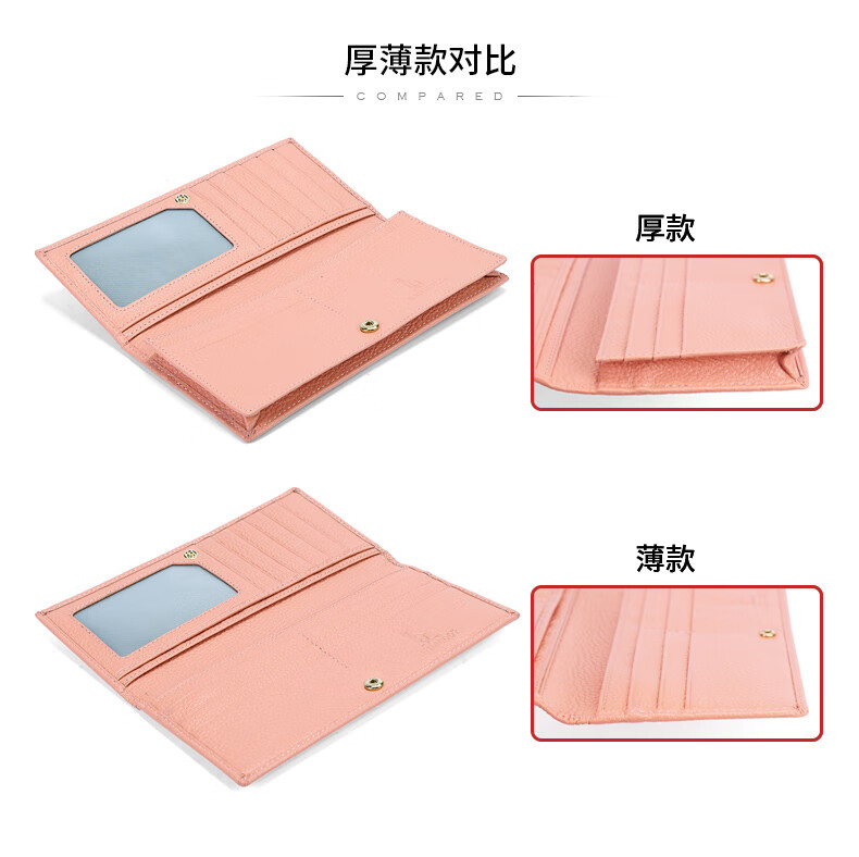 Kangaroo Light Luxury Simple Women's Wallet Women's Long Genuine Leather Wallet Chinese Valentine's Day Fashion Simple Coin Purse Thin Pink (Thick Style)