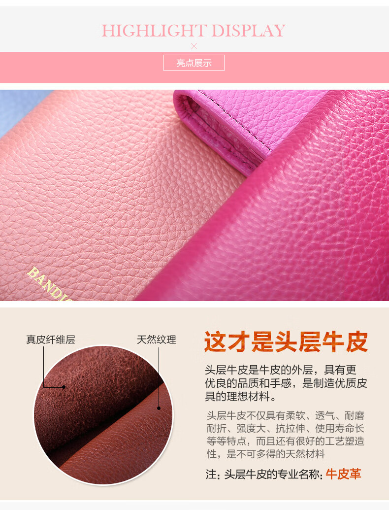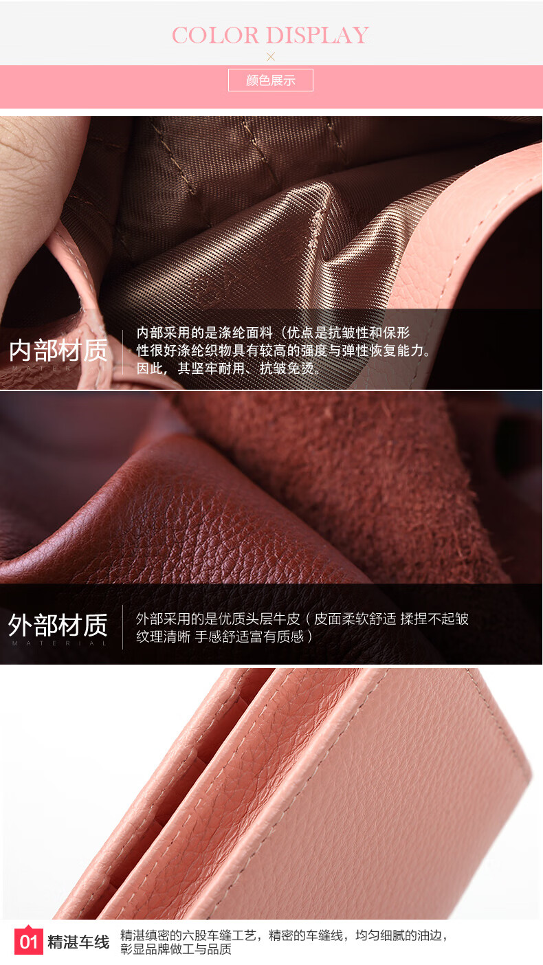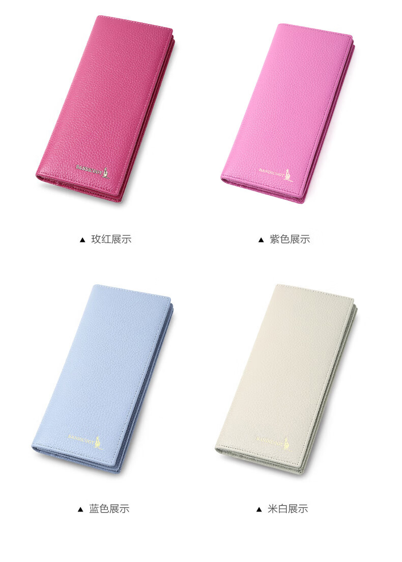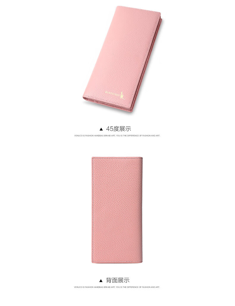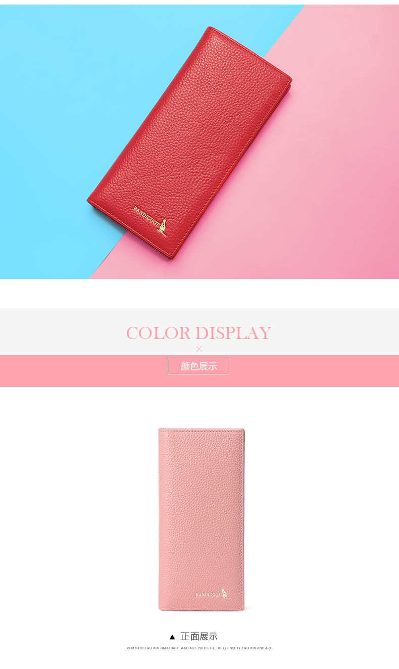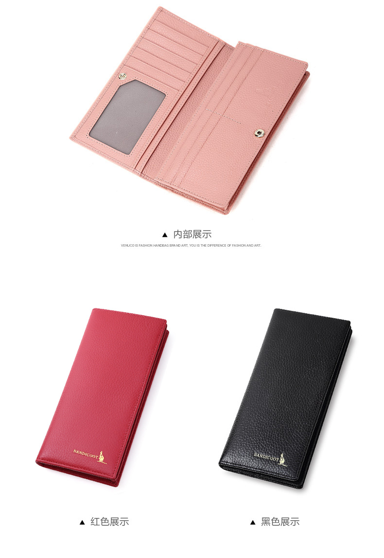 Kangaroo Light Luxury Simple Women's Wallet Women's Long Genuine Leather Wallet Chinese Valentine's Day Fashion Simple Coin Purse Thin Pink (Thick Style)