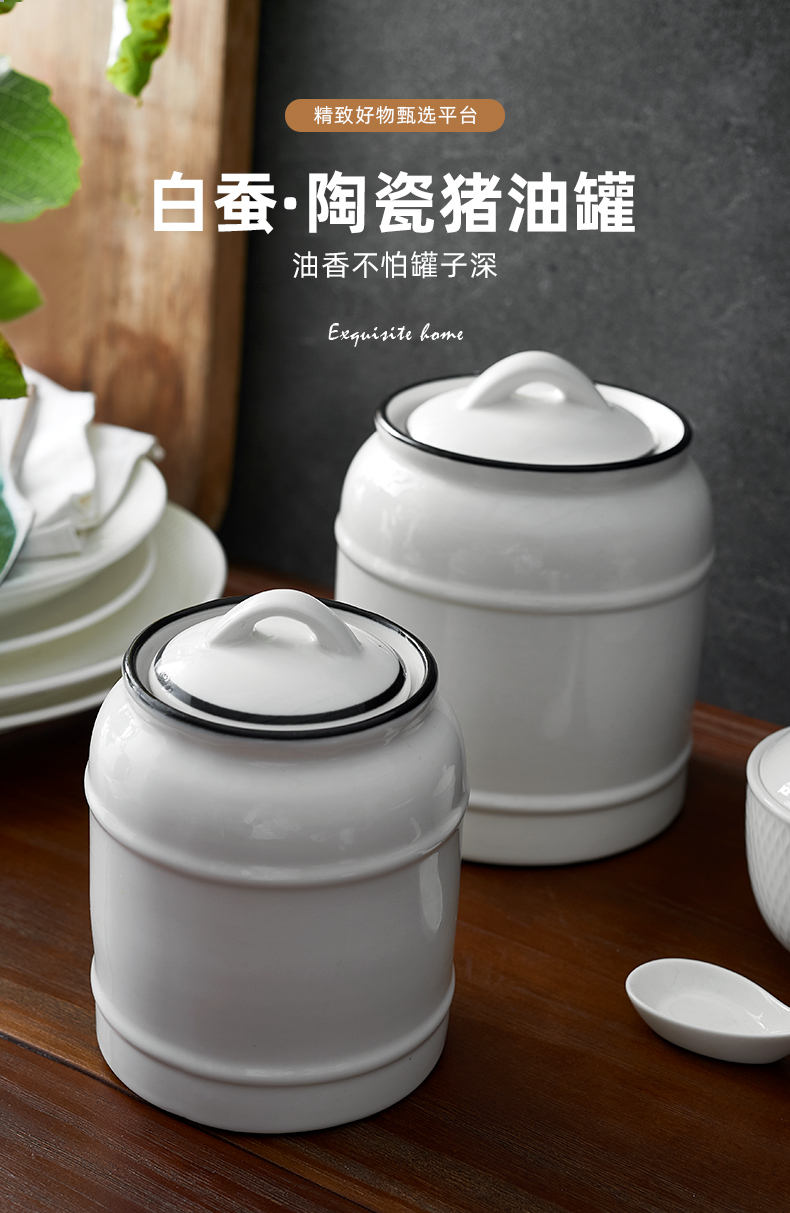 INMIND HOUSE kitchen lard jar household high temperature resistant ceramic jar with lid oil spicy jar chili oil special jar large