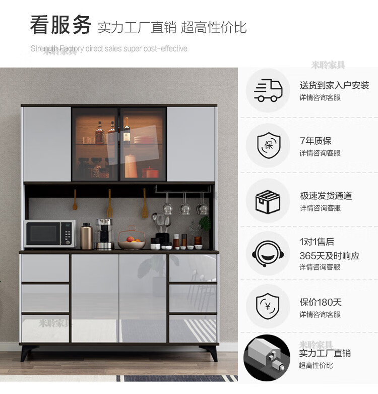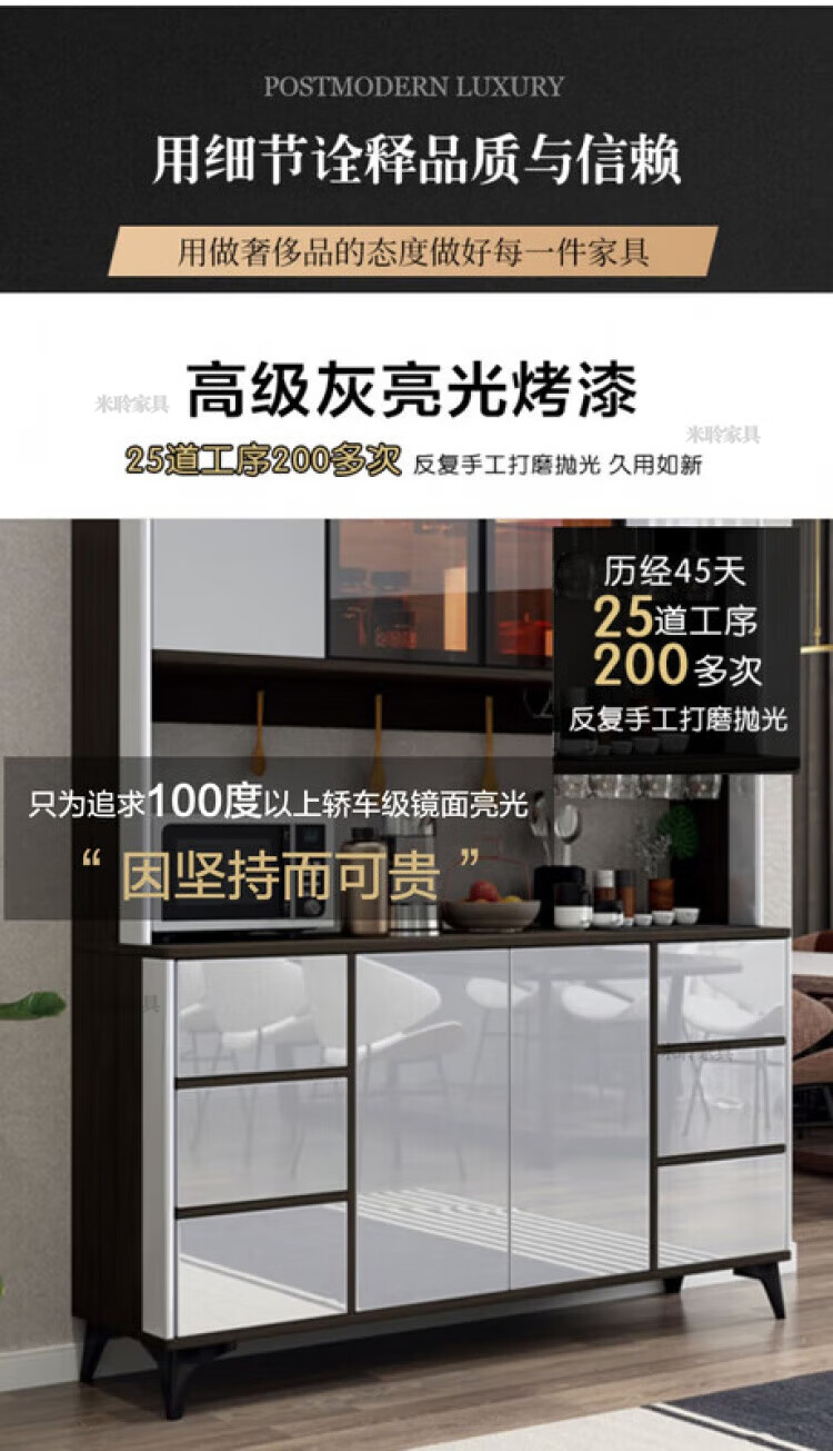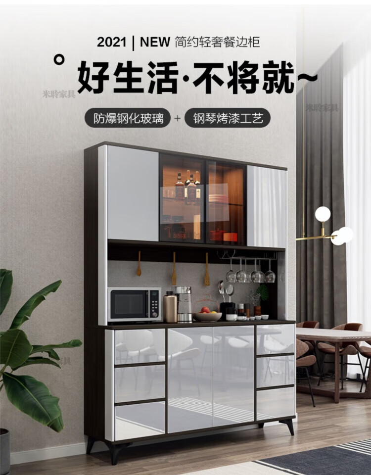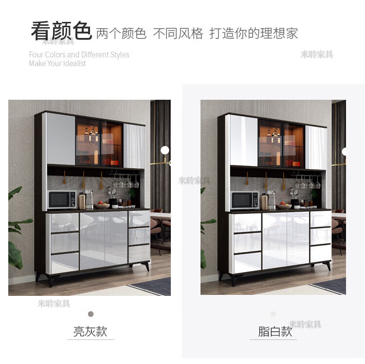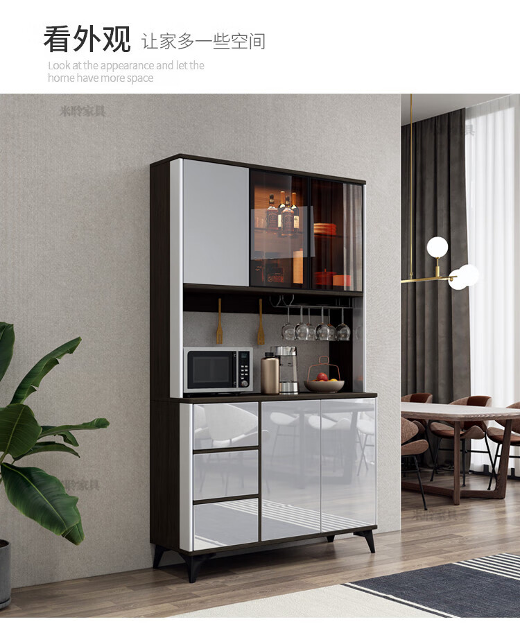 Miling 2025 new style modern simple light luxury wine cabinet multi-functional tea kitchen storage living room customized against the wall bright gray 80 double layer delivery and installation double door