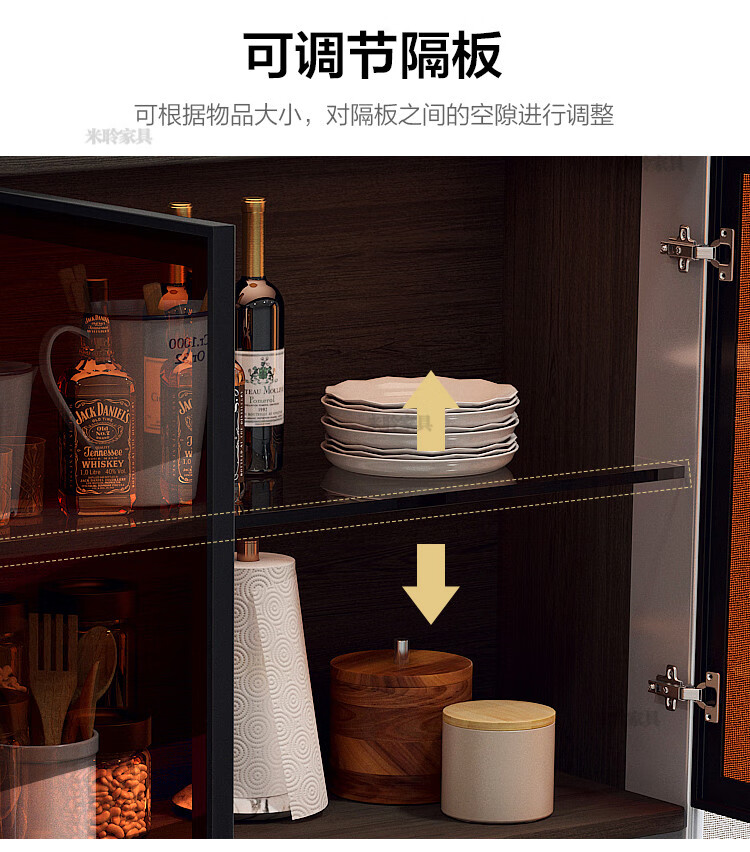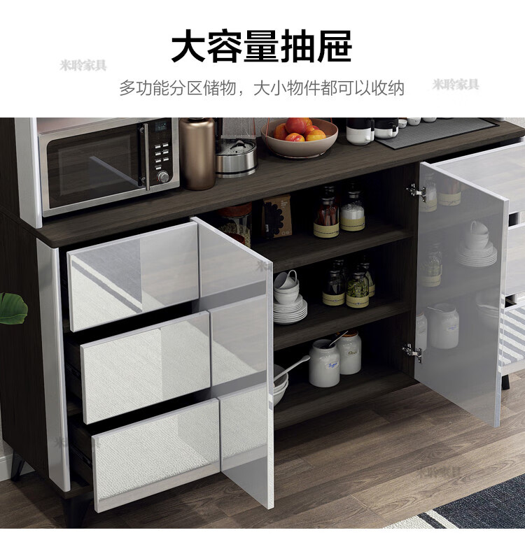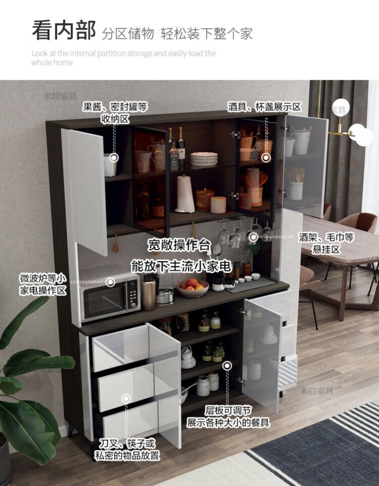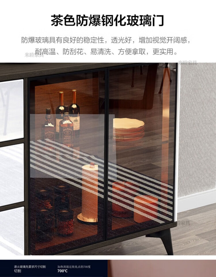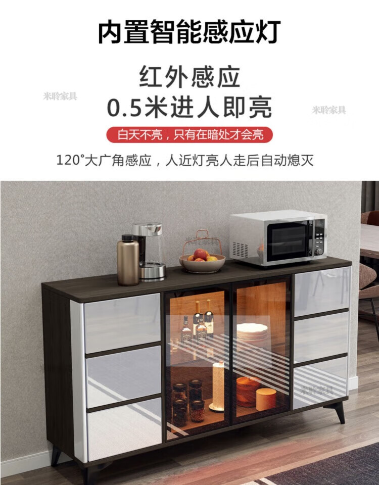 Miling 2025 new style modern simple light luxury wine cabinet multi-functional tea kitchen storage living room customized against the wall bright gray 80 double layer delivery and installation double door
