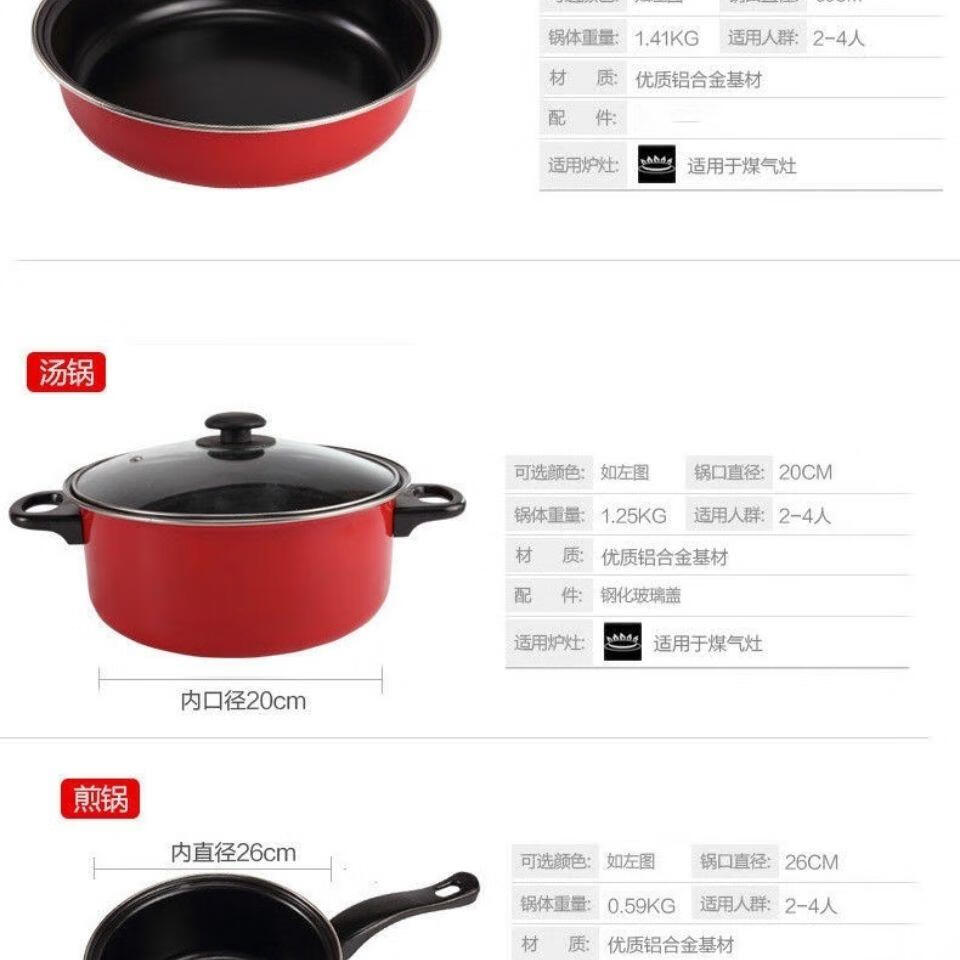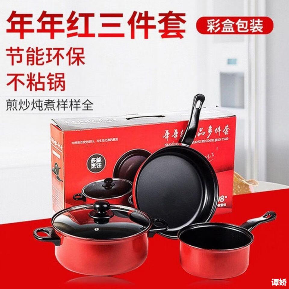 Zhenzao kitchen pot set Nian Nian red pot set non-stick three-piece kitchen gift pot set will be sold and purchased. The whole set has a color box