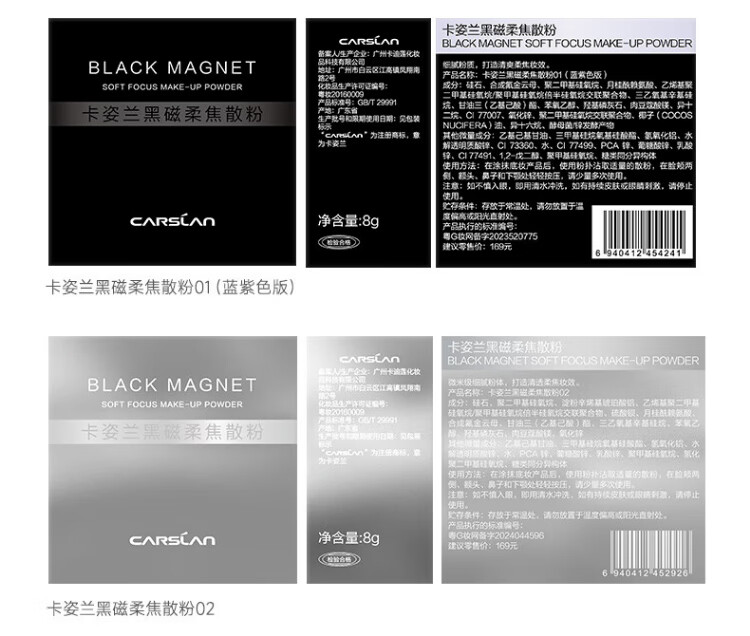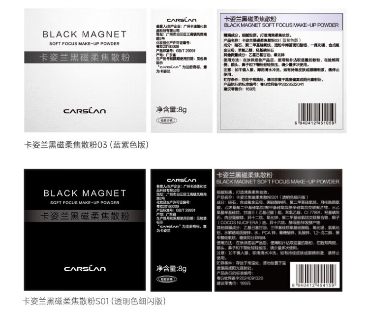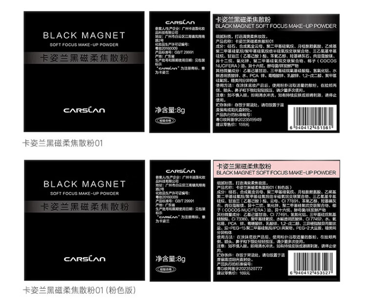 Carslan Black Magnetic Loose Powder Setting Powder Oil Control Long-lasting Waterproof and Sweat-resistant Makeup New Year Gift for Girls 1.0 Oil Control-Transparent Color (Oily Skin/Combination Oil)