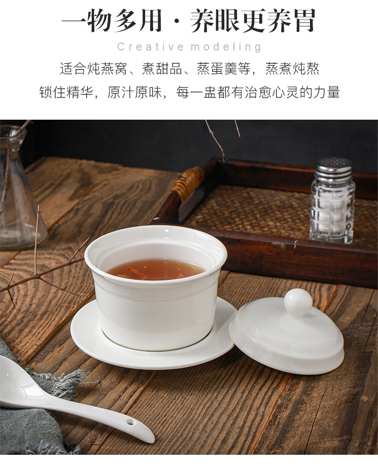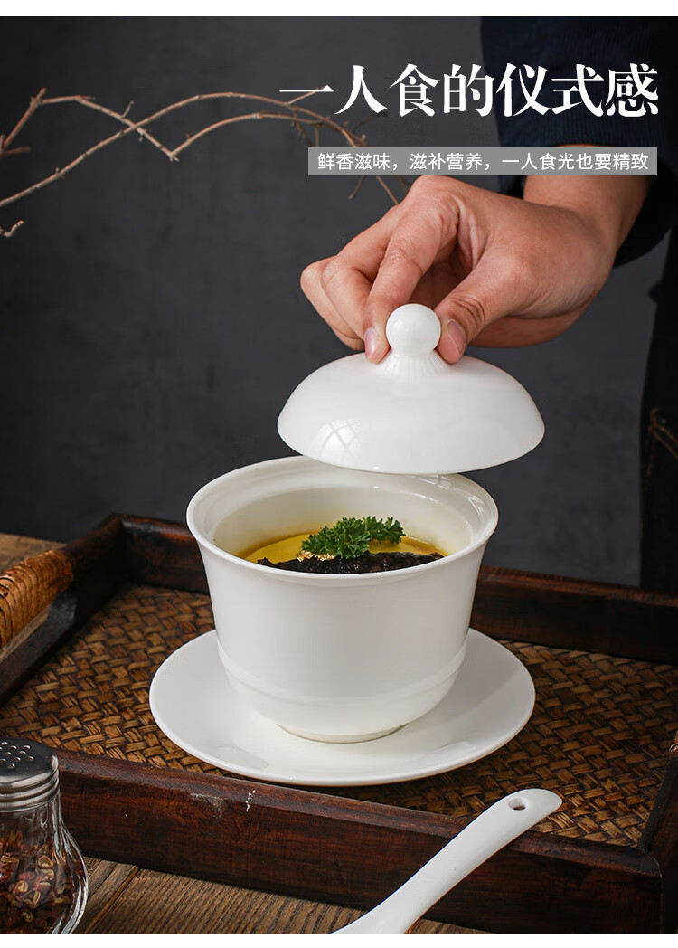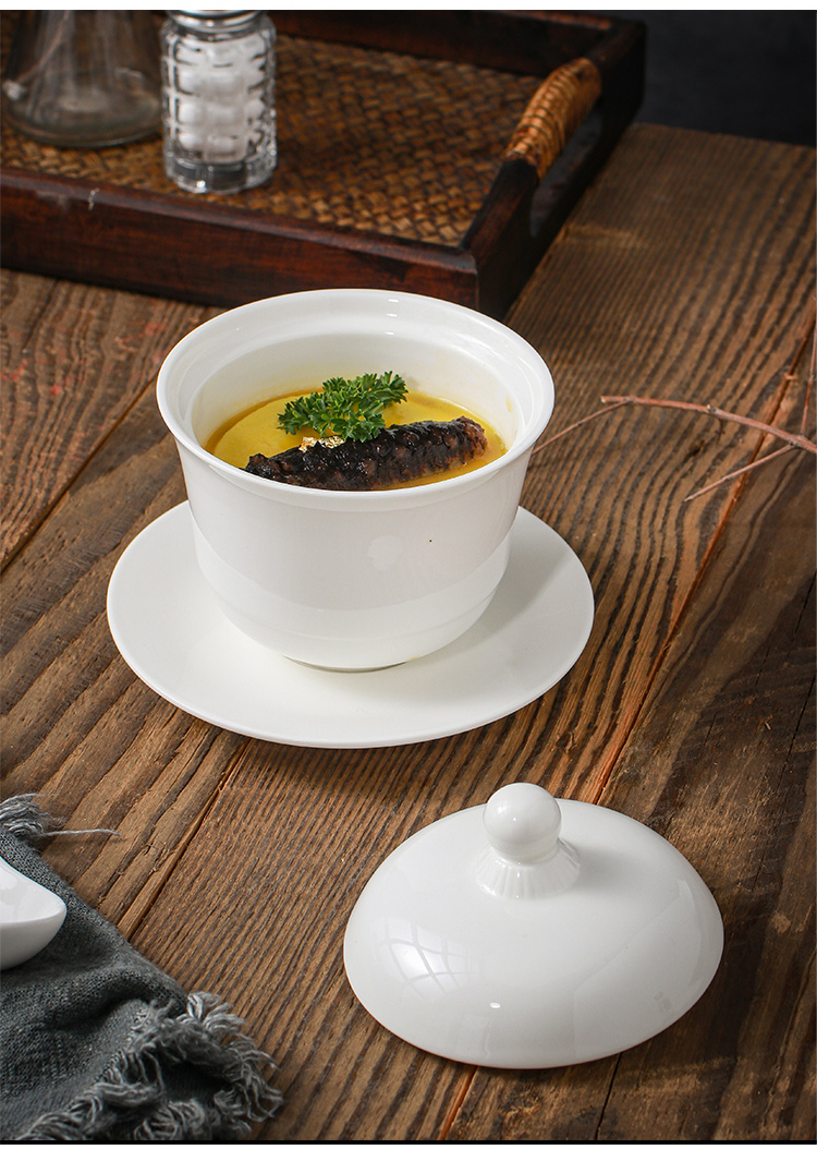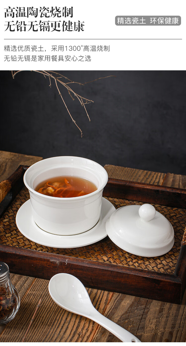 Chidu bird's nest bowl stew pot with lid, water-proof stew pot, high-end liner, household soup bowl, steaming bowl, steamed egg cup, dessert jar, hotel high-end tableware, Buddha jumping over the wall, fish glue, sea cucumber cup, small soup cup, 4-inch patternless European-style cup (with plate) + spoon - inlaid with gold