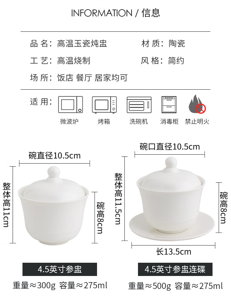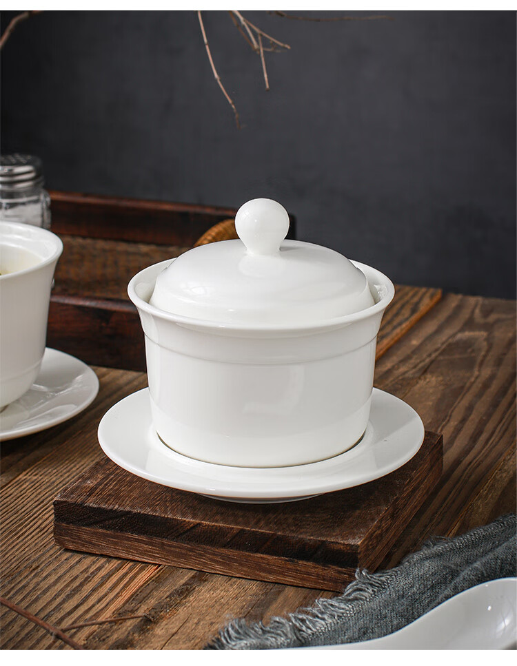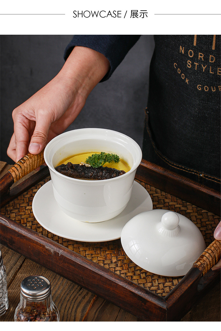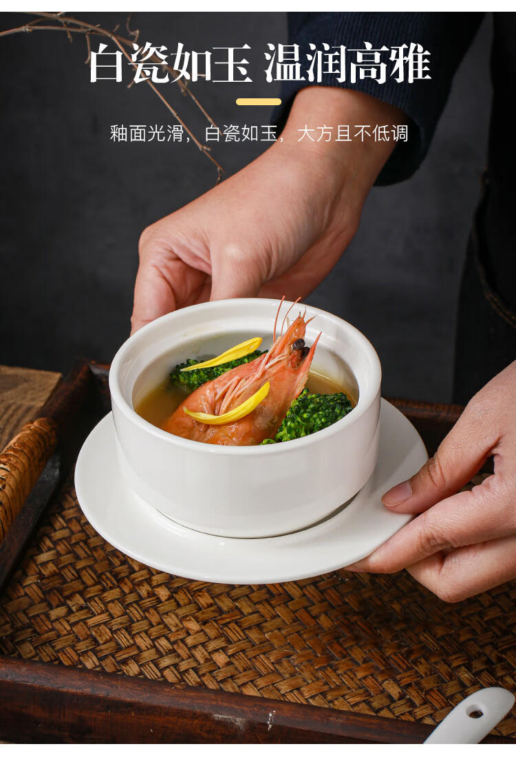 Chidu bird's nest bowl stew pot with lid, water-proof stew pot, high-end liner, household soup bowl, steaming bowl, steamed egg cup, dessert jar, hotel high-end tableware, Buddha jumping over the wall, fish glue, sea cucumber cup, small soup cup, 4-inch patternless European-style cup (with plate) + spoon - inlaid with gold