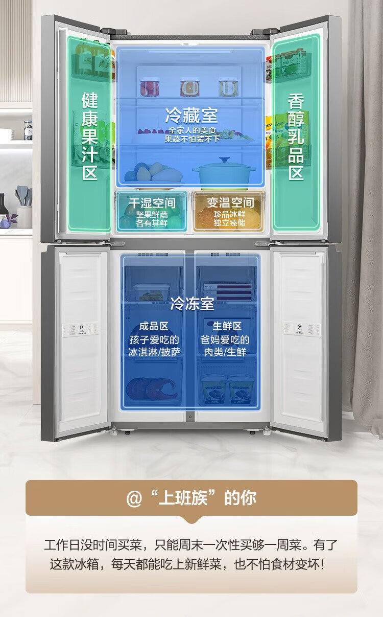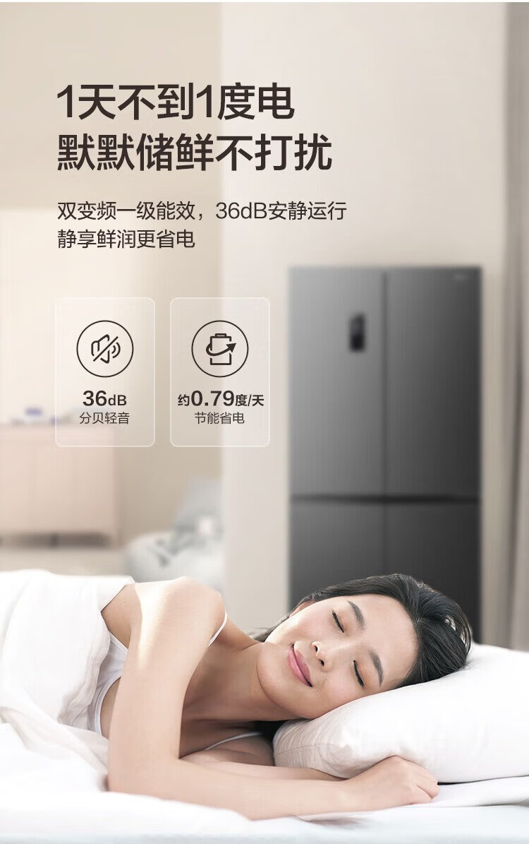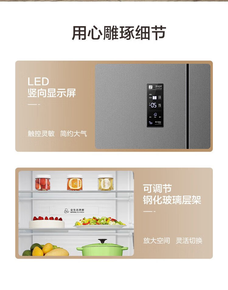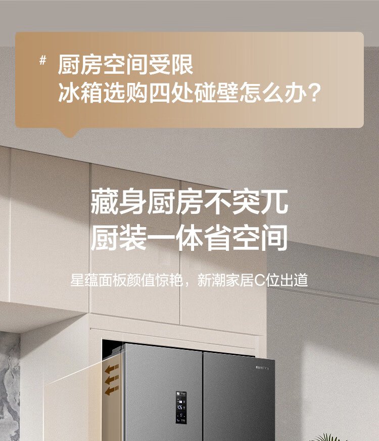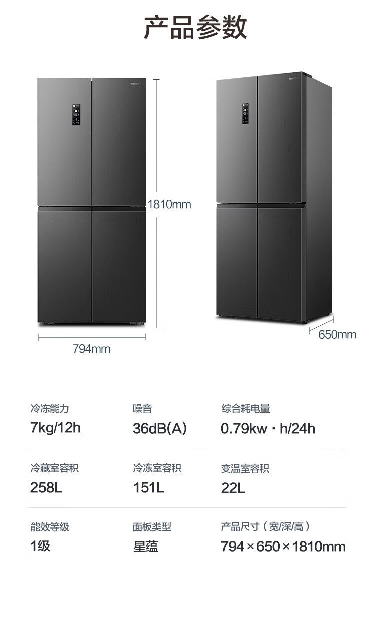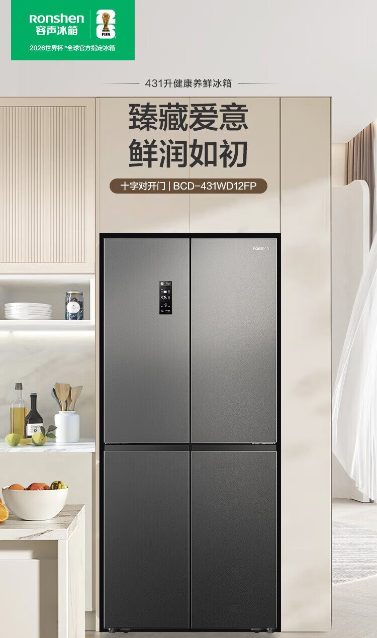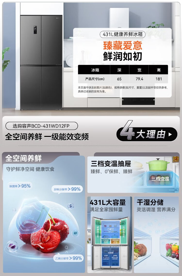 Rongsheng 431 liter cross-door refrigerator full space purification upgraded four-door first-class energy efficiency variable frequency large capacity air-cooled frost-free trade-in BCD-431WD12FP gray