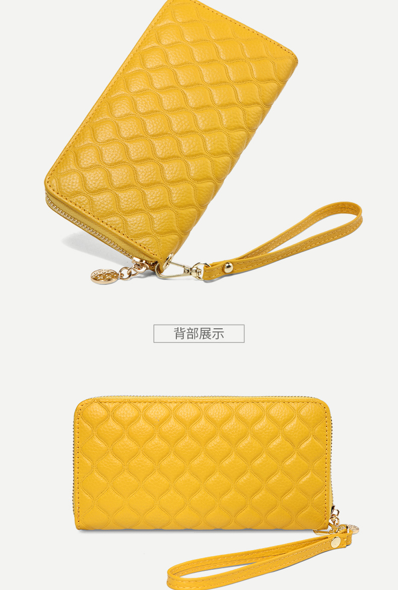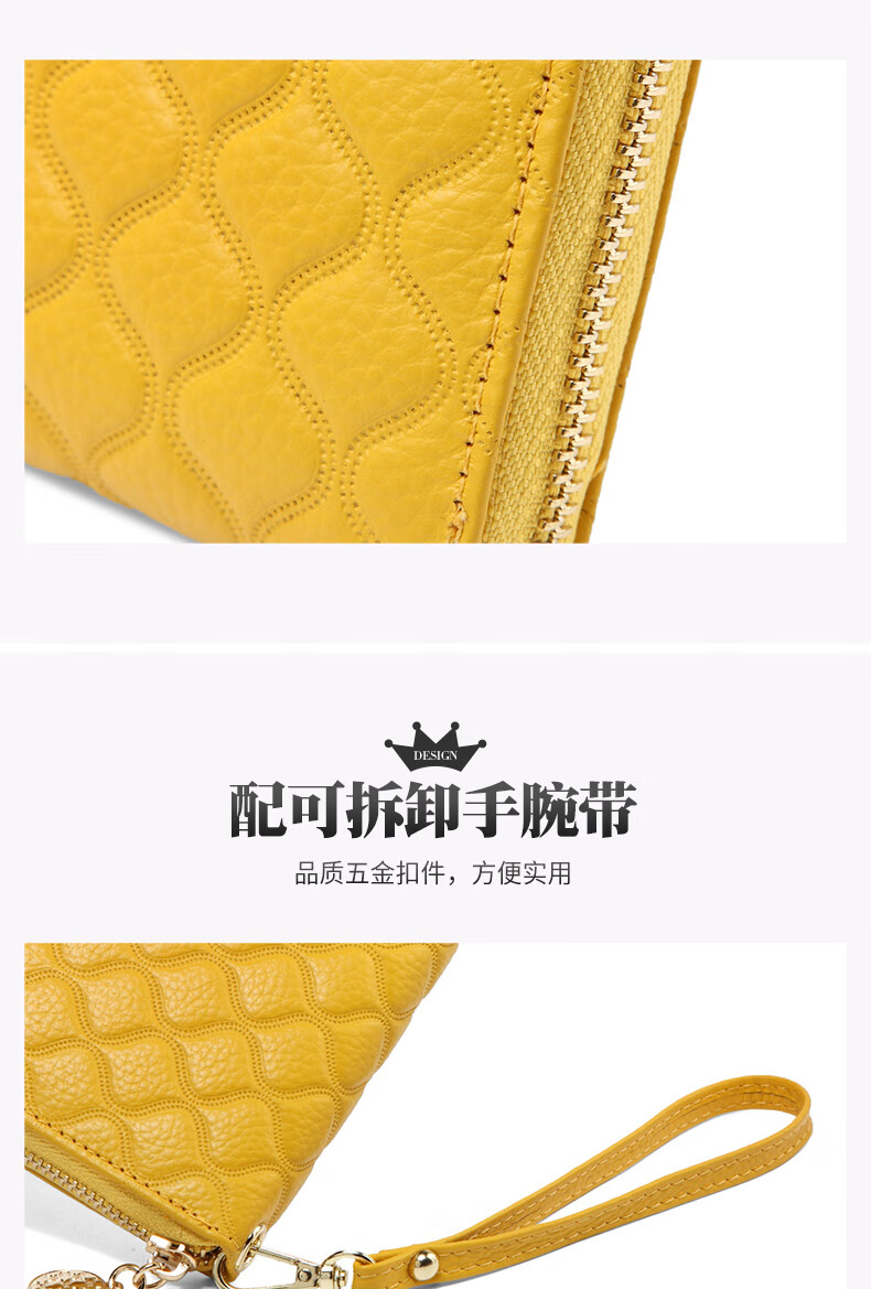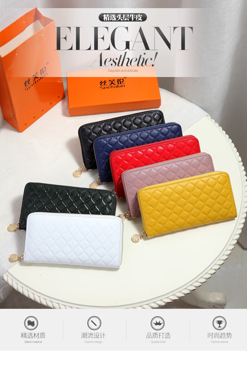 Sephora brand gift box packaging, yellow long-term genuine leather hand wallet for women, anti-degaussing and anti-theft brush, small fragrant rhombus, large capacity for mobile phone, yellow, no specifications
