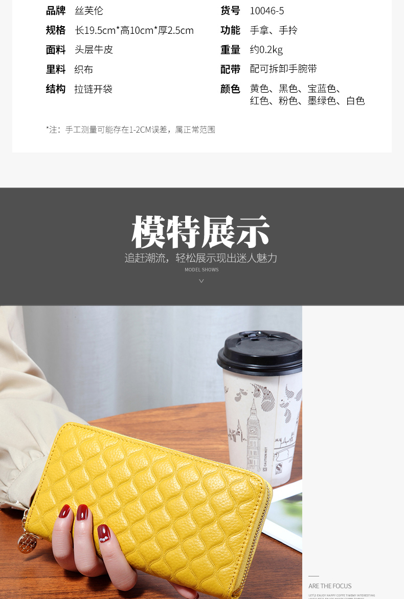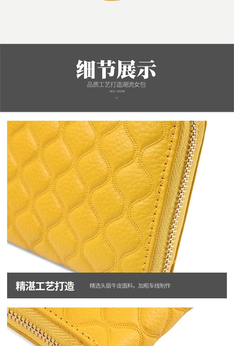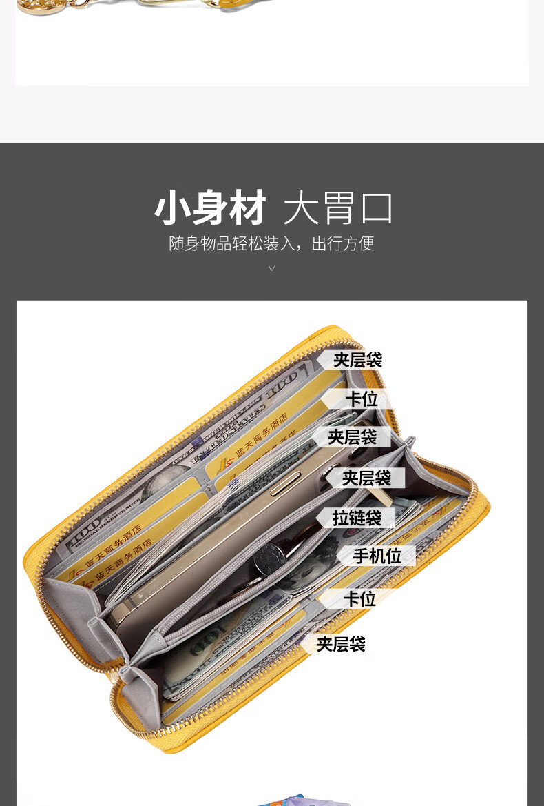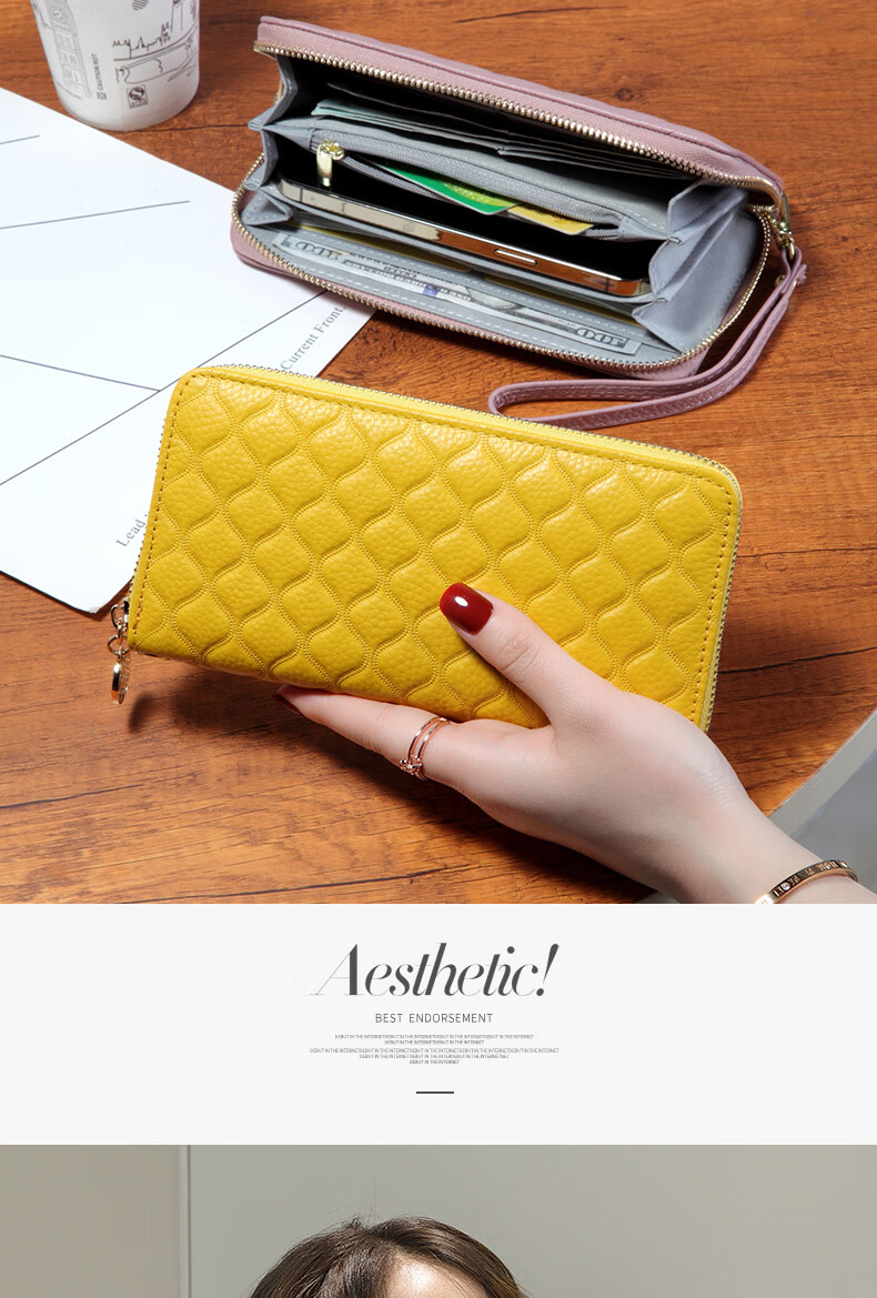 Sephora brand gift box packaging, yellow long-term genuine leather hand wallet for women, anti-degaussing and anti-theft brush, small fragrant rhombus, large capacity for mobile phone, yellow, no specifications
