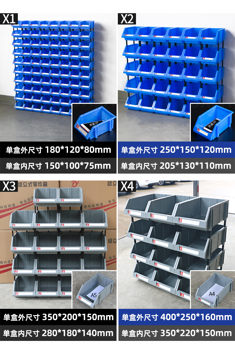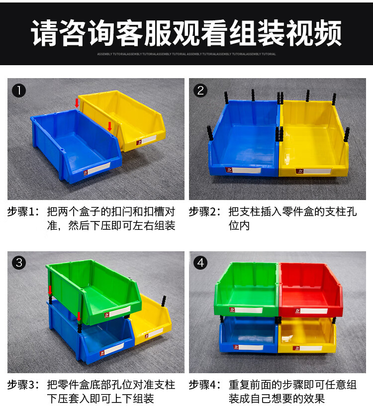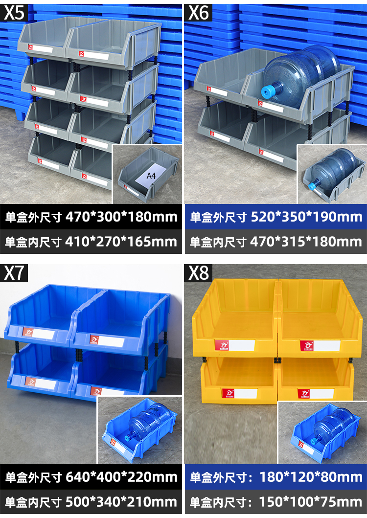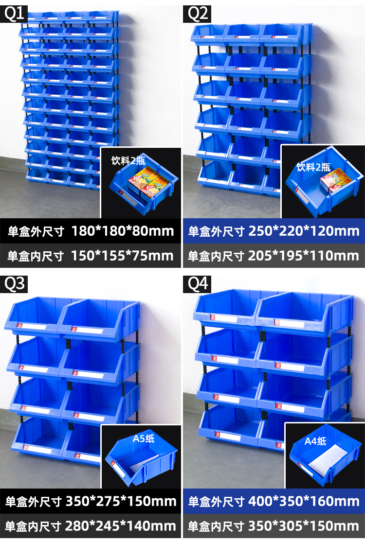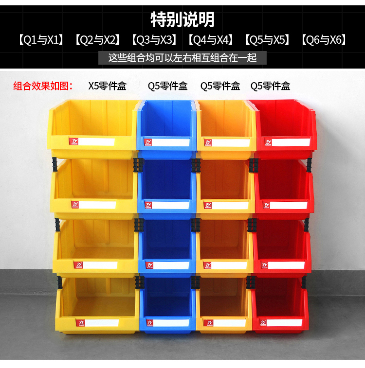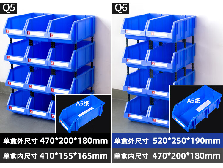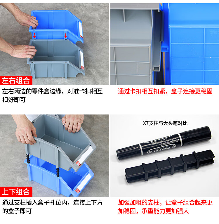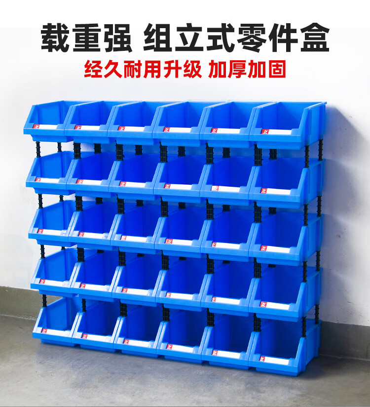 Mingfeng Tenglong combined parts box thickened parts storage box warehouse material box classification storage box hardware oblique accessories screw storage box toy organization plastic box Q4# 8 pieces 400*350*160mm blue five colors available, please contact customer service for details