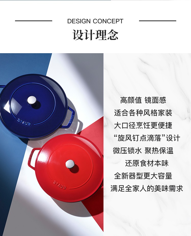 Staub enamel cast iron pot seafood pot soup pot stew pot cooking pot induction cooker universal seafood pot sapphire blue 28cm