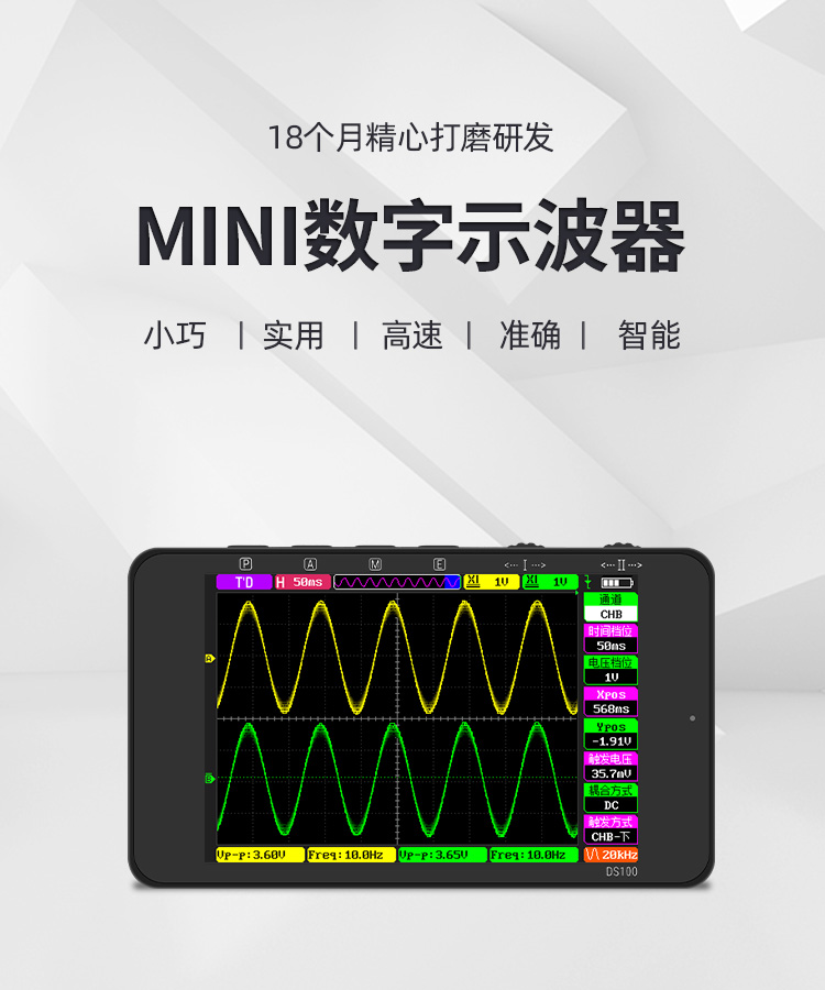 Punctual Atomic DS100 handheld digital oscilloscope dual channel Mini mini portable instrument auto repair DS100+ black silicone case DS