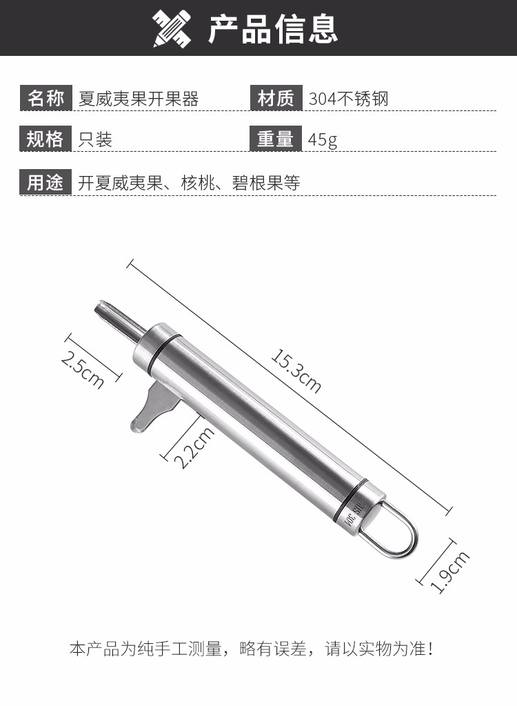 Youfan Youpin Stainless Steel Macadamia Nut Shell Opener Hazelnut Shelling Walnut Tool Household Pecan Fruit Shelling Nut Opener 1 Pack 304 Stainless Steel Shell Opener