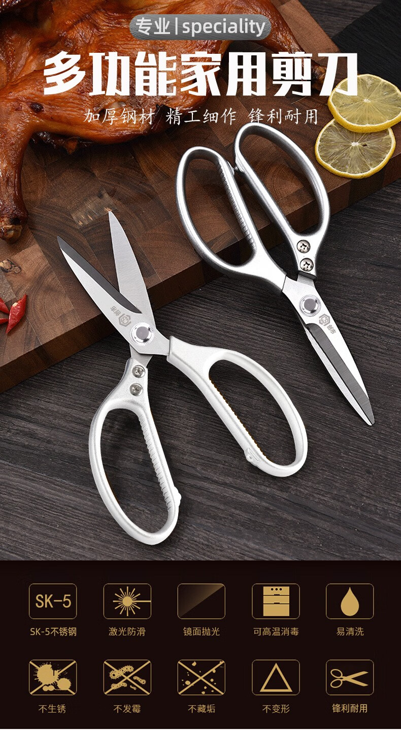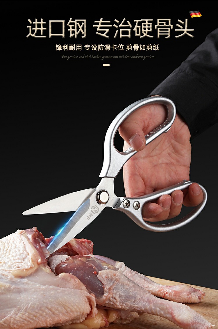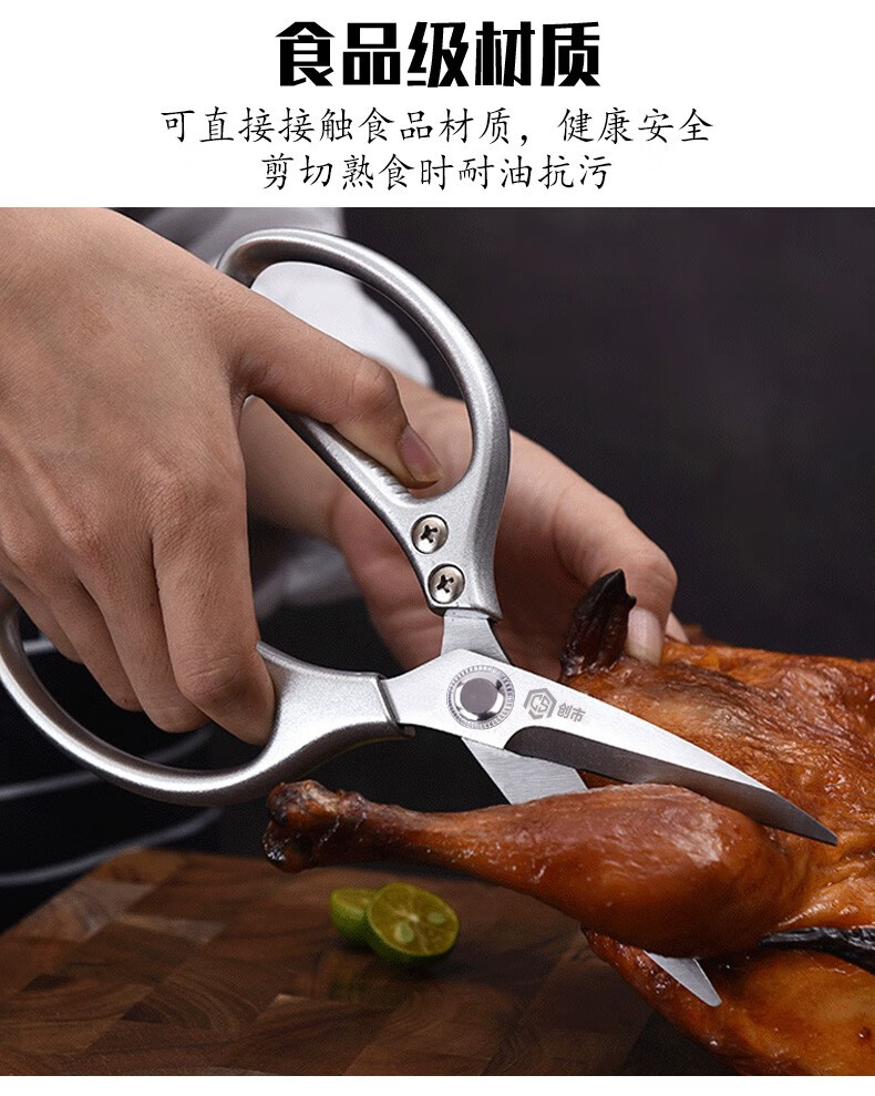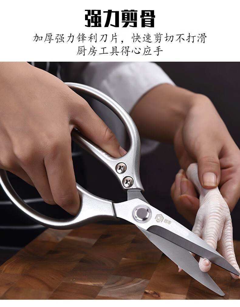Chuangshi Scissors Kitchen Chicken Bone Scissors Stainless Steel Strong Chicken and Duck Fish Bone Scissors Multifunctional Thickened Scissors Chuangshi Multifunctional Household Kitchen Scissors
