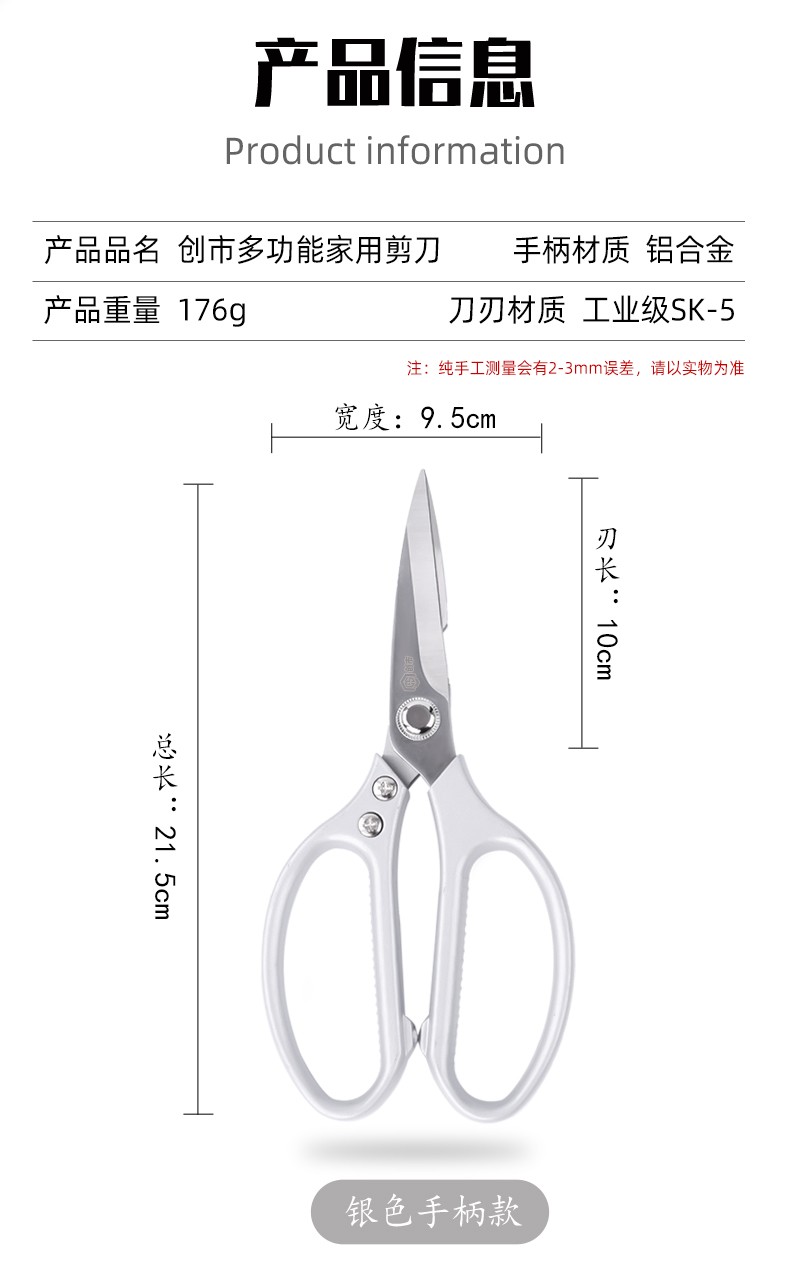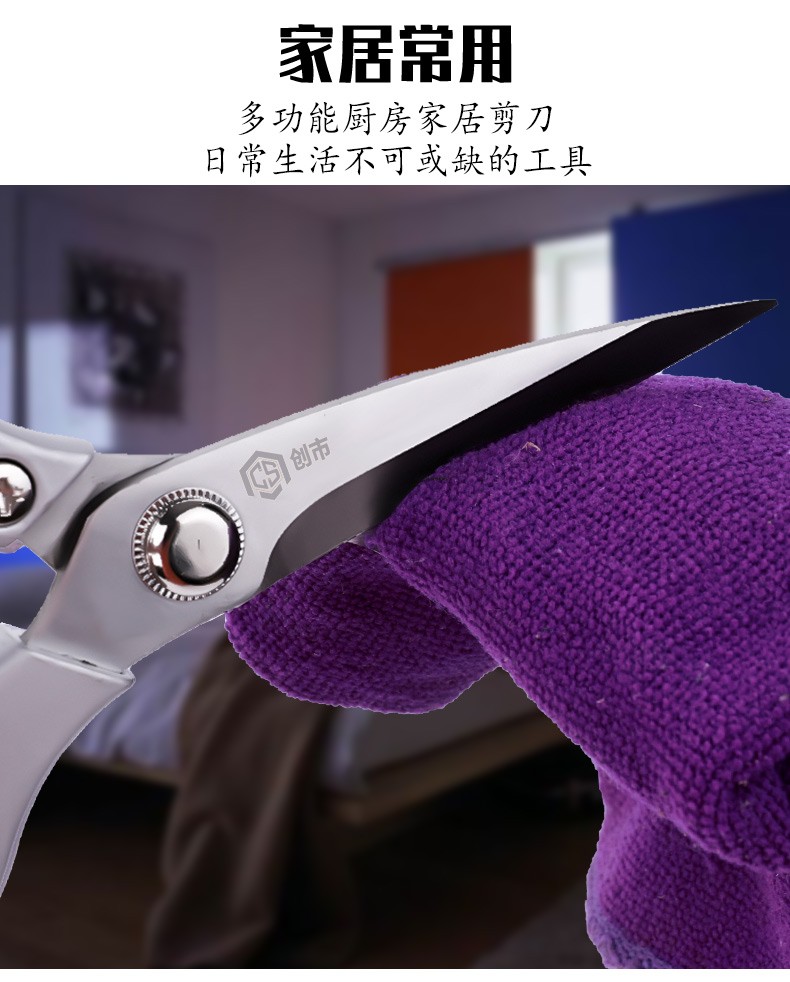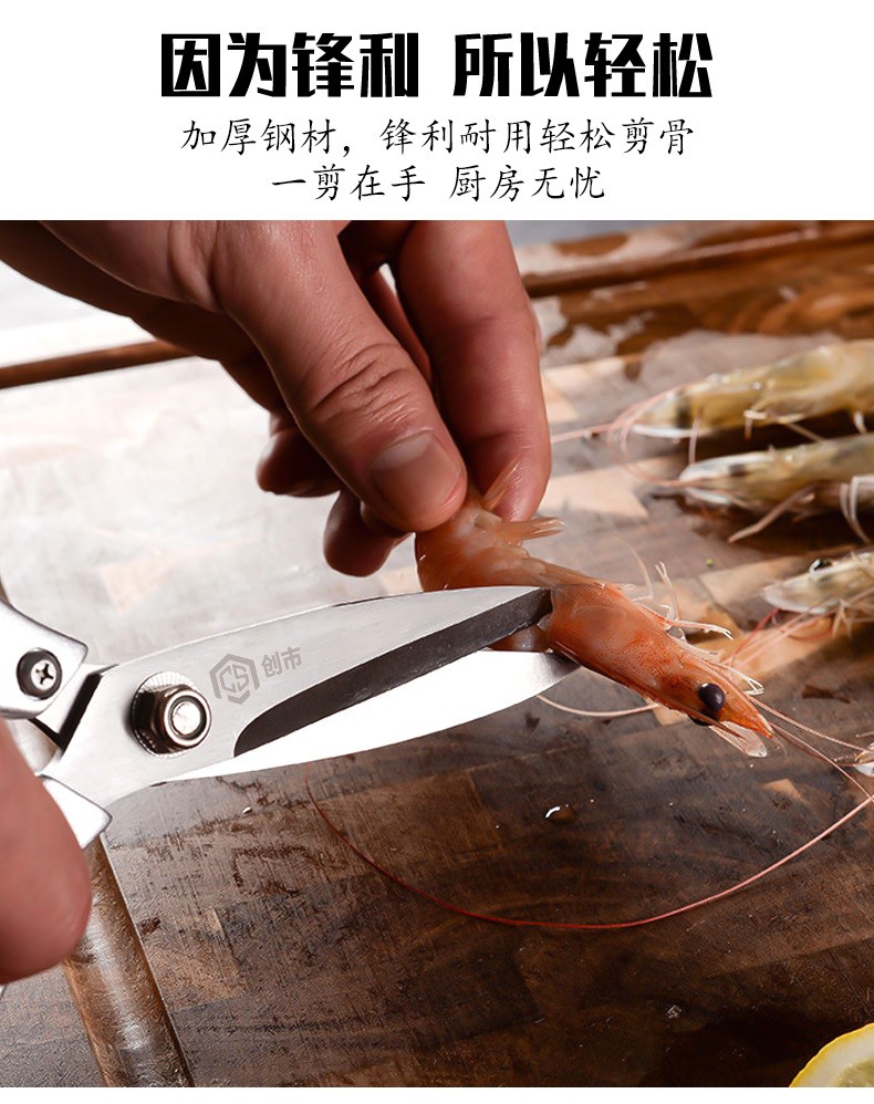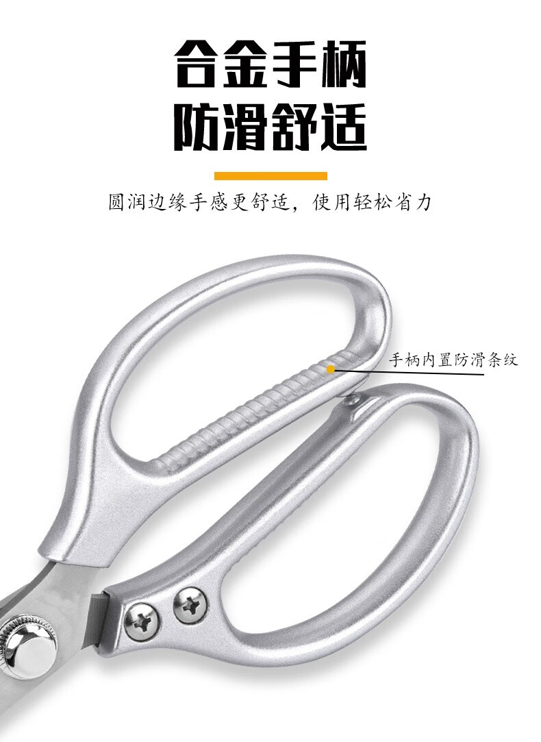 Chuangshi Scissors Kitchen Chicken Bone Scissors Stainless Steel Strong Chicken and Duck Fish Bone Scissors Multifunctional Thickened Scissors Chuangshi Multifunctional Household Kitchen Scissors