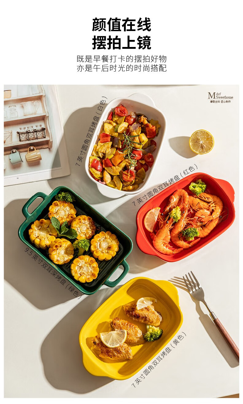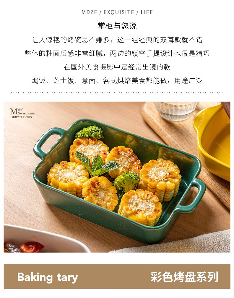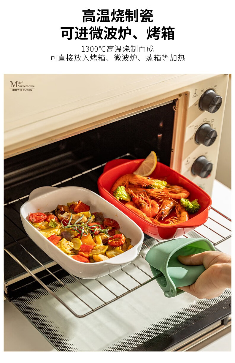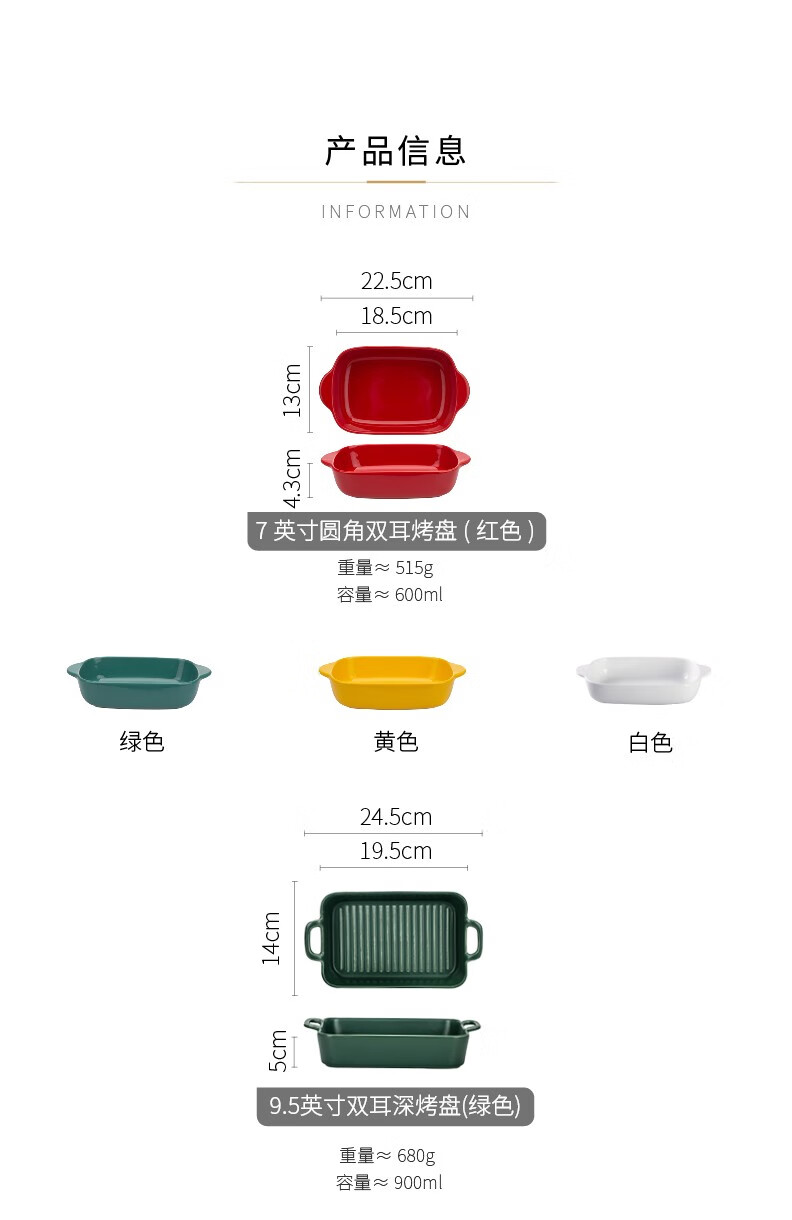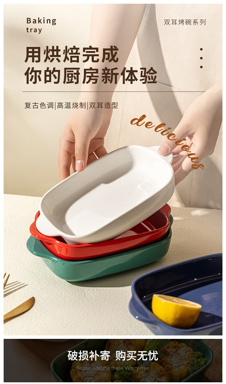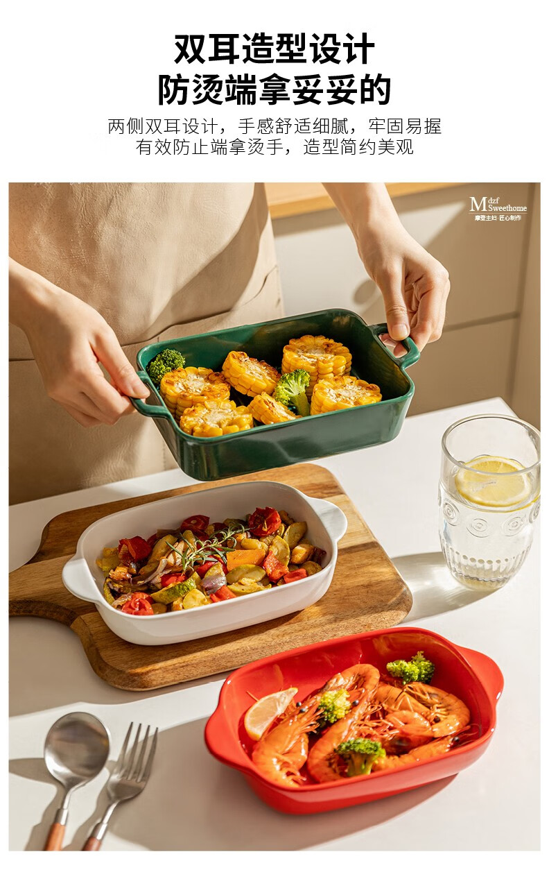 Modern housewife ceramic two-ear anti-scalding baking pan, rice plate, household microwave oven plate, special utensil 7-inch rounded two-ear baking pan (white)