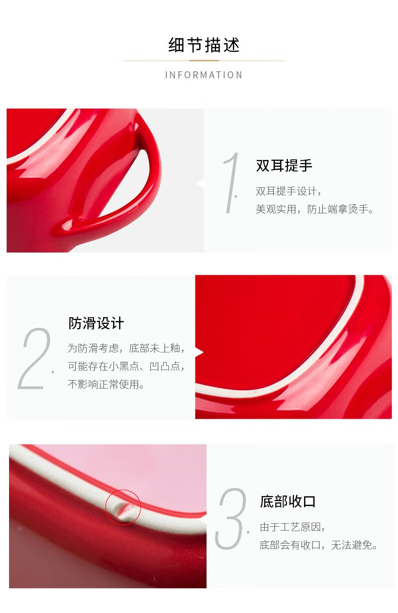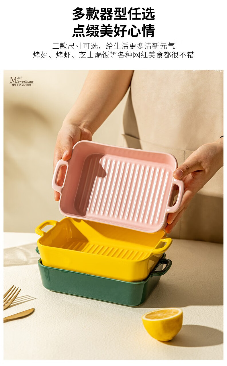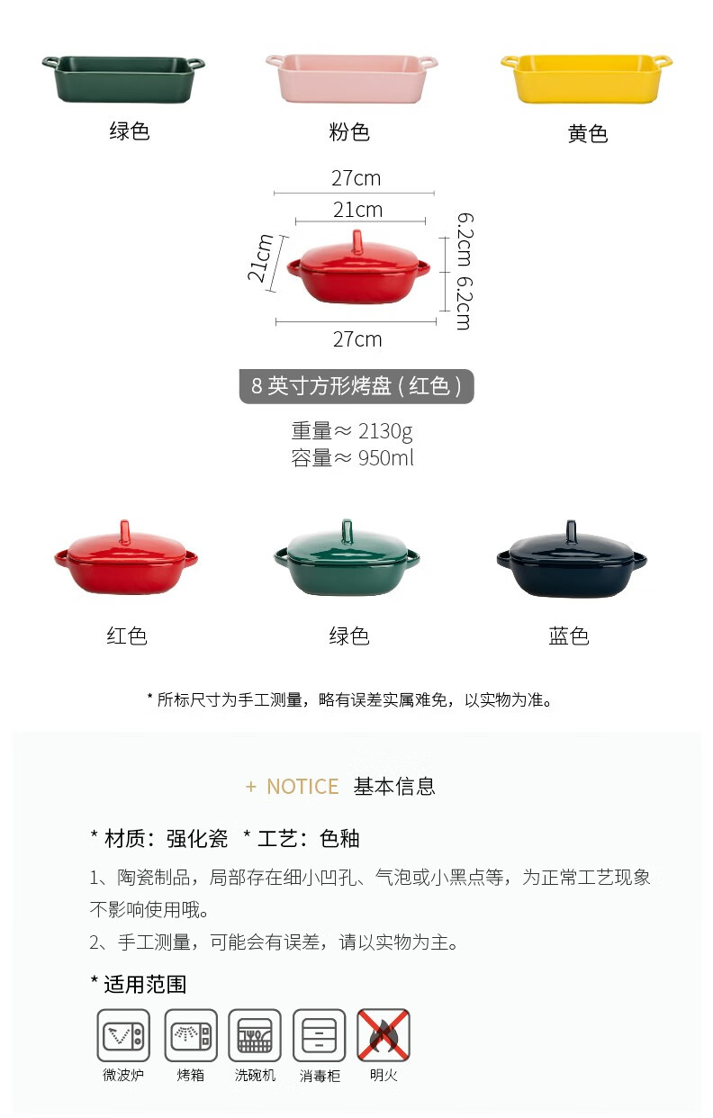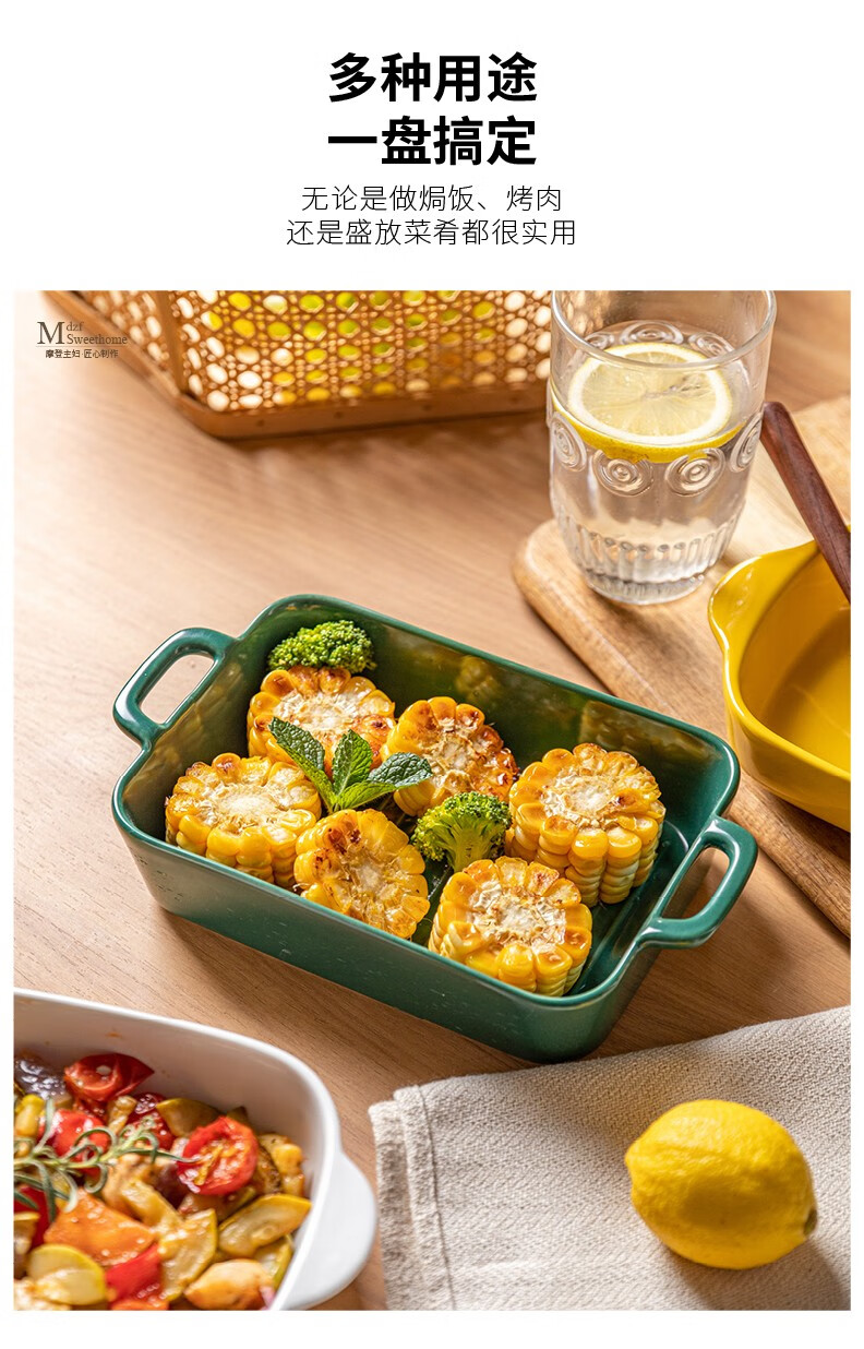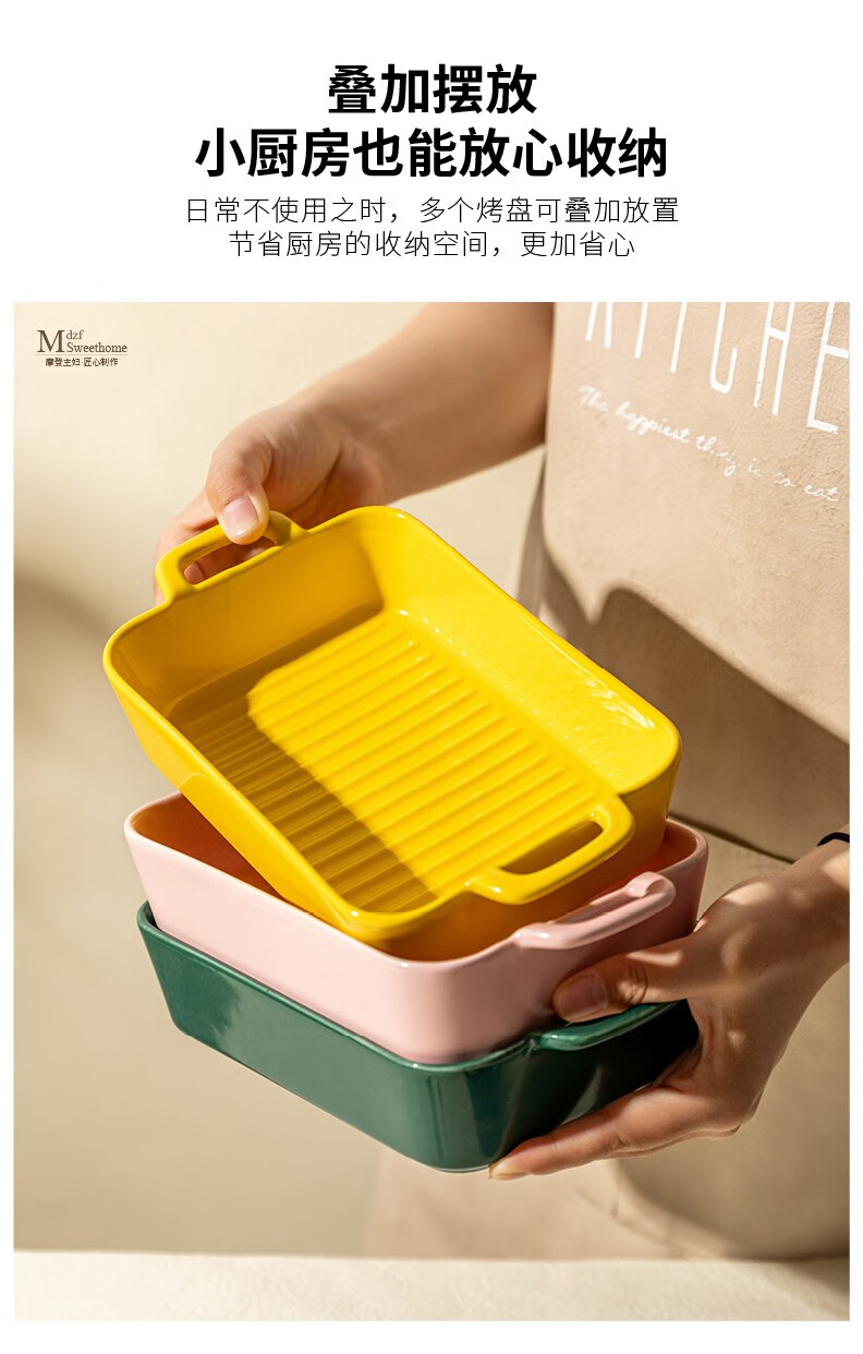 Modern housewife ceramic two-ear anti-scalding baking pan, rice plate, household microwave oven plate, special utensil 7-inch rounded two-ear baking pan (white)