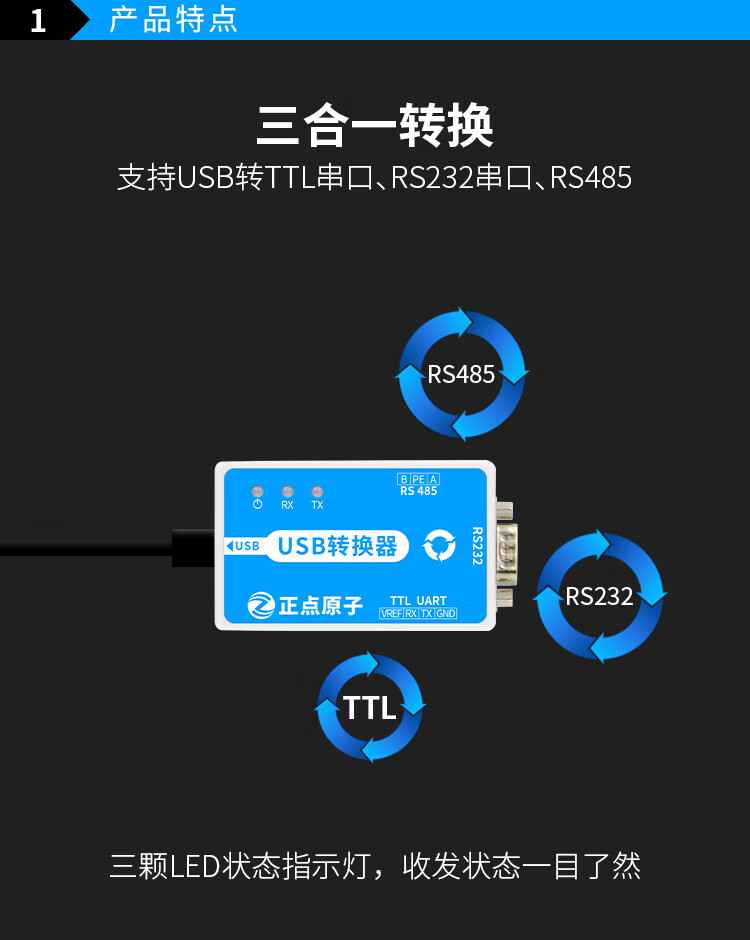 Punctual Atomic USB serial converter three-in-one industrial grade module 232 485 TTL RS232 RS485 CH340 isolation
