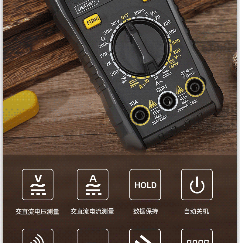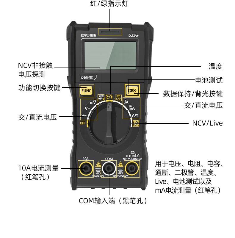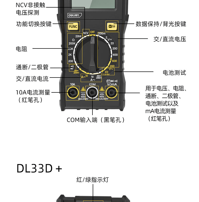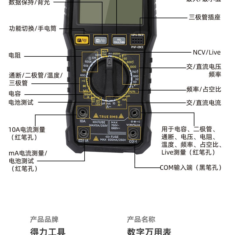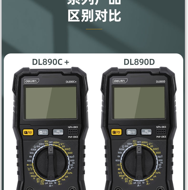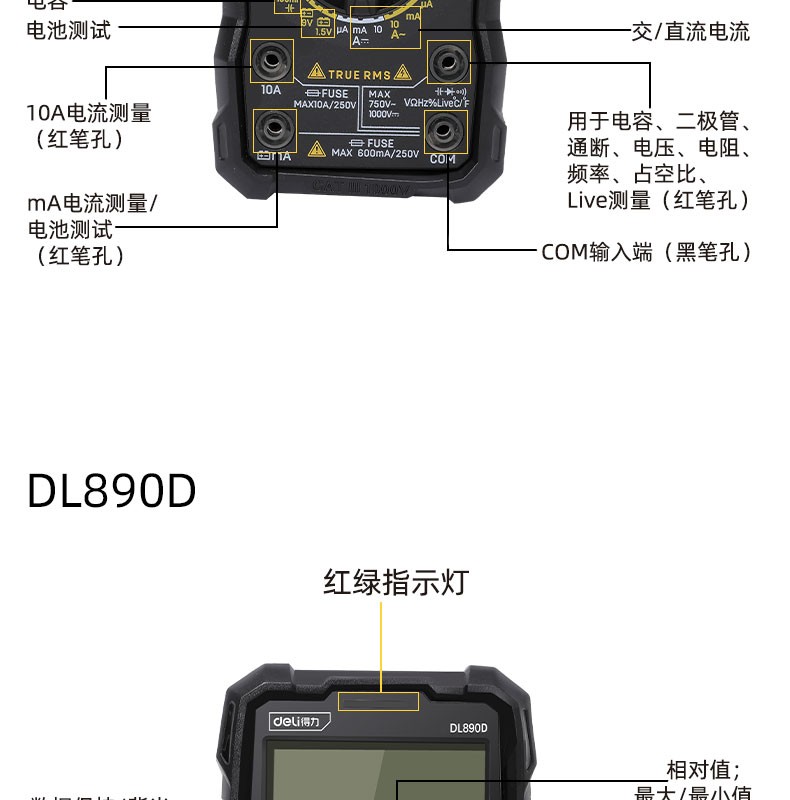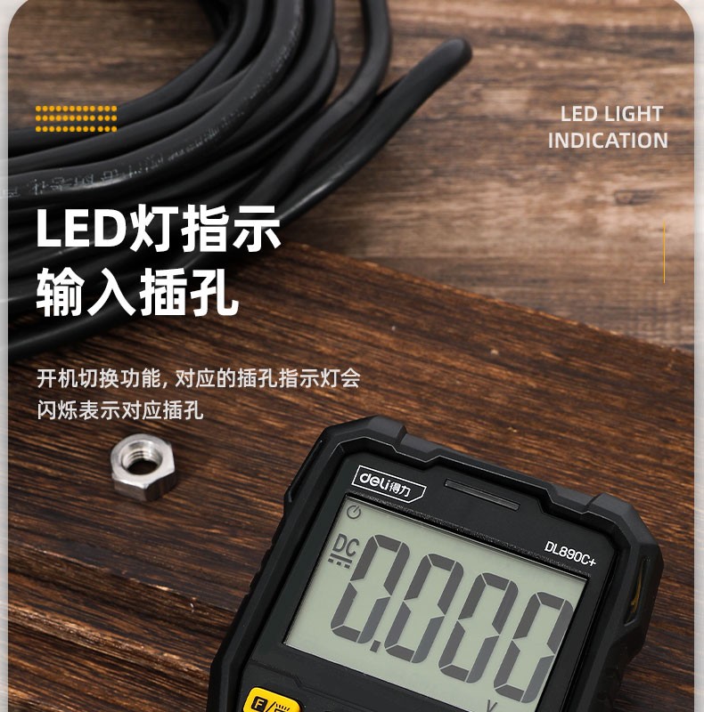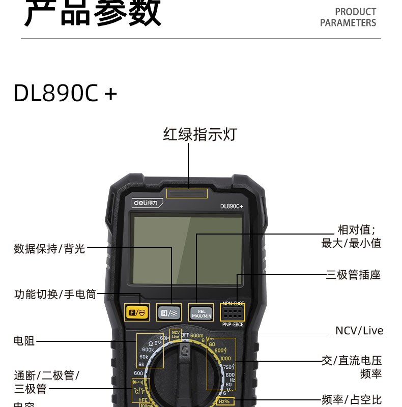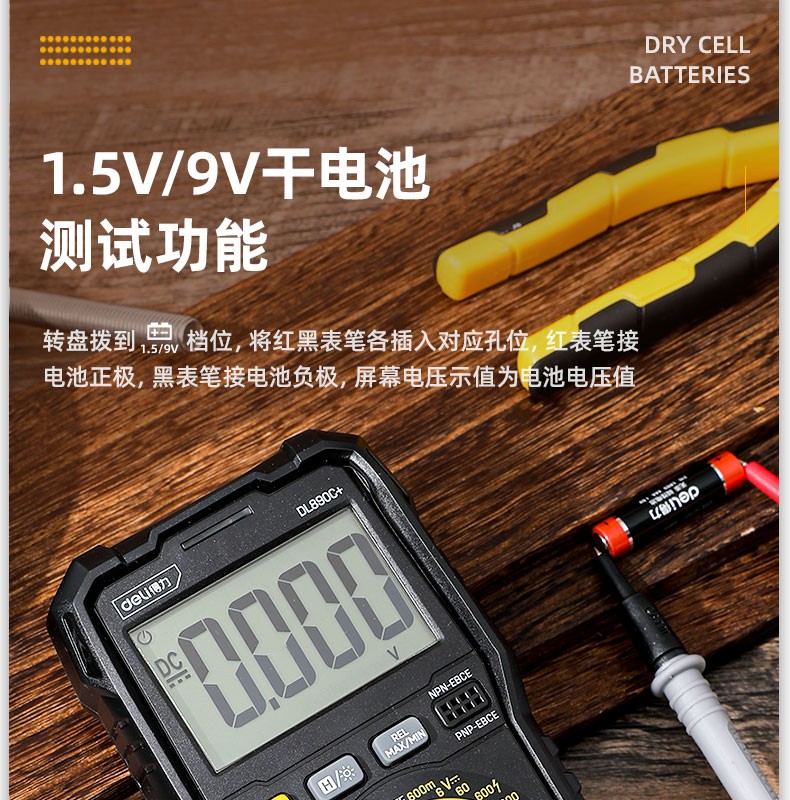 Deli digital multimeter burn-proof manual range multi-function small DC voltage and ammeter electrician maintenance digital display digital multimeter 5999 digits DL890C+
