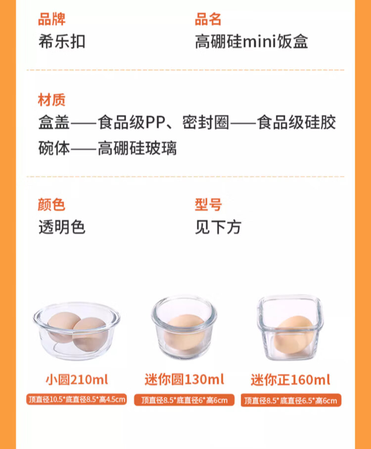 Cilock food supplement box can be steamed, microwave heated, bowl, glass crisper, food sample box, mini lunch box 160ml*4