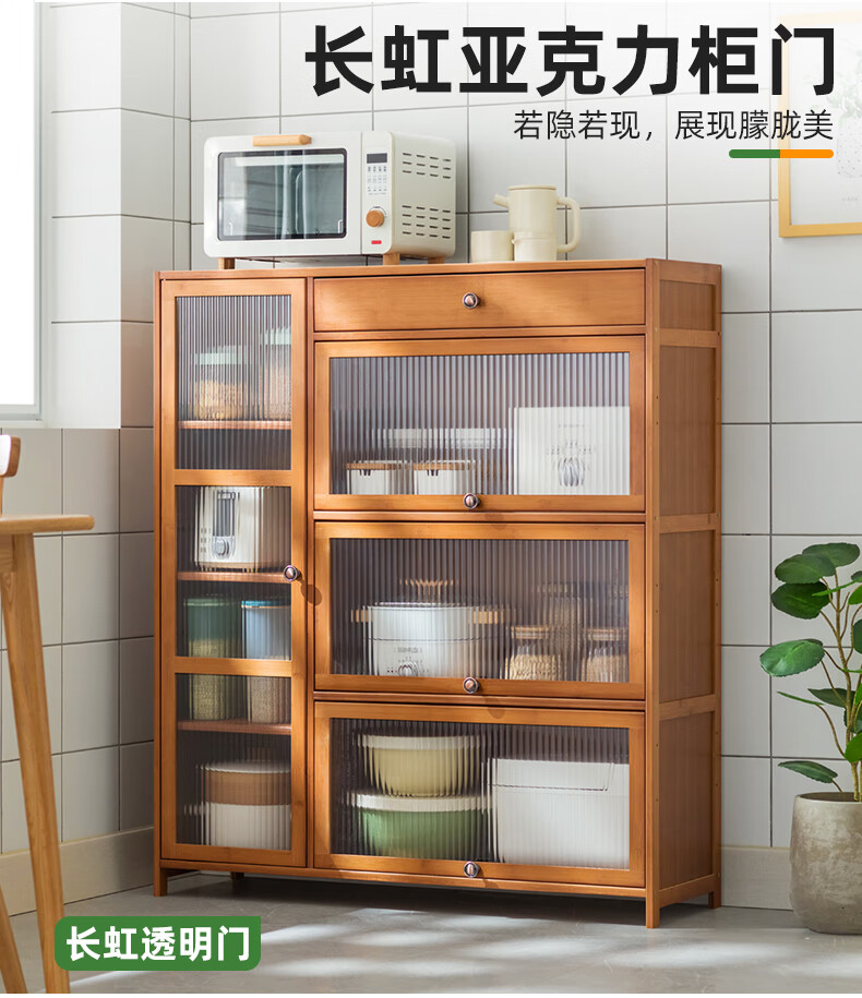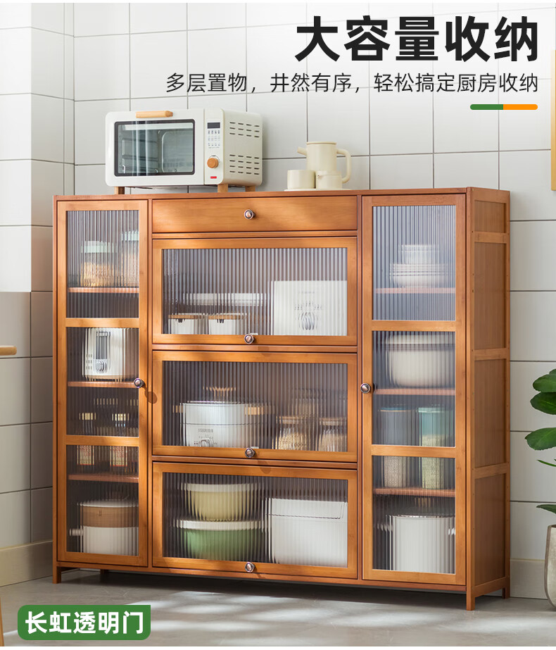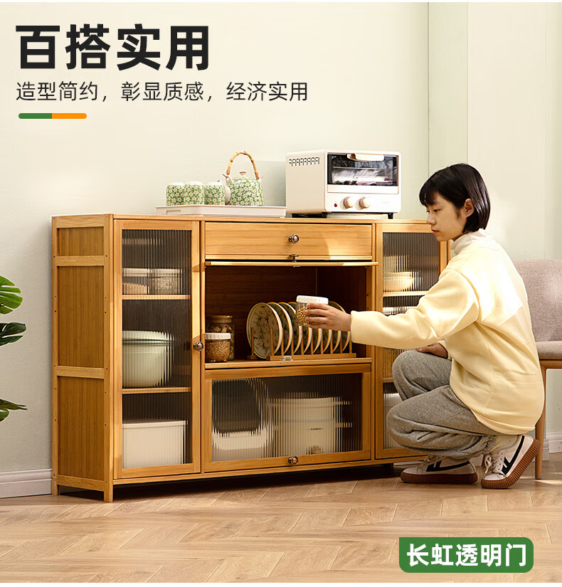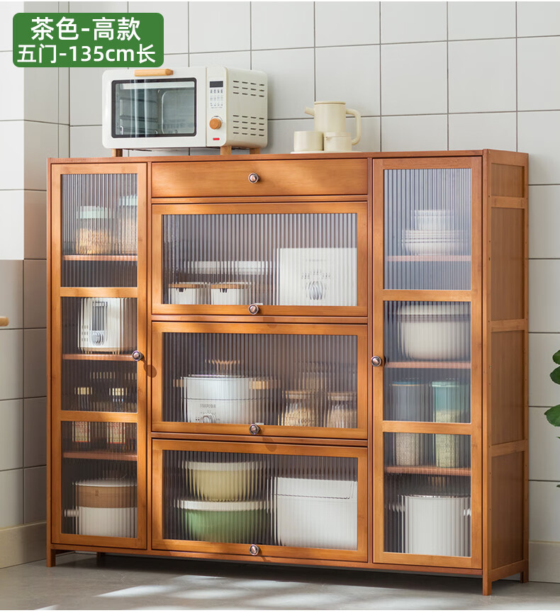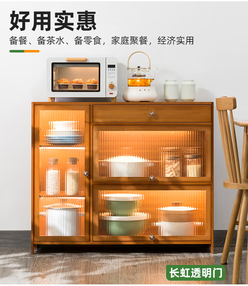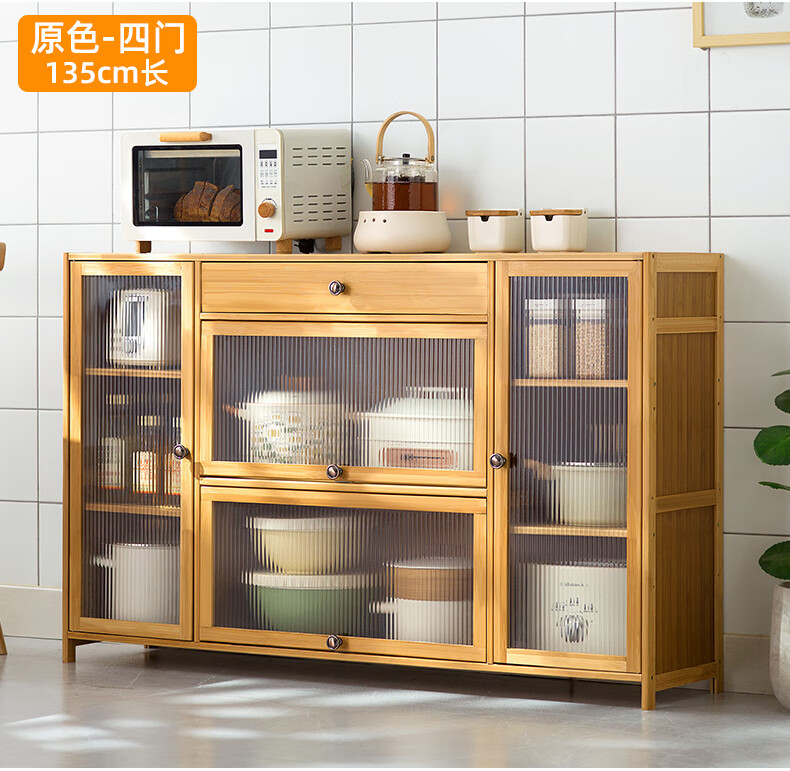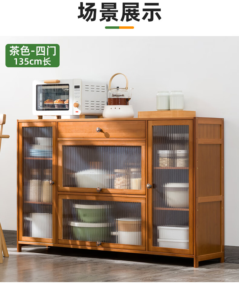 Trojan kitchen shelf Nordic sideboard microwave oven home living room cabinet home solid wood multi-function storage cabinet wine cabinet Changhong transparent door four doors 135 long