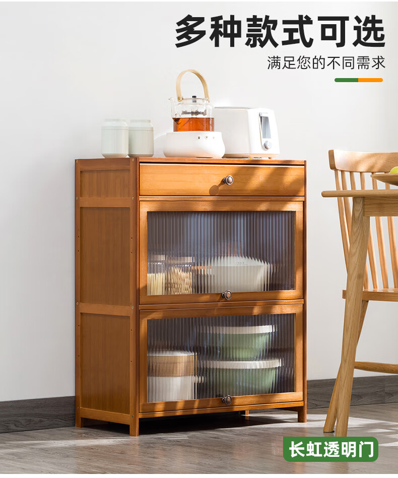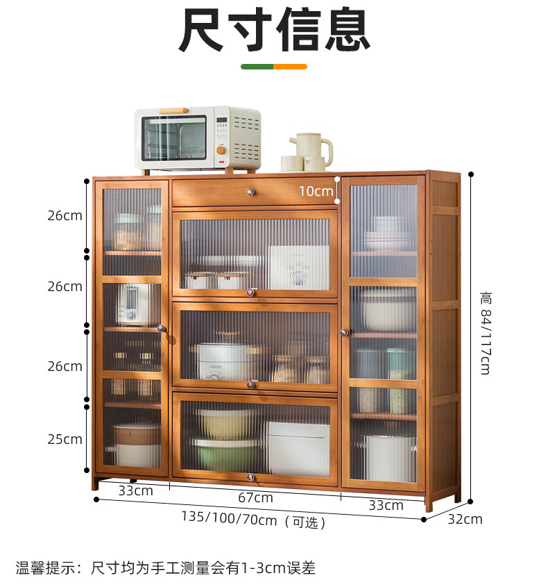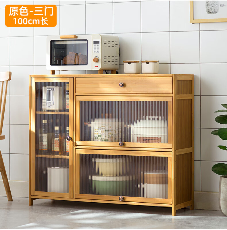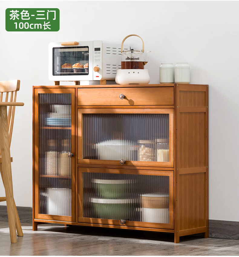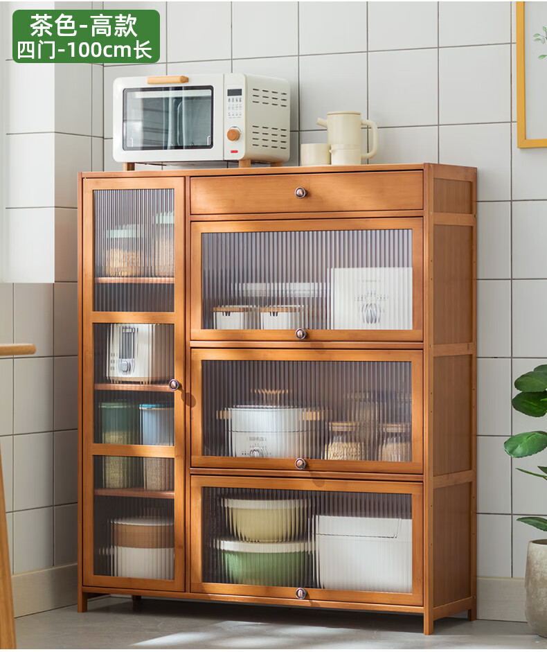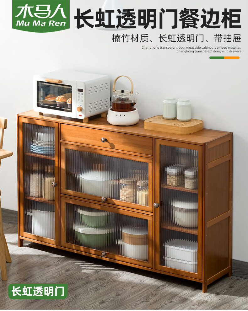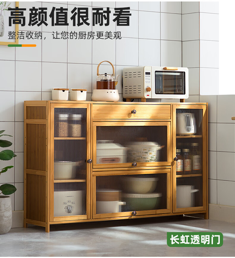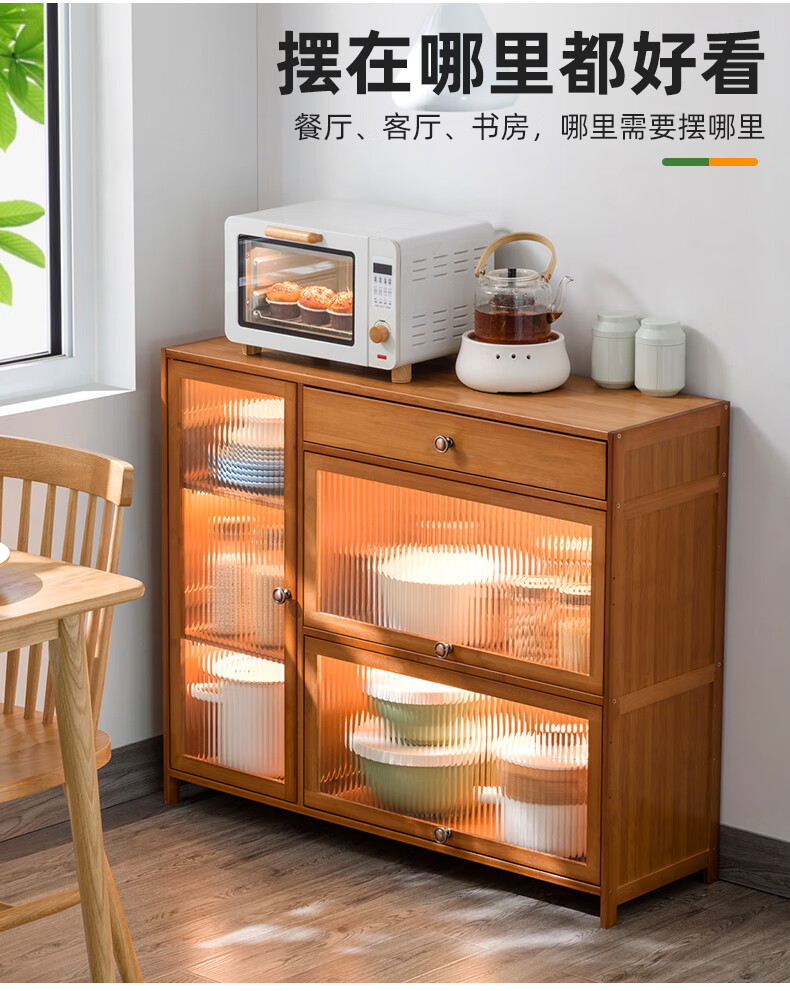 Trojan kitchen shelf Nordic sideboard microwave oven home living room cabinet home solid wood multi-function storage cabinet wine cabinet Changhong transparent door four doors 135 long