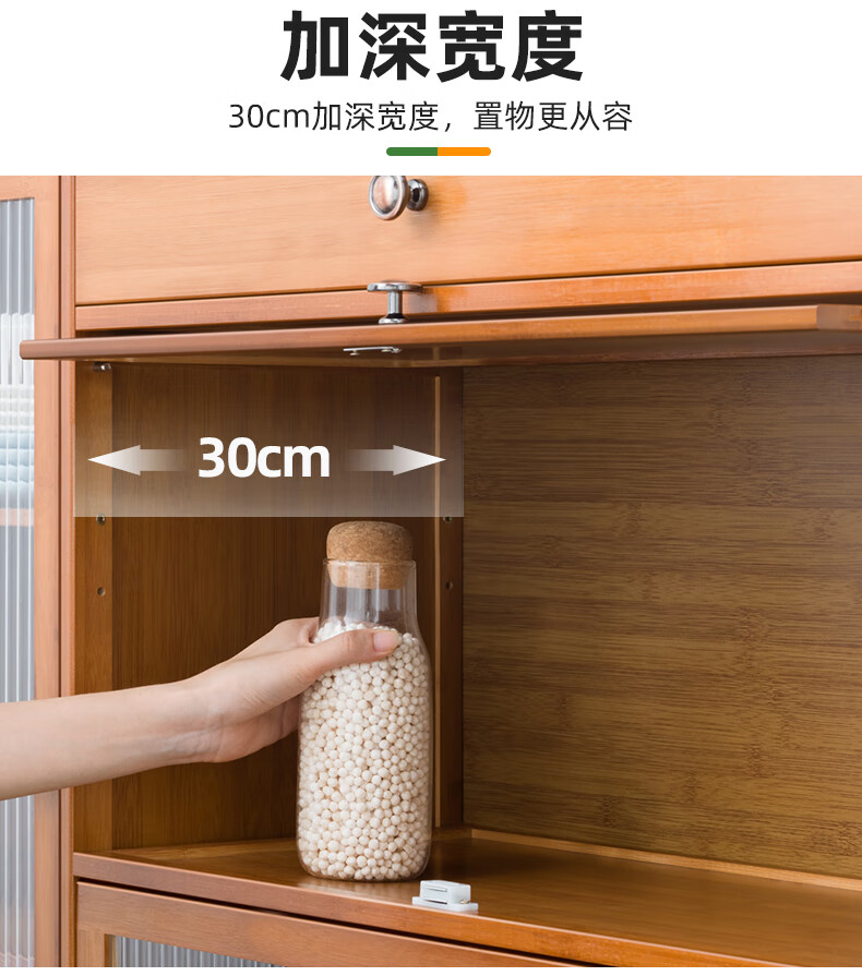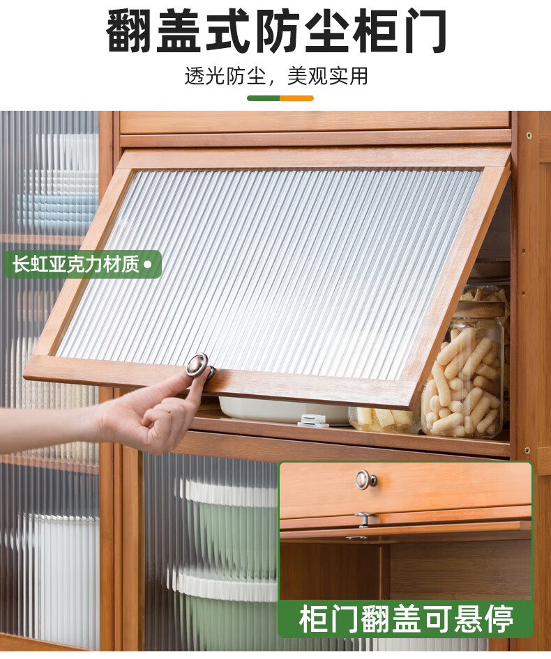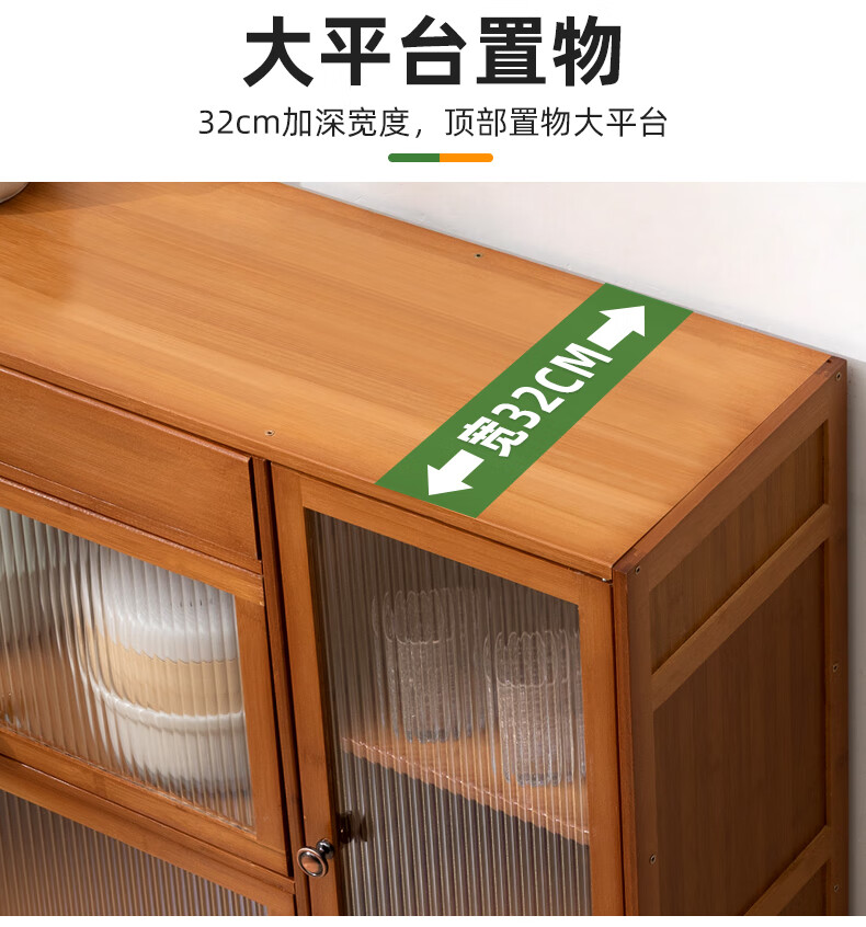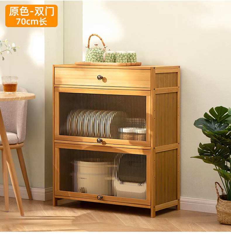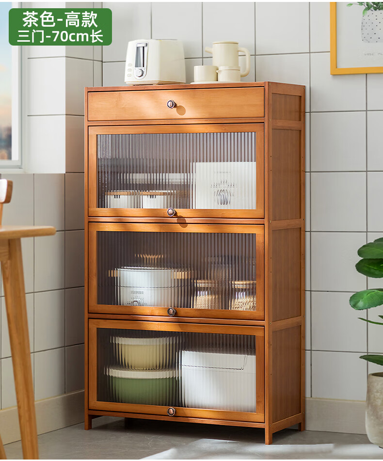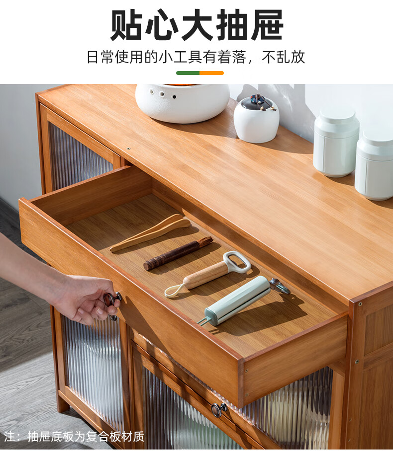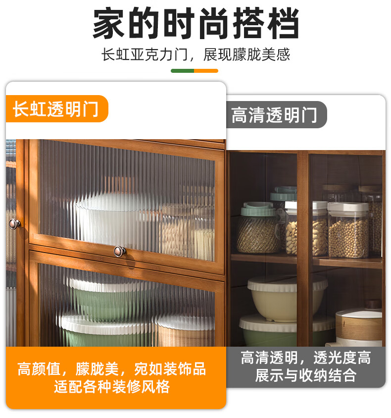Trojan kitchen shelf Nordic sideboard microwave oven home living room cabinet home solid wood multi-function storage cabinet wine cabinet Changhong transparent door four doors 135 long