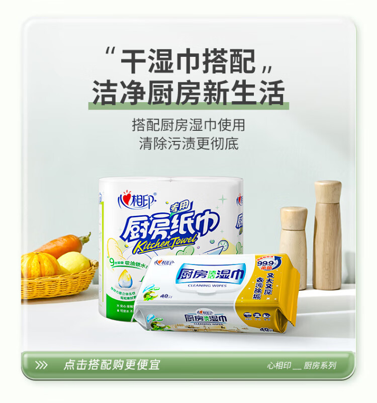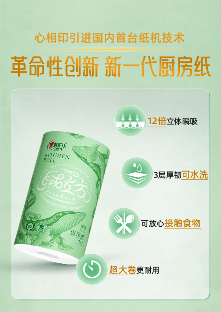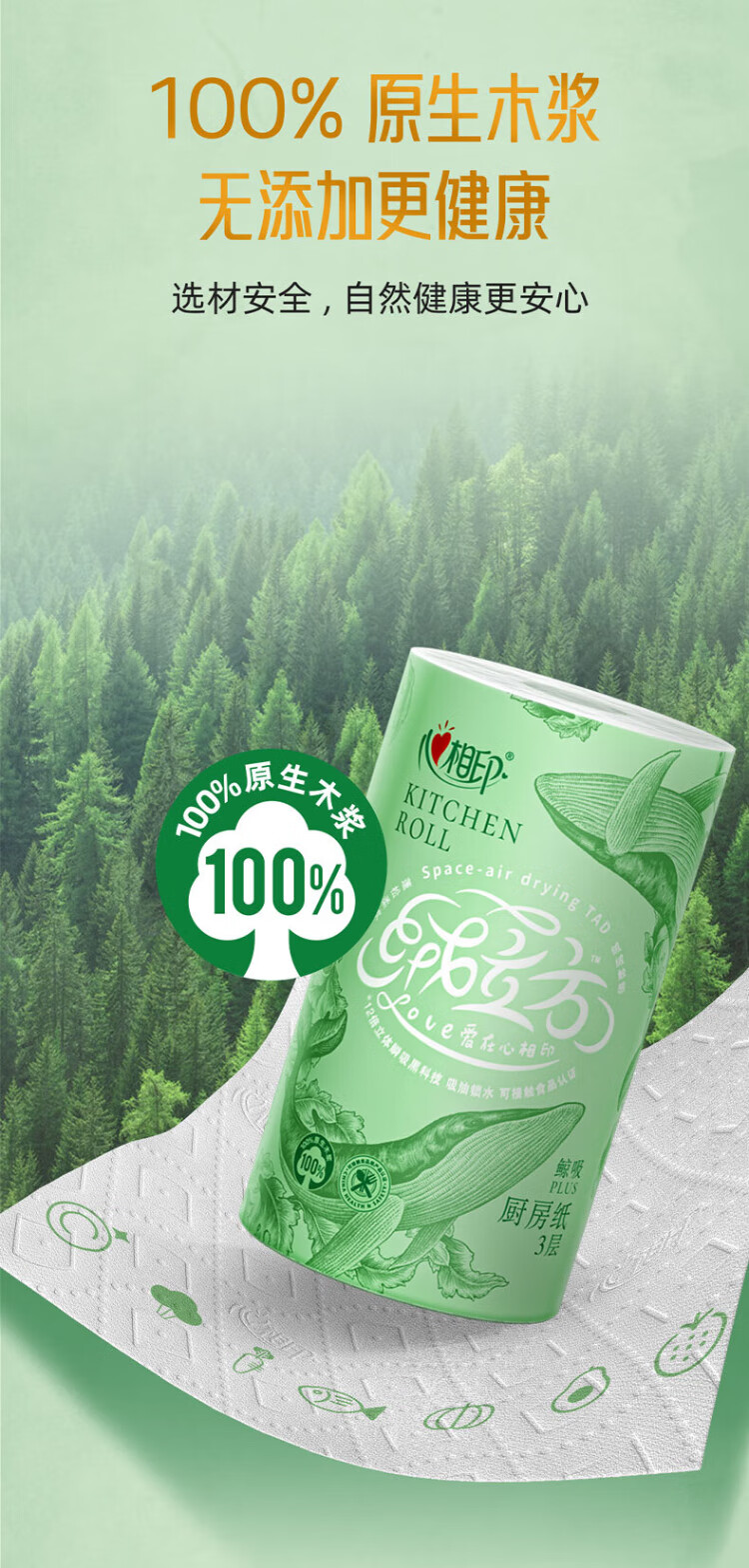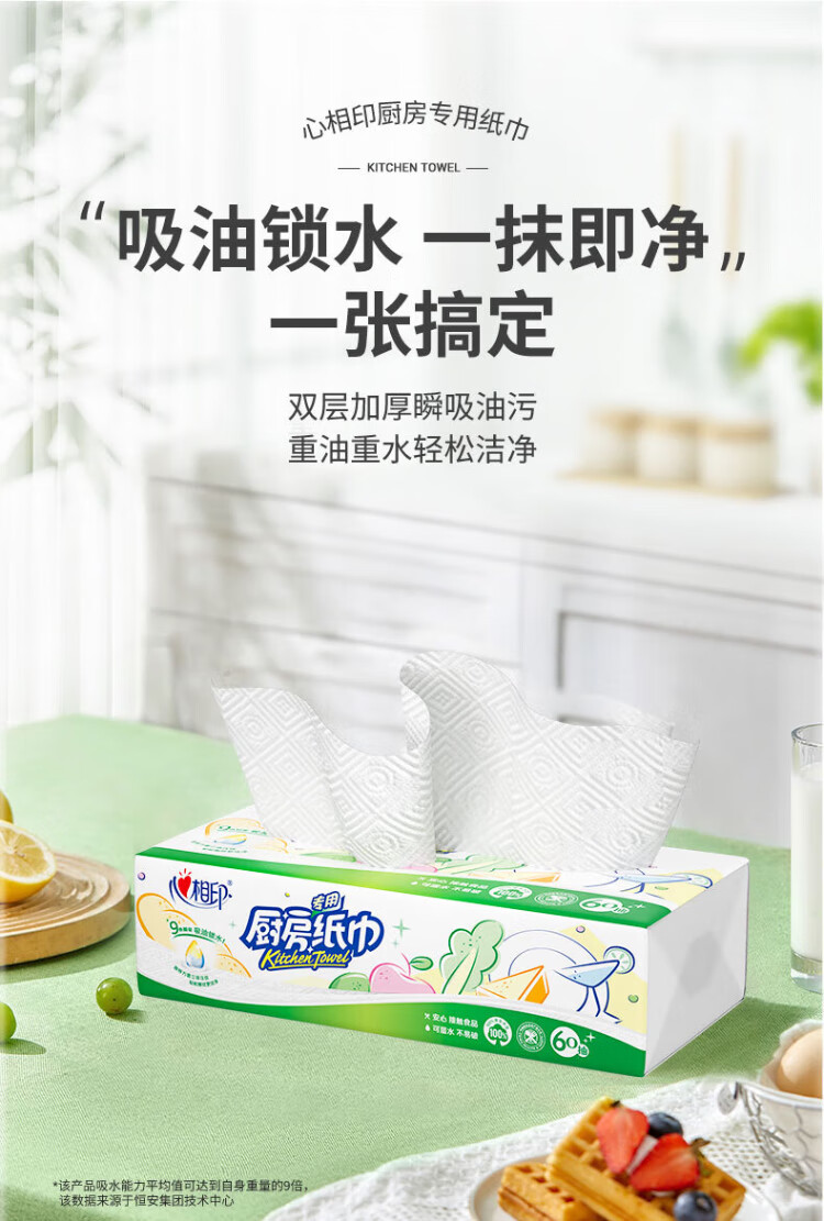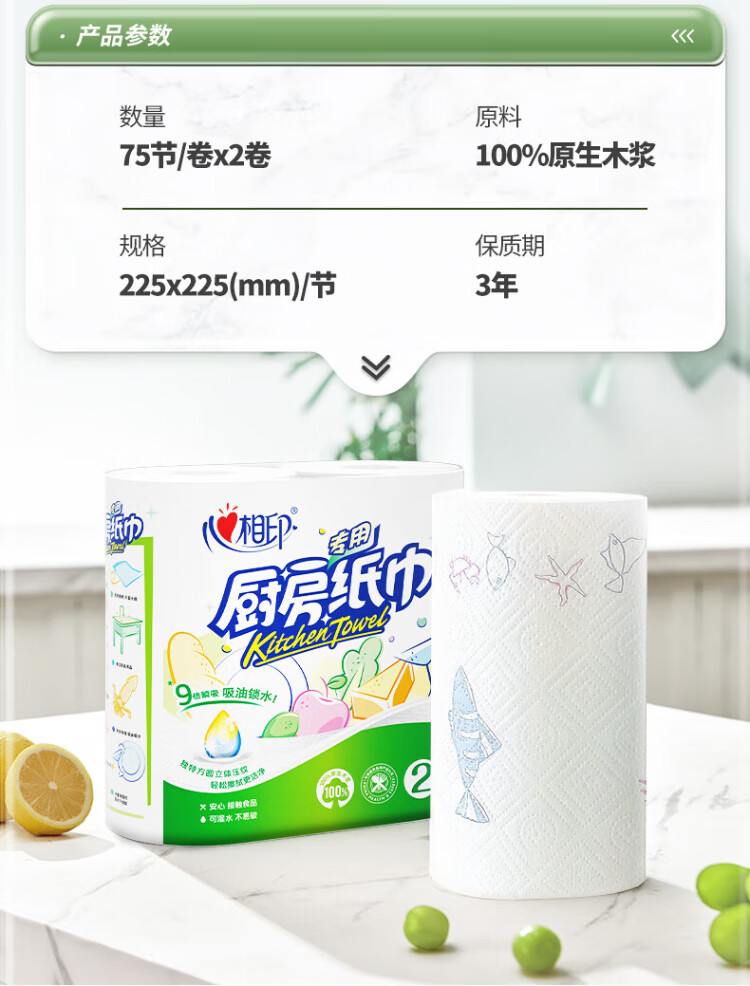 Heart-to-heart kitchen paper kitchen grease paper household kitchen paper oil-absorbent and water-absorbent thickened paper towel family pack cheap large roll 2 layers 75 sections * 4 rolls
